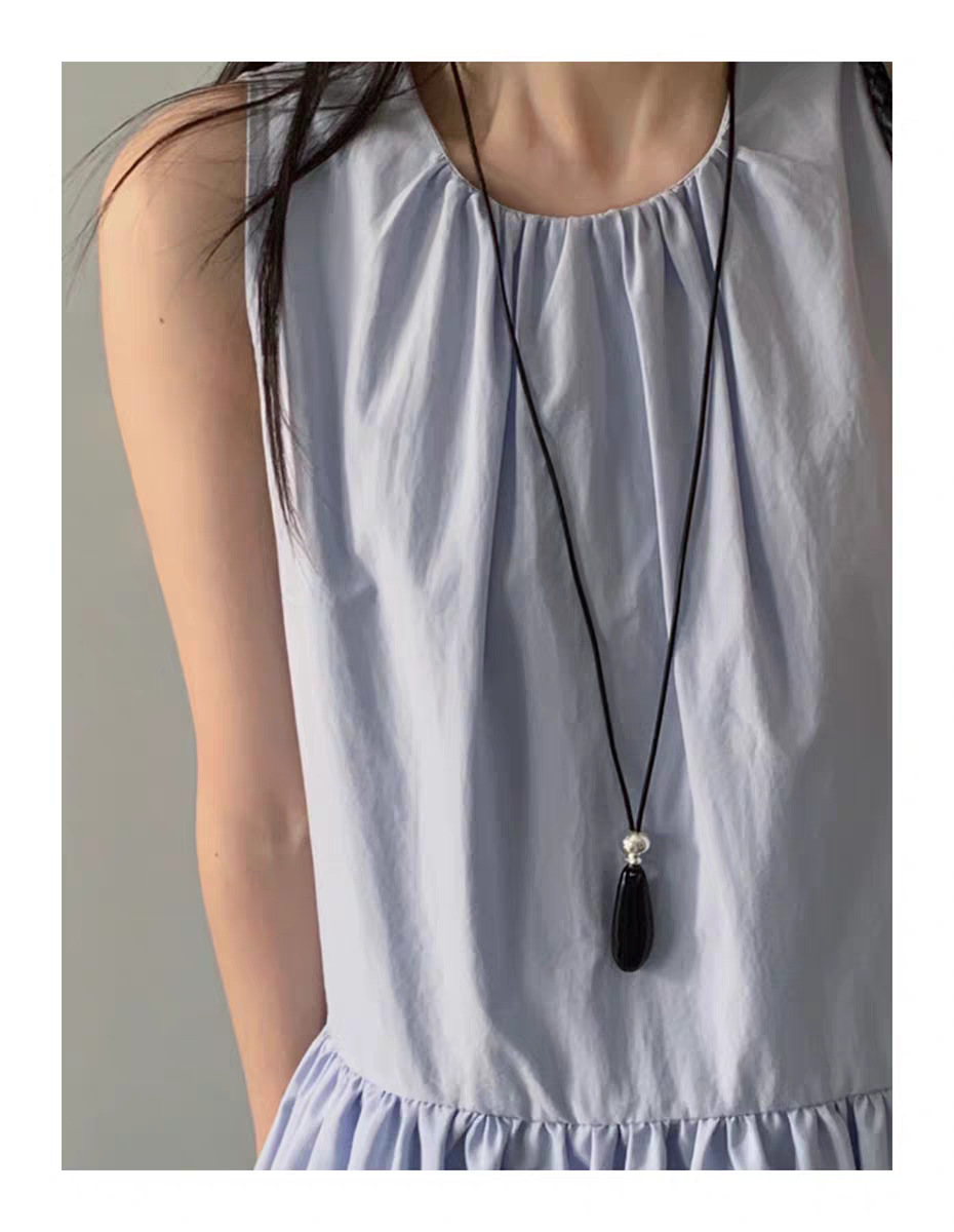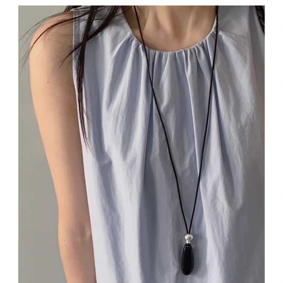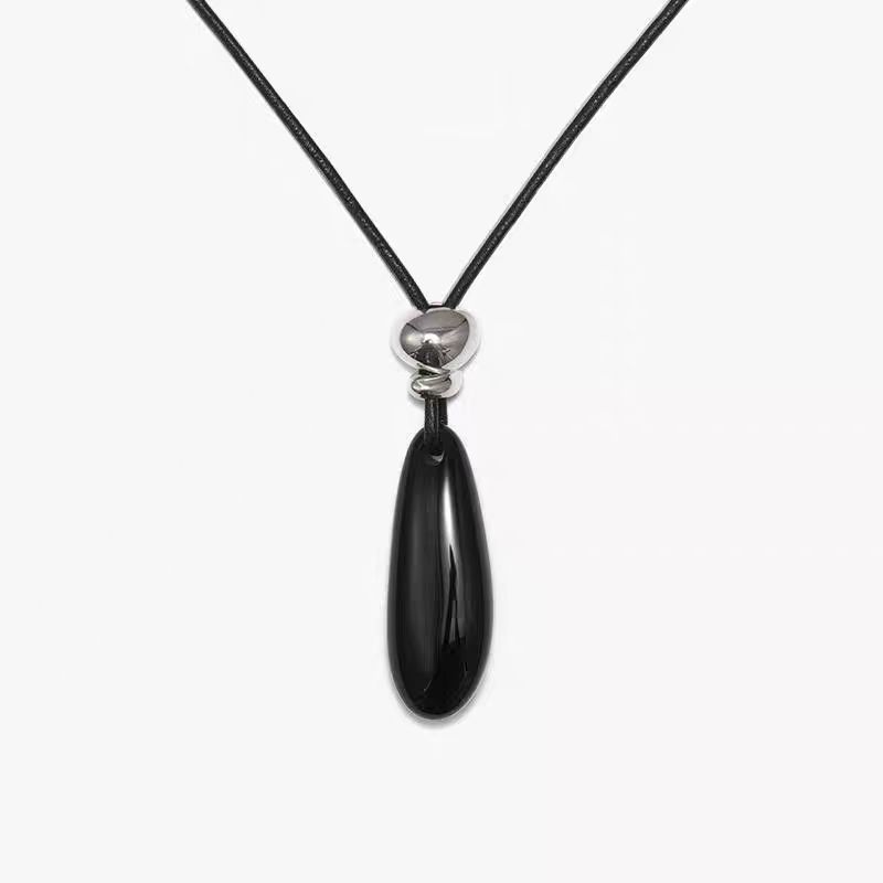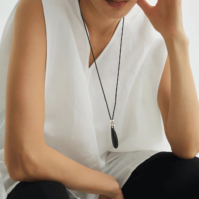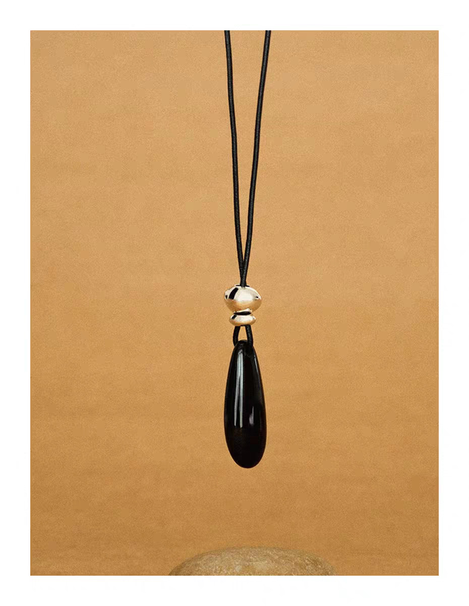 black agate long necklace