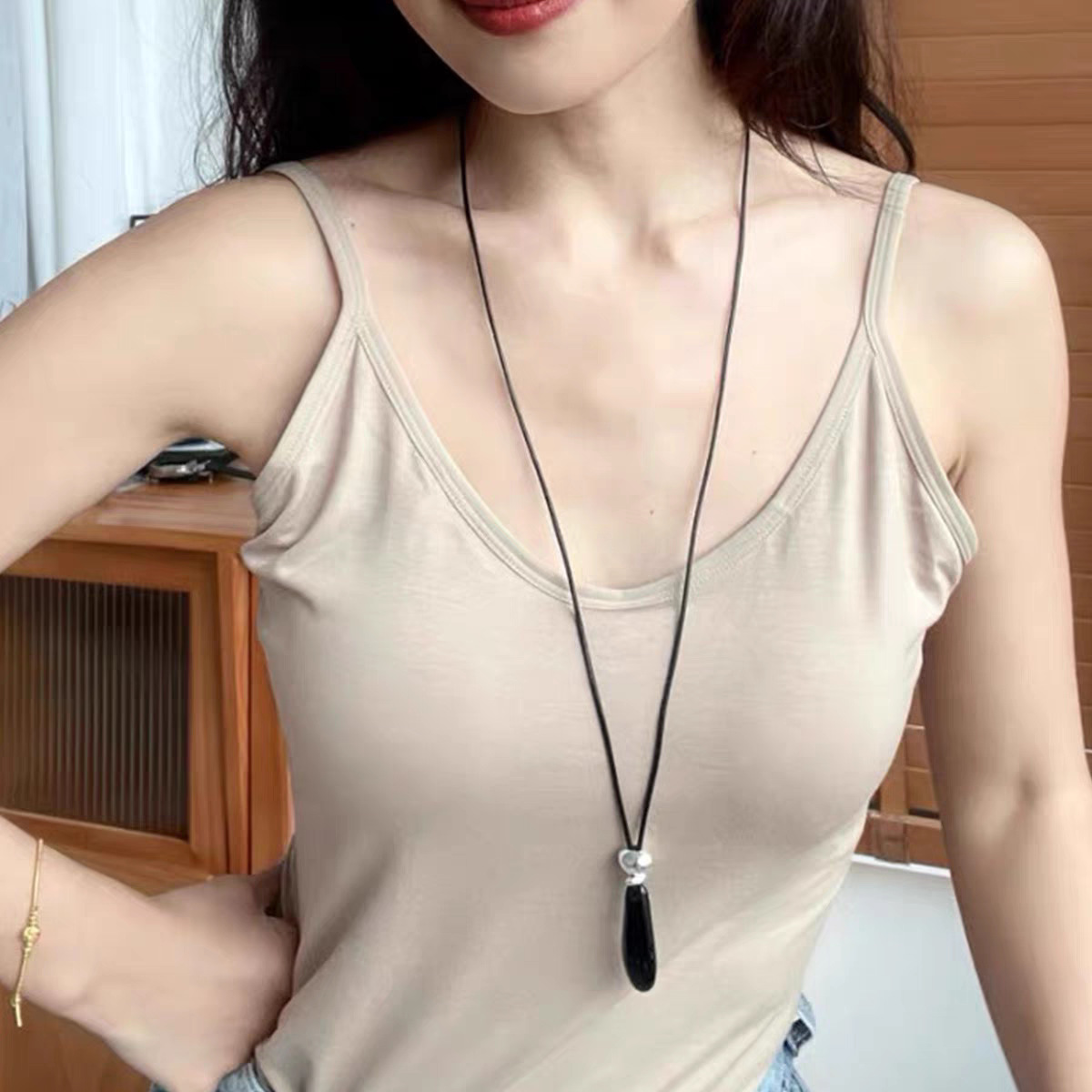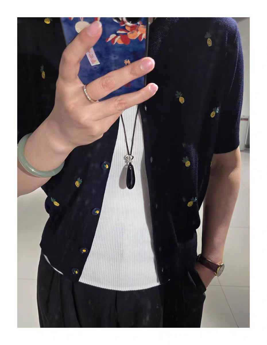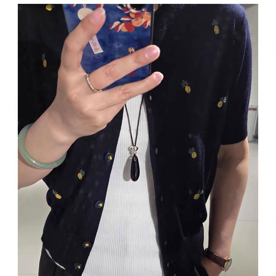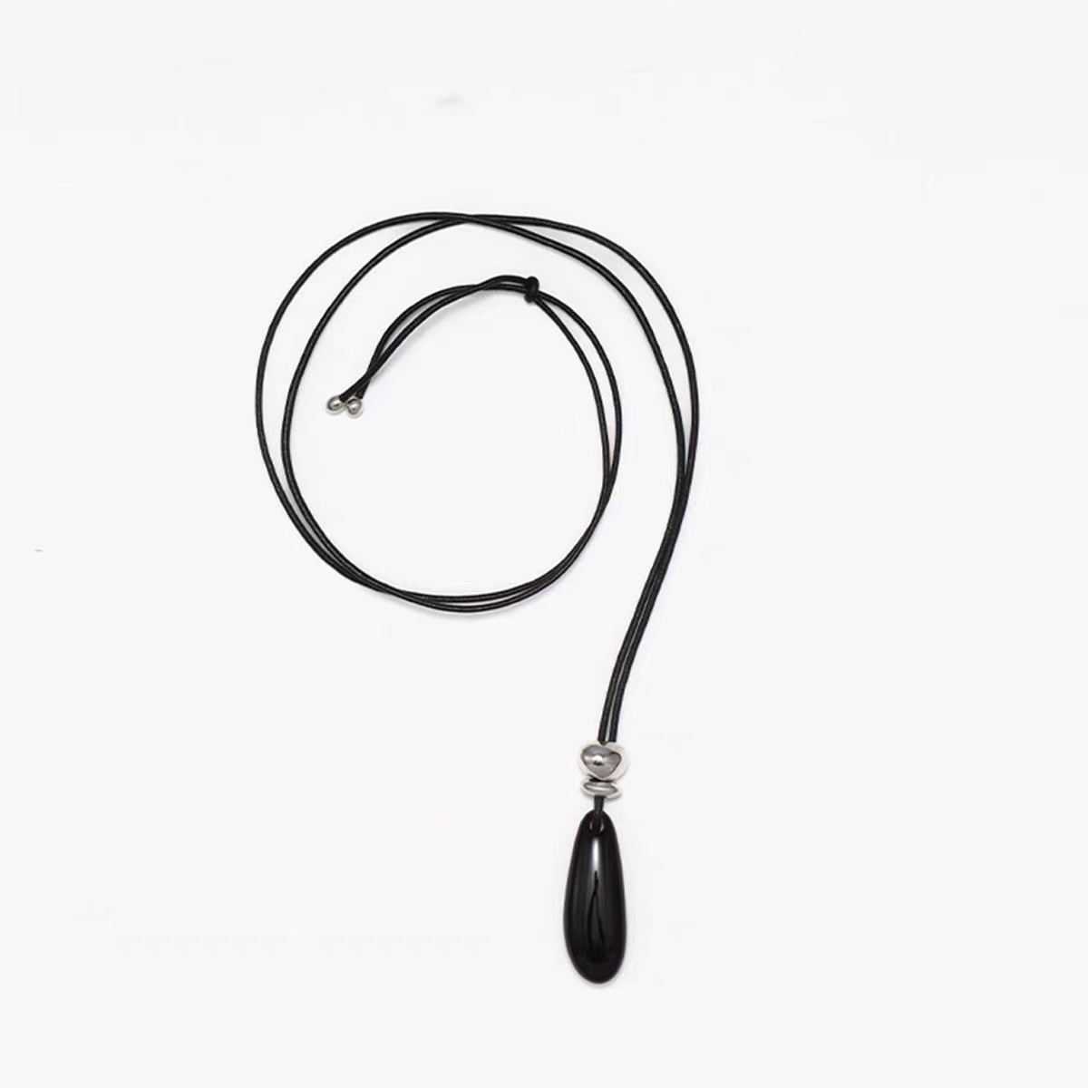 black agate long necklace