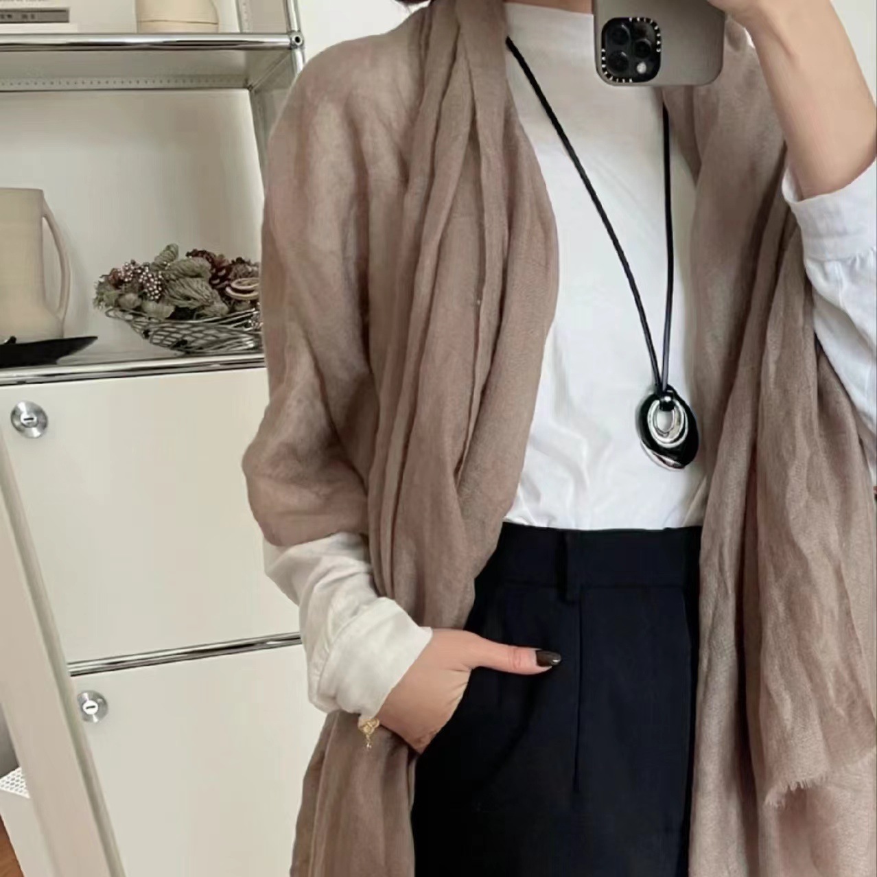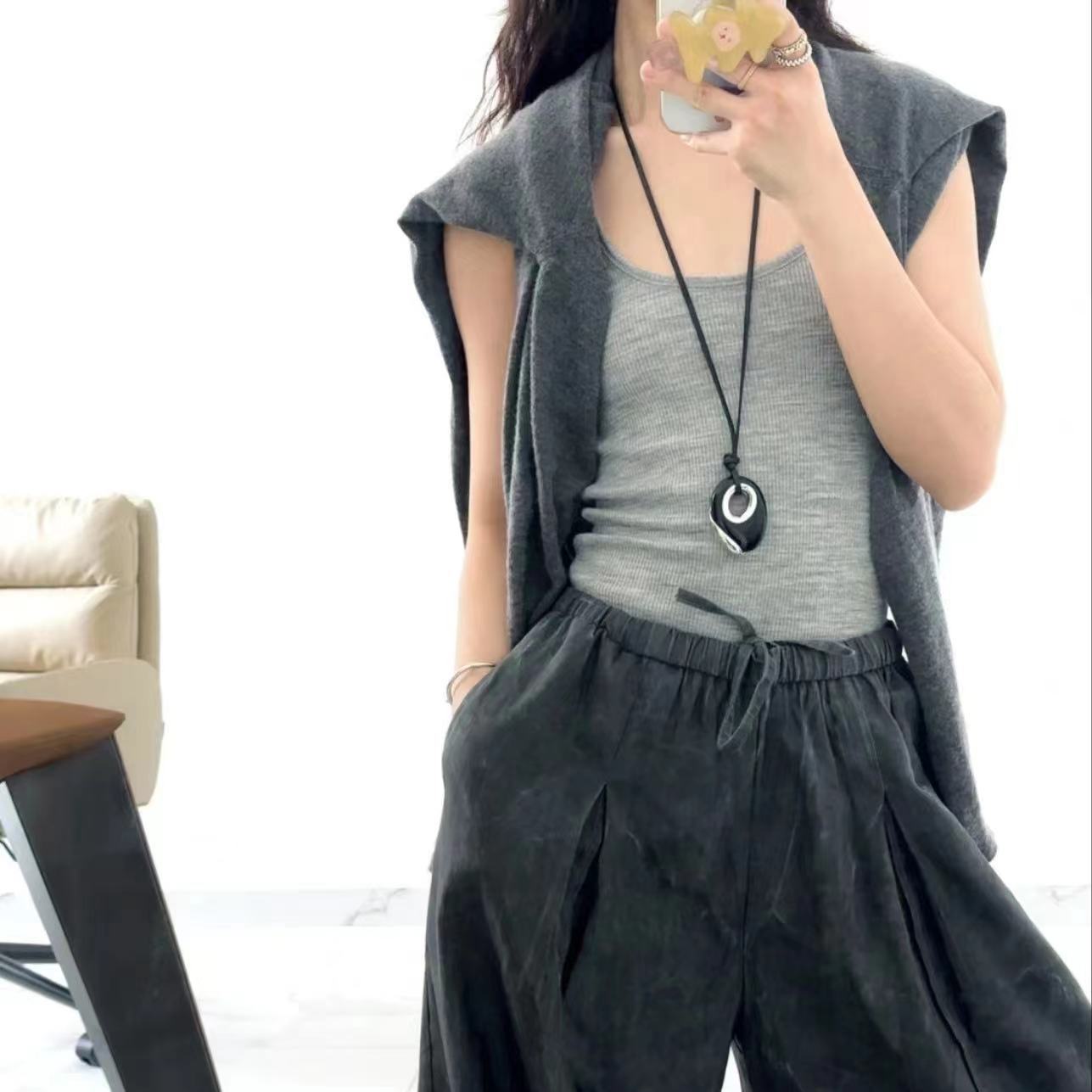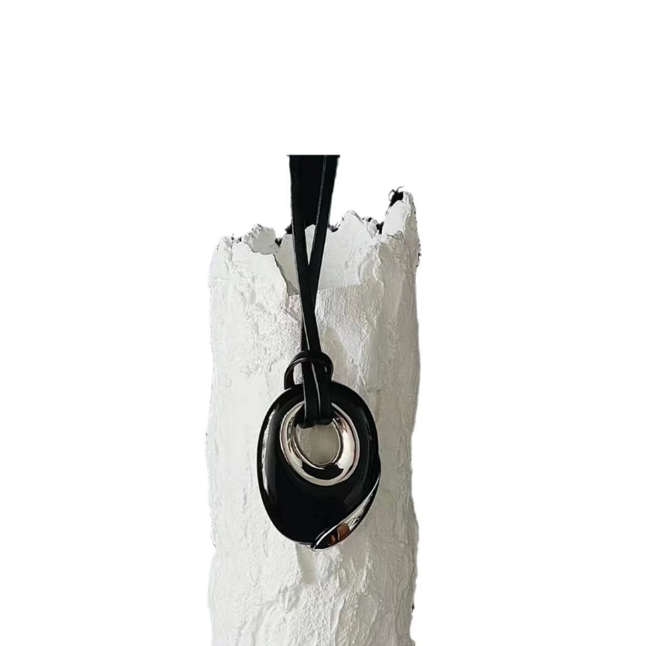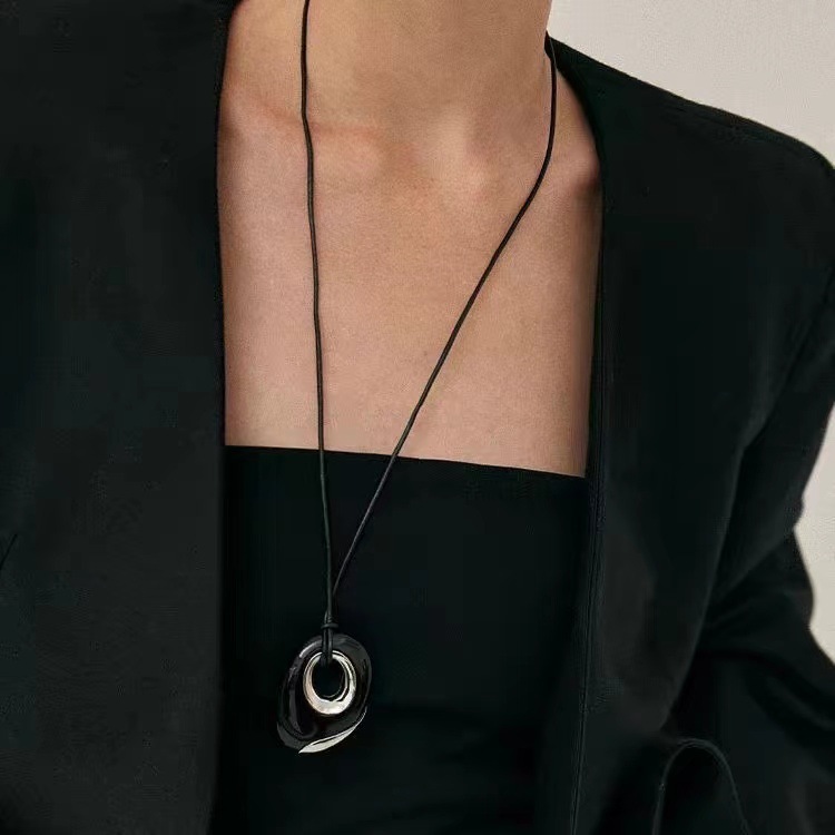 black agate pendant necklace adjustable ultra-long leather rope pendant necklace special-interest design heavy industry light luxury necklace for women