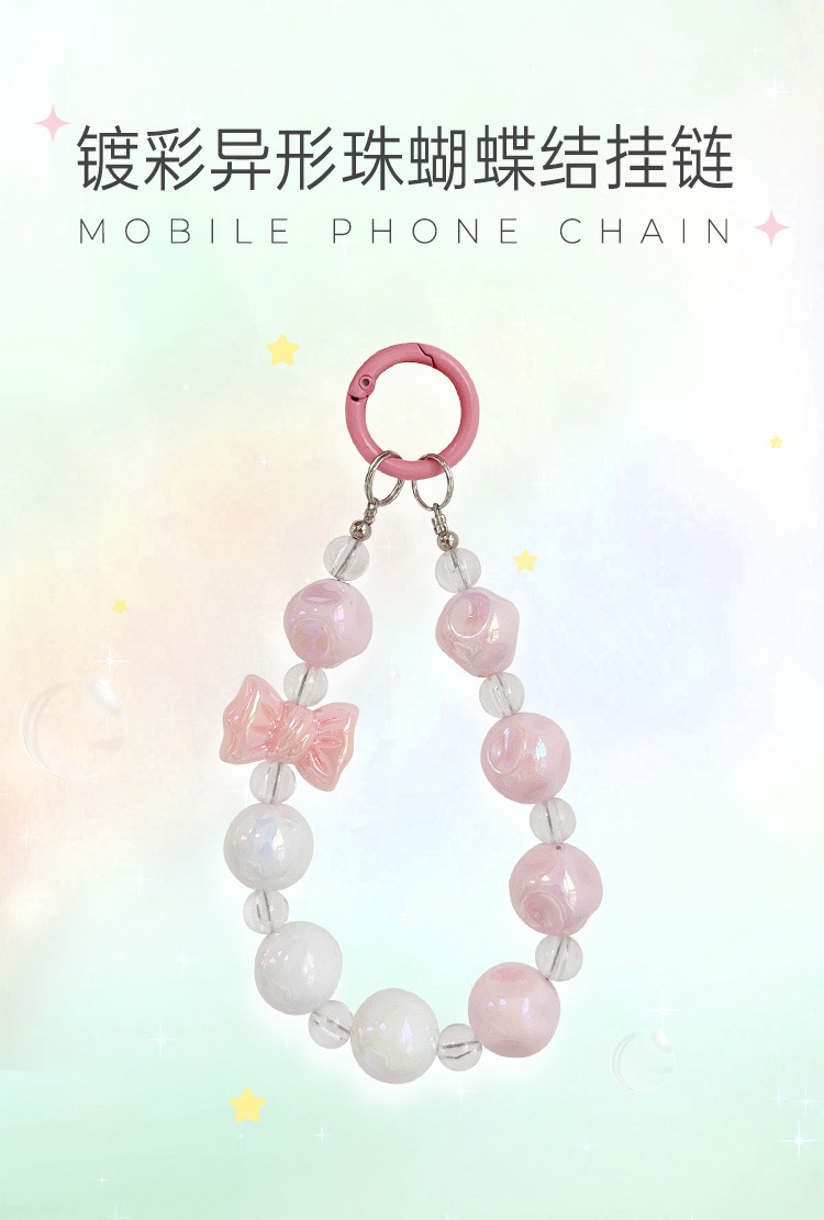gld-sl227-01 plating color special-shaped bead bow lanyard-pink