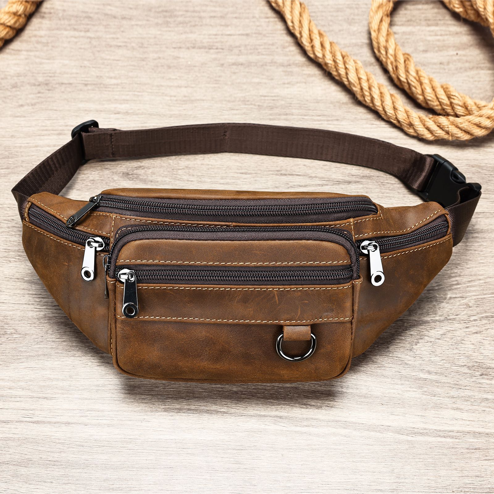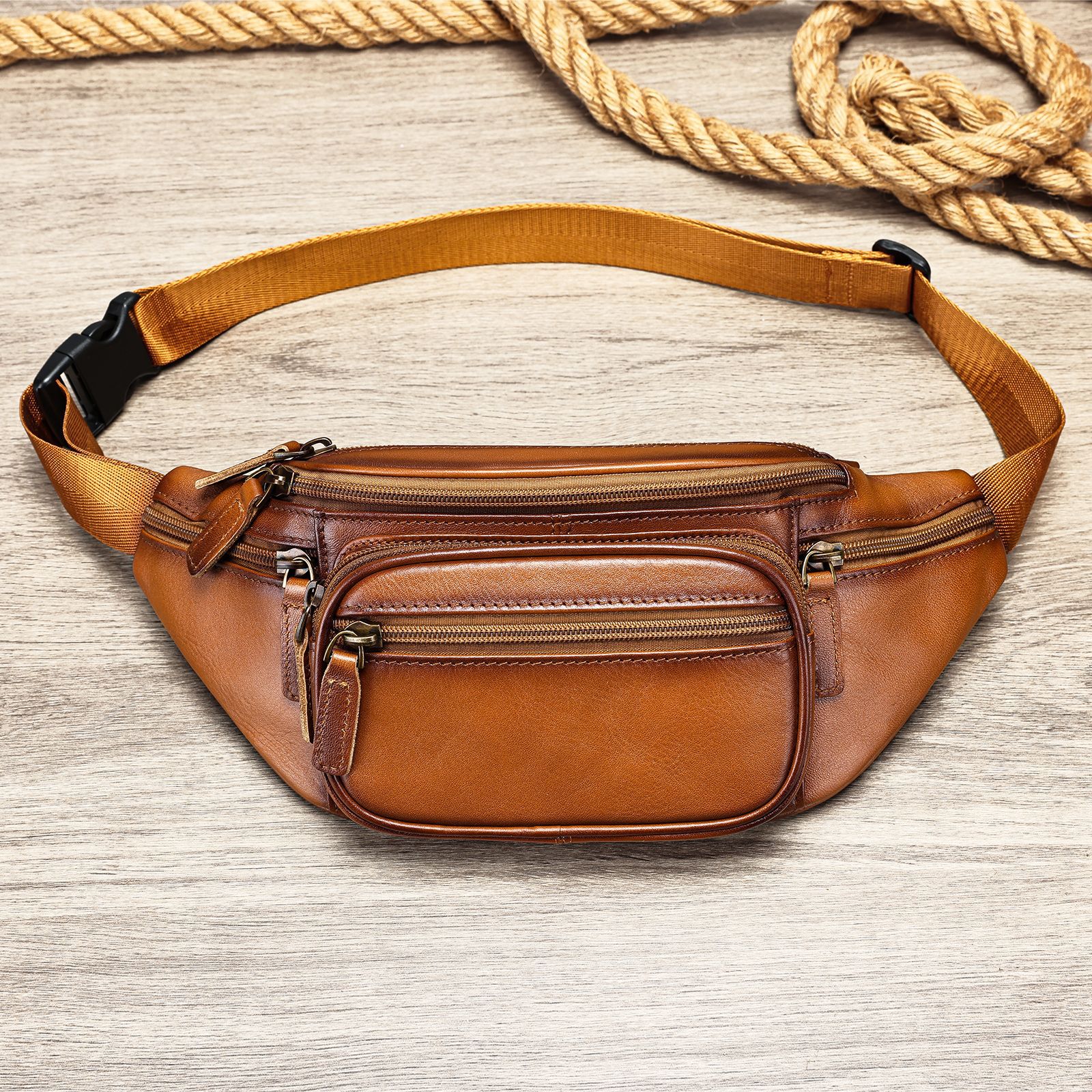 9044 Men's Wallet Real Leather Cellphone Bag Top Grain Cowhide Chest Bag Crossbody Bag