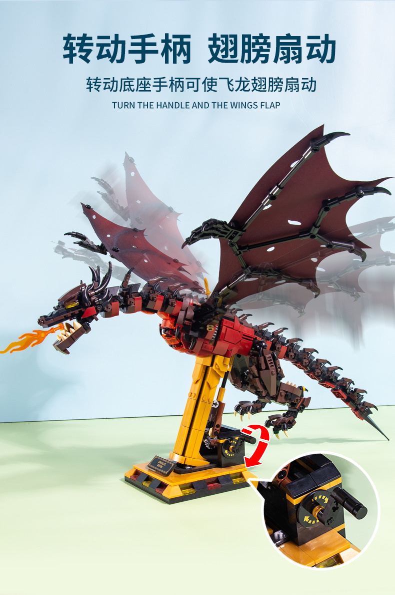 7070 ice and fire dragon building blocks song right large game decoration assembly model toy cross-border boy