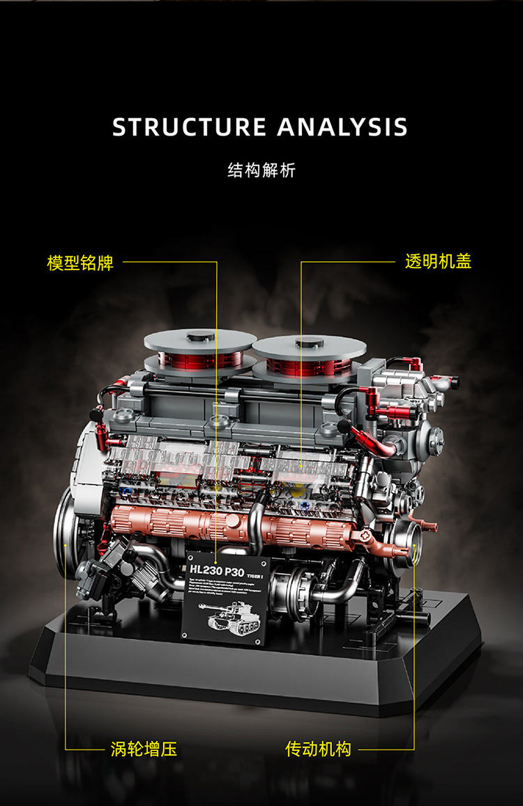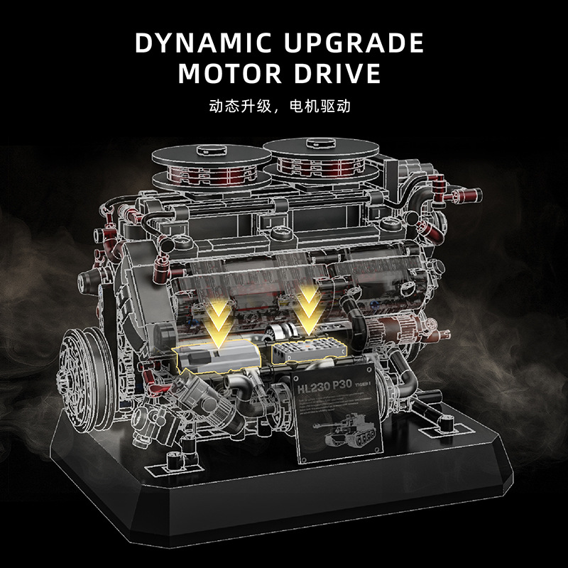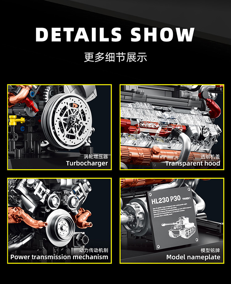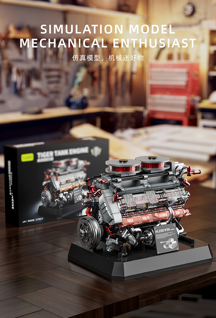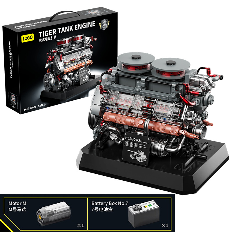 95008 tank engine building block engine model mechanical group power science and education assembly boys' toys cross-border +