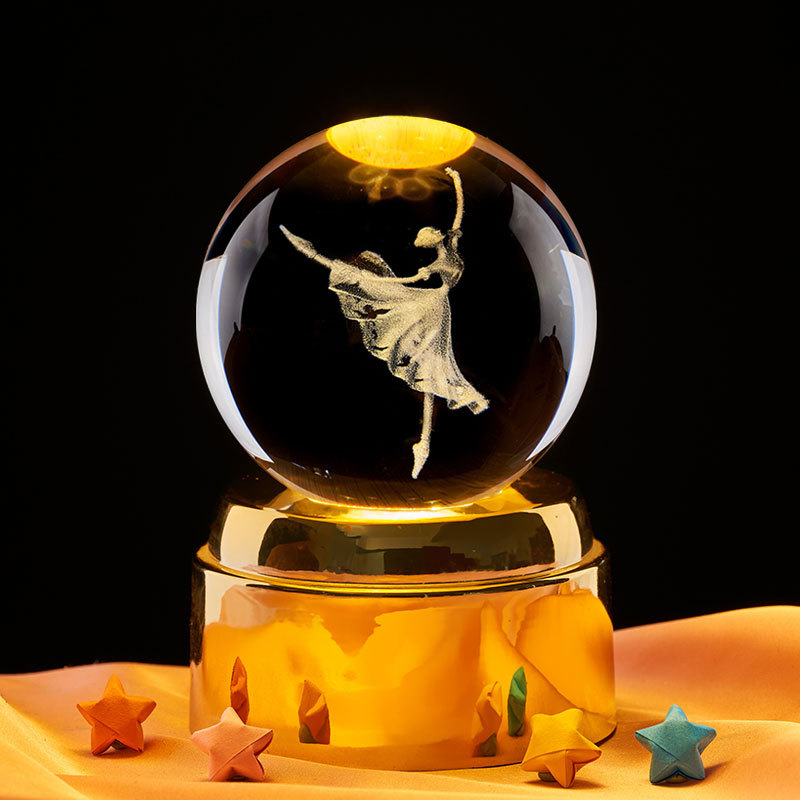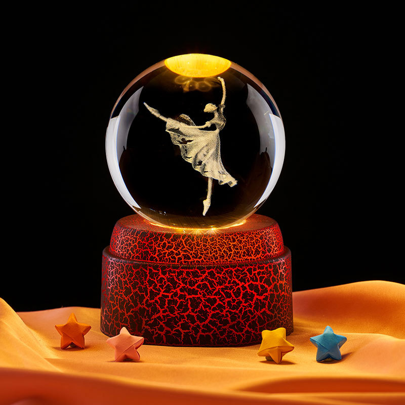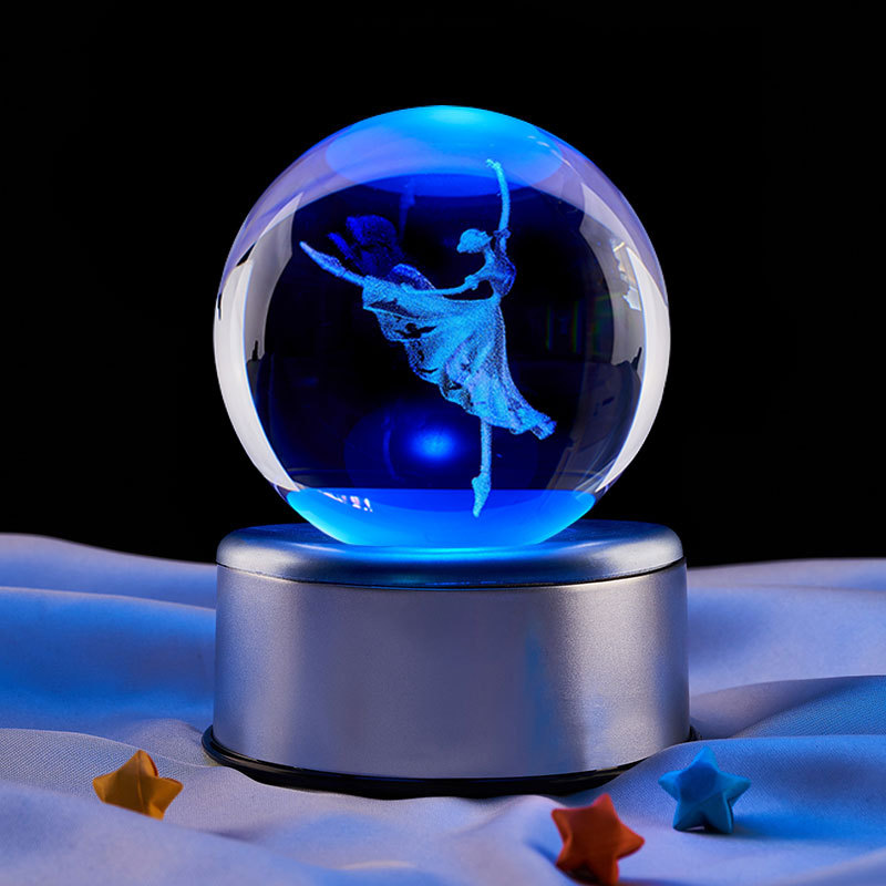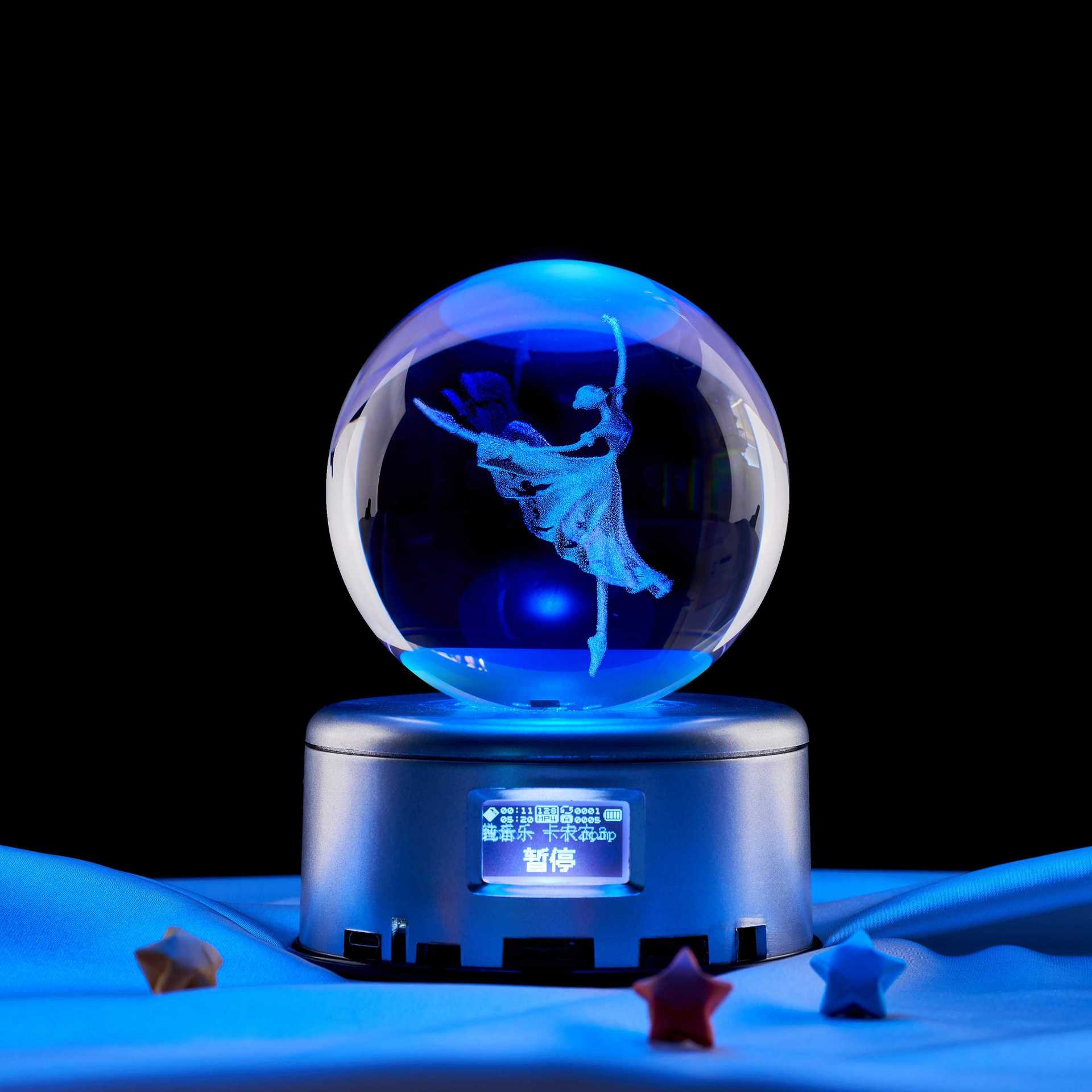 8cm crystal ball + colorful light rotating 18 music base