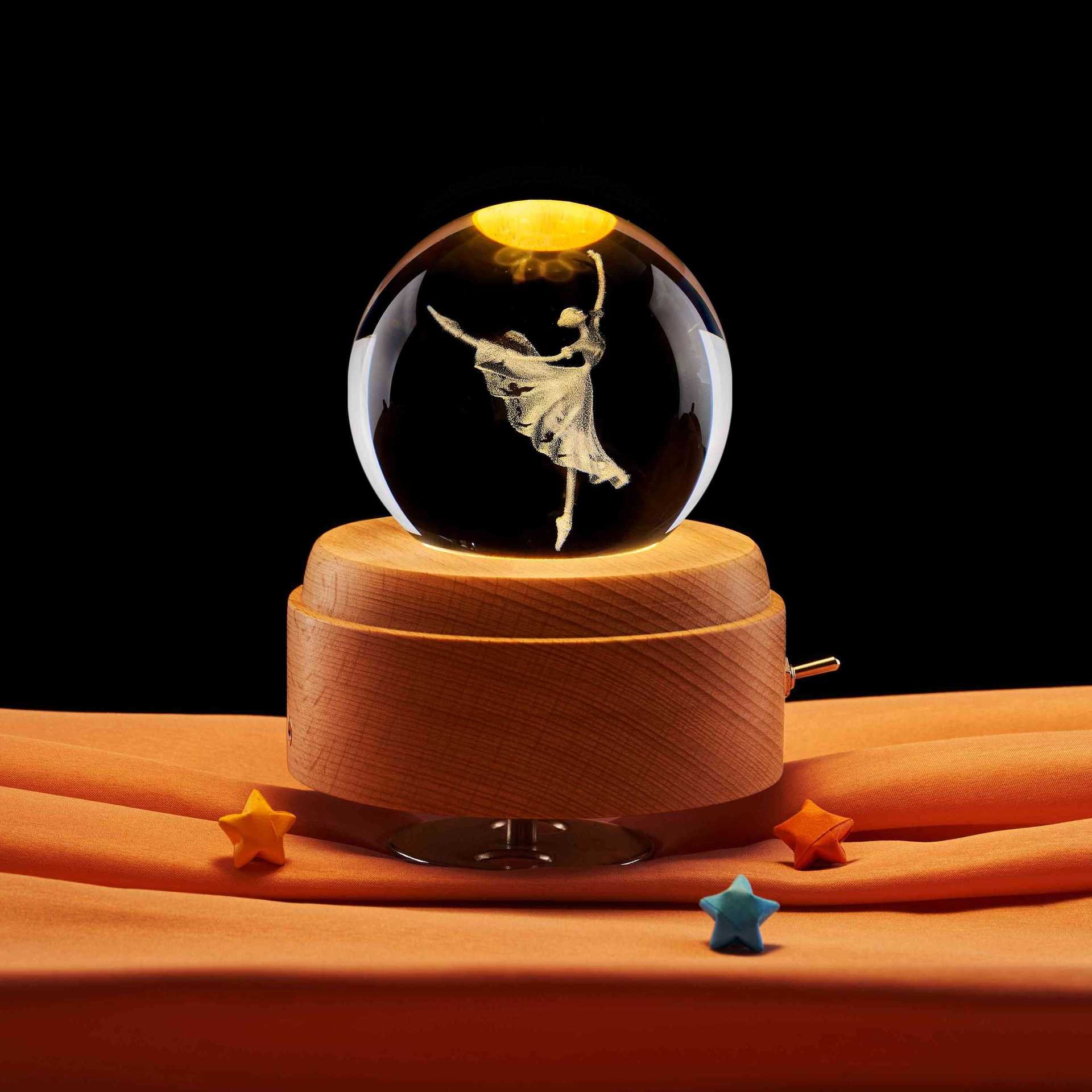 8cm crystal ball + warm beech rotating music box base