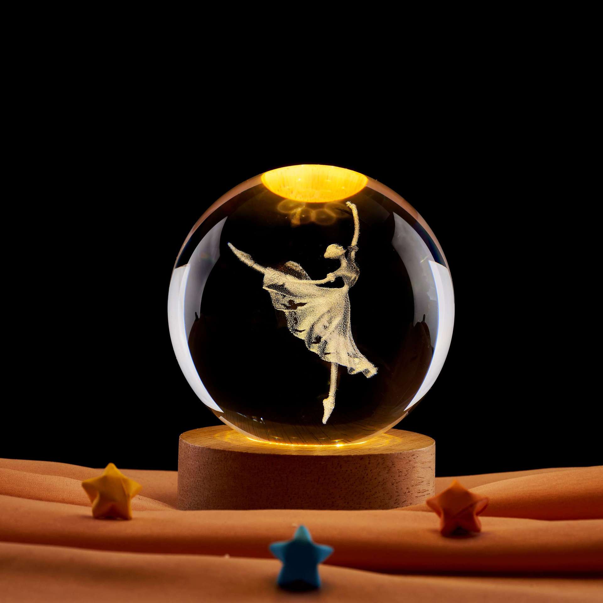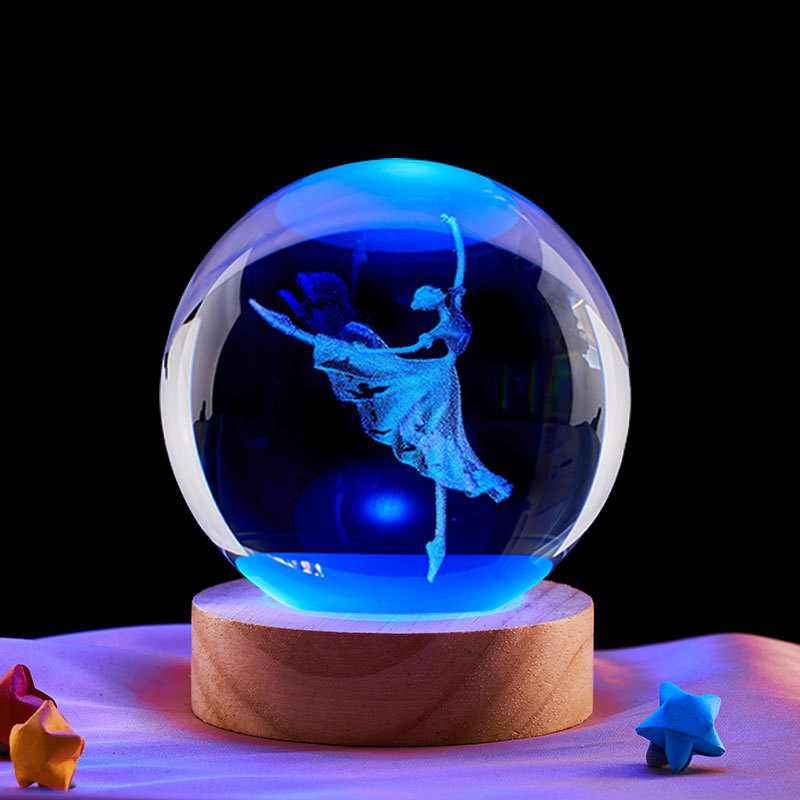 6cm crystal ball + warm light plug-in wooden base