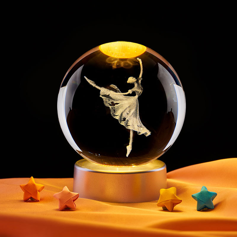 8cm crystal ball + warm light plug-in wooden base