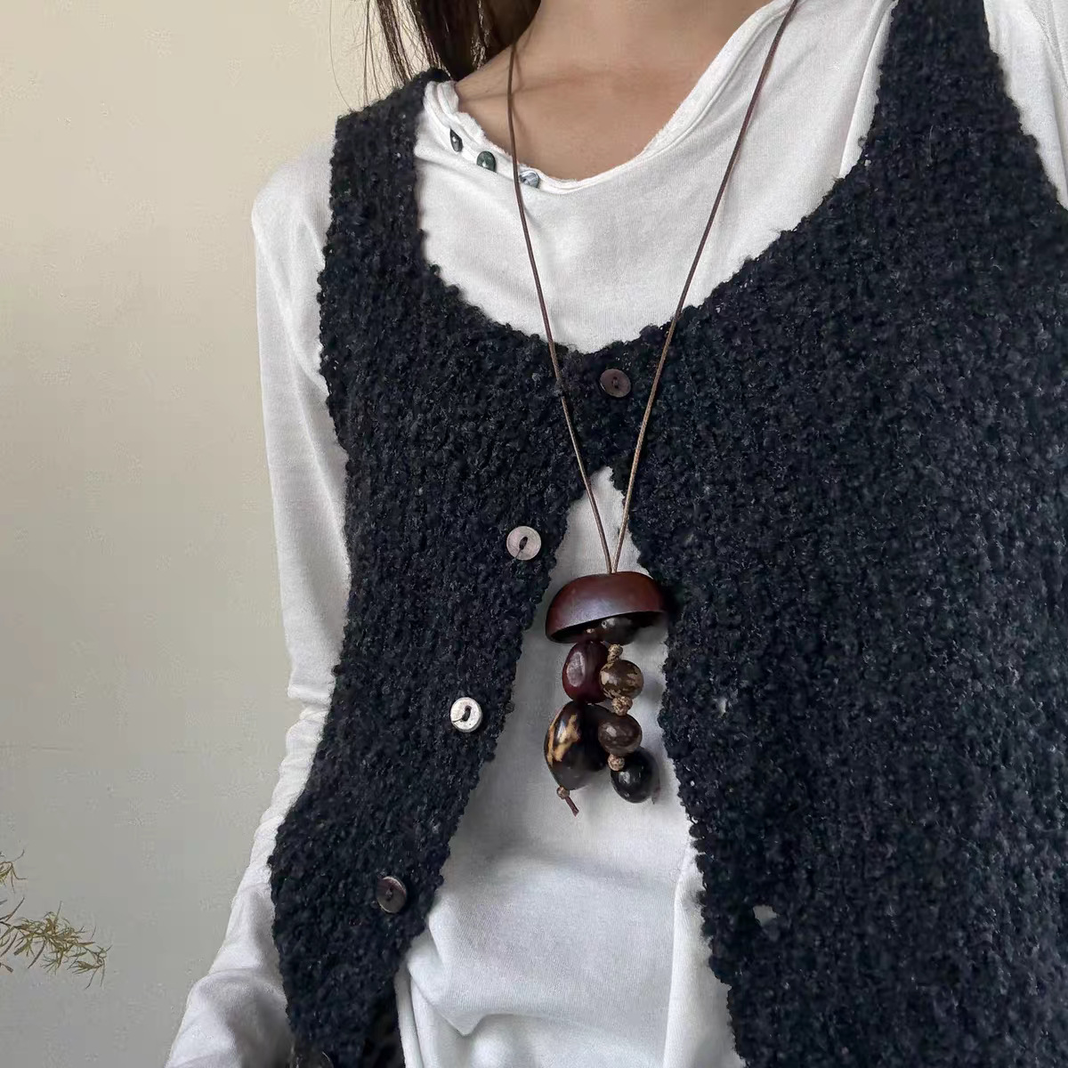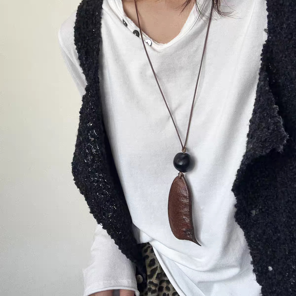 long shaped fruit shell necklace