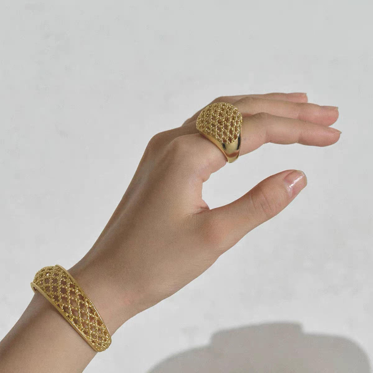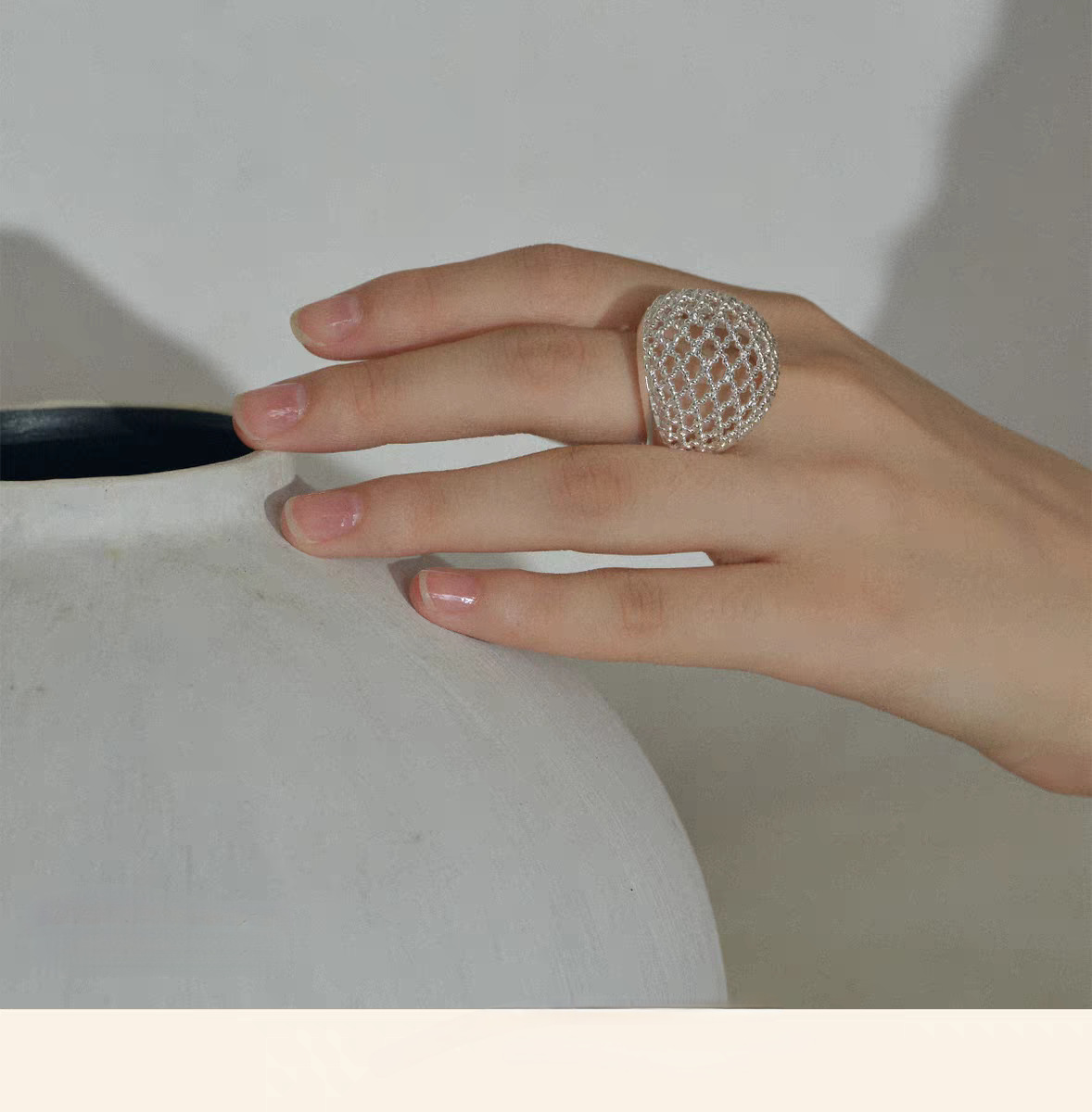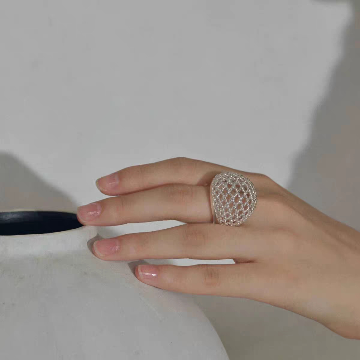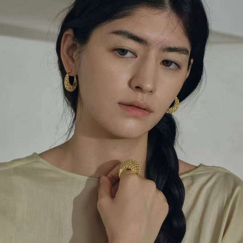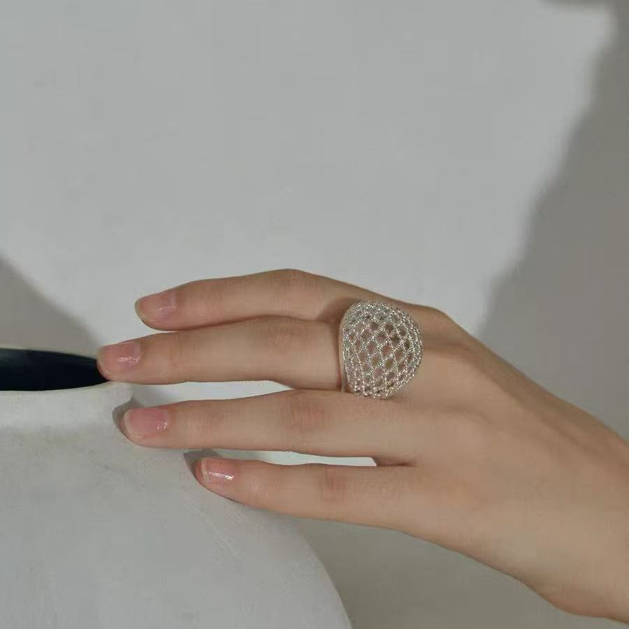 hollow ball mesh ring female special-interest design high sense light luxury temperament all-matching fashion non-fading ring