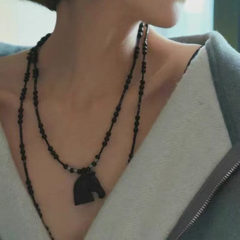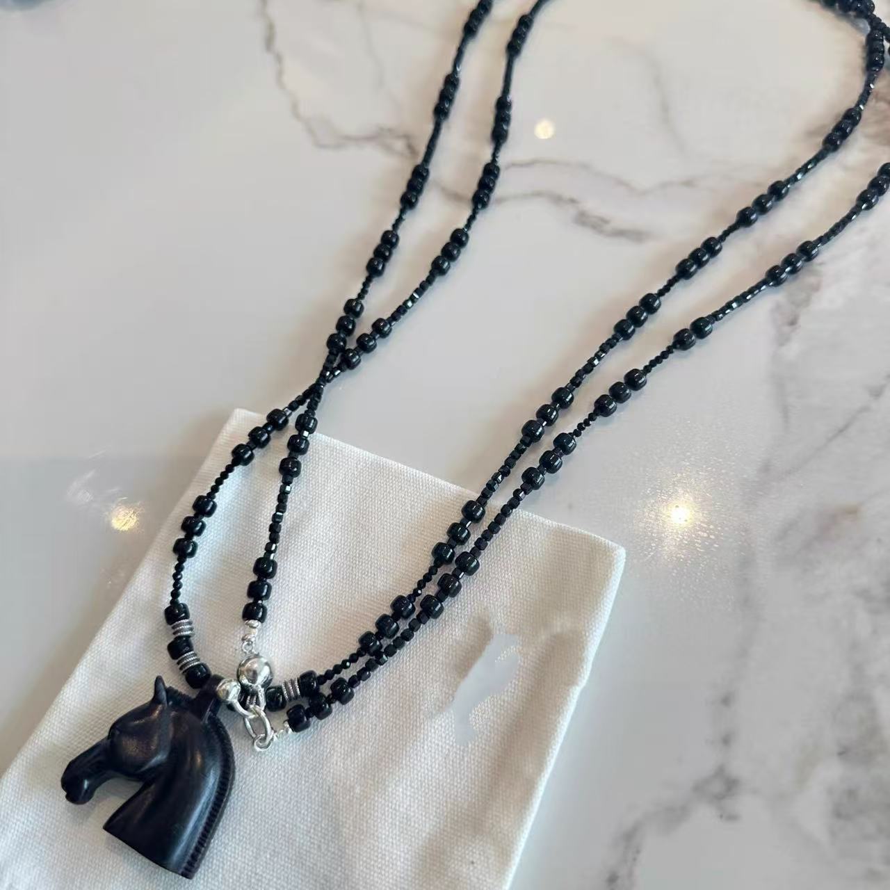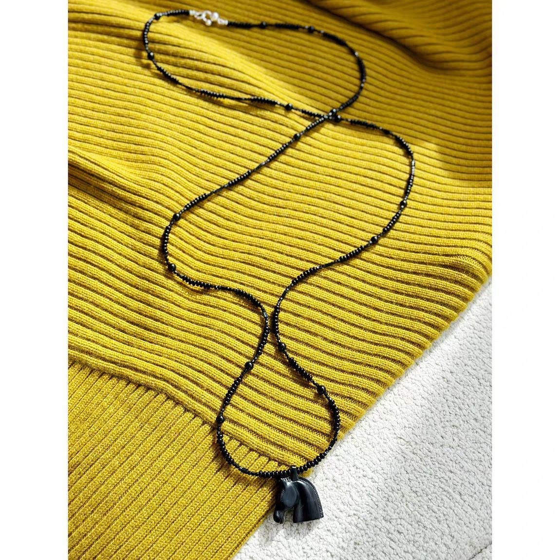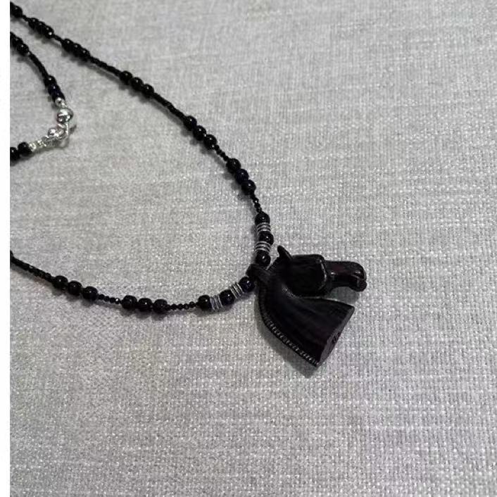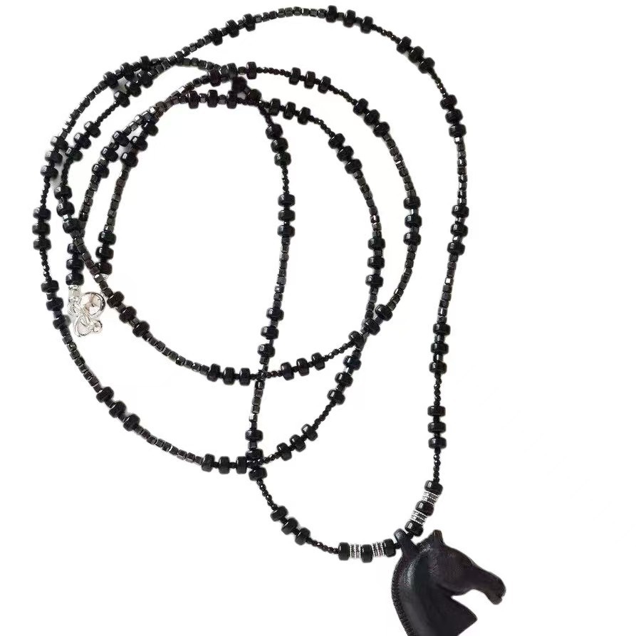 black agate beaded + ebony pendant