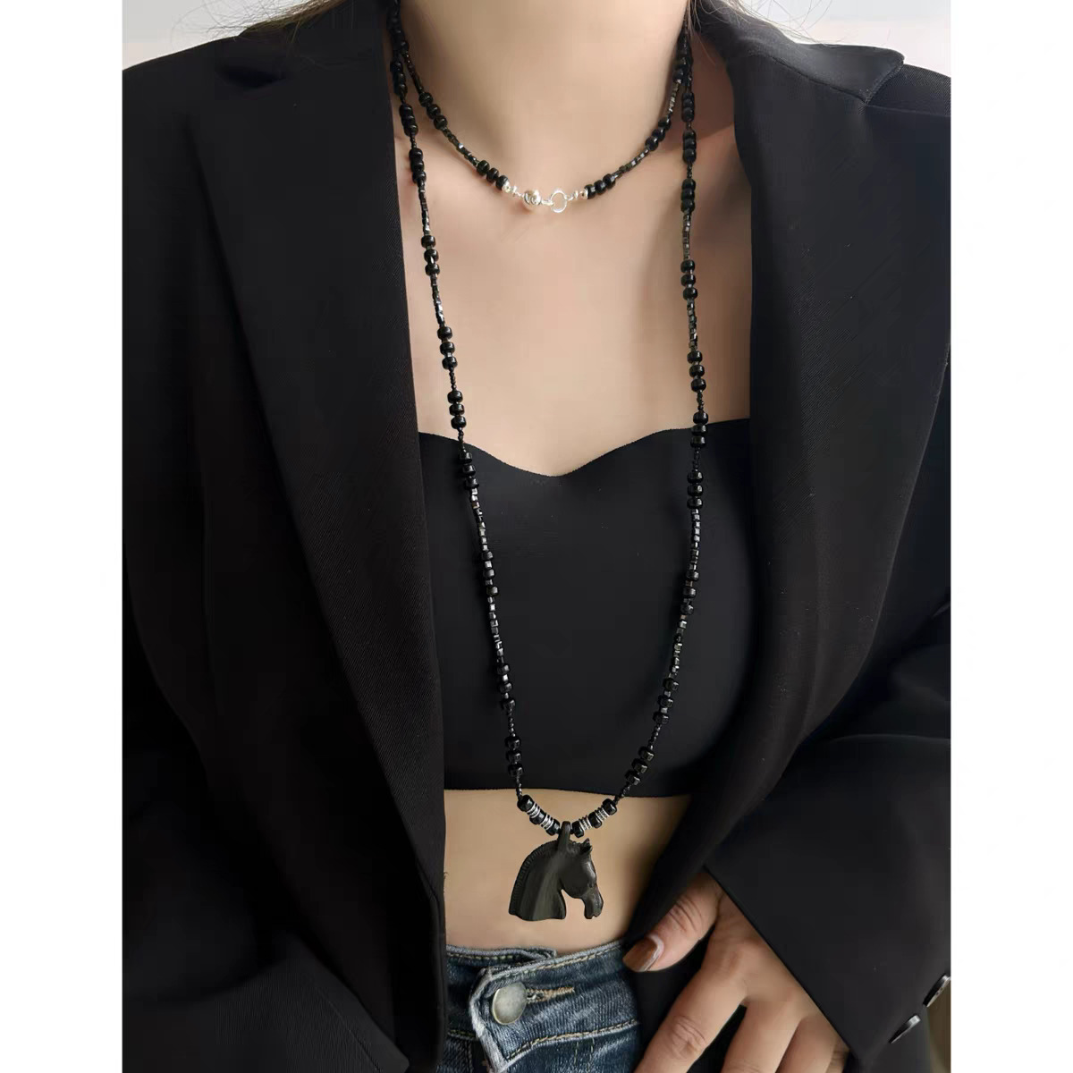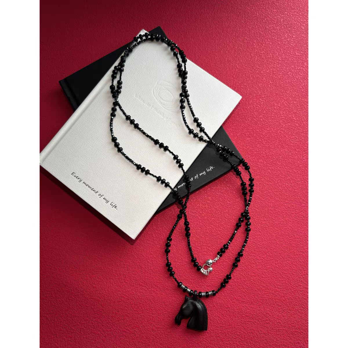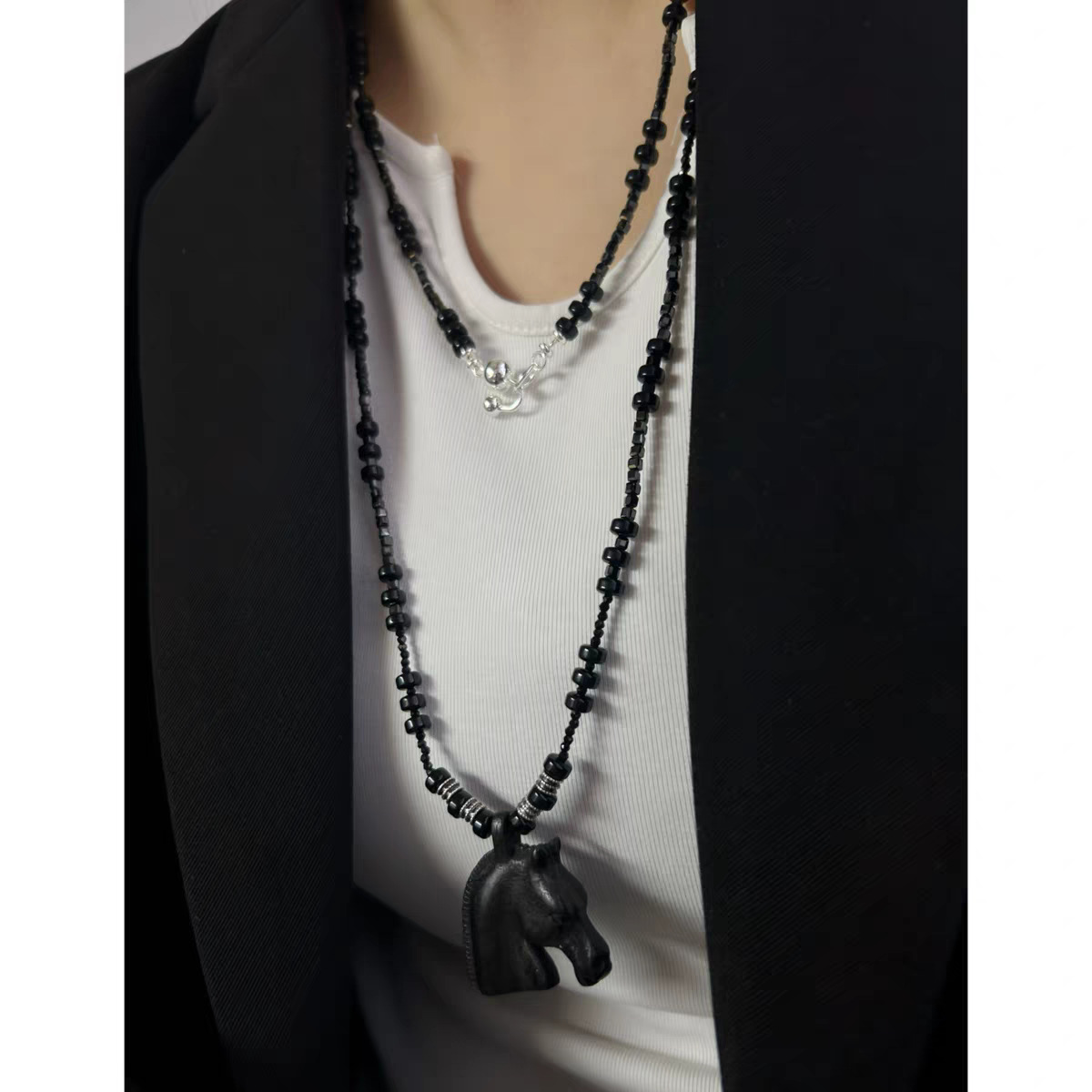 black agate beaded + ebony pendant