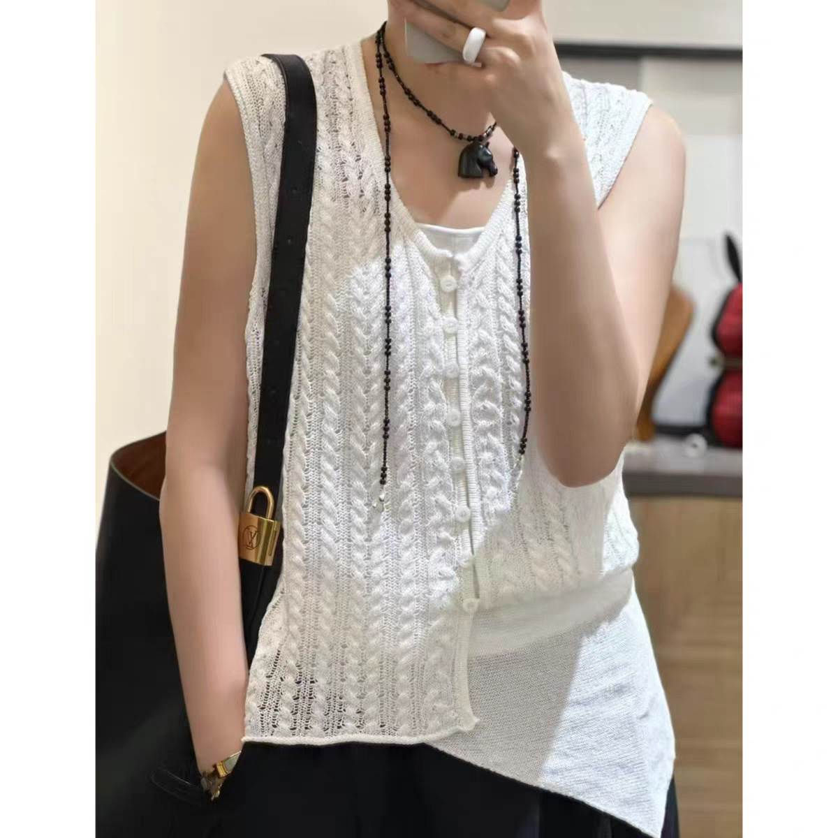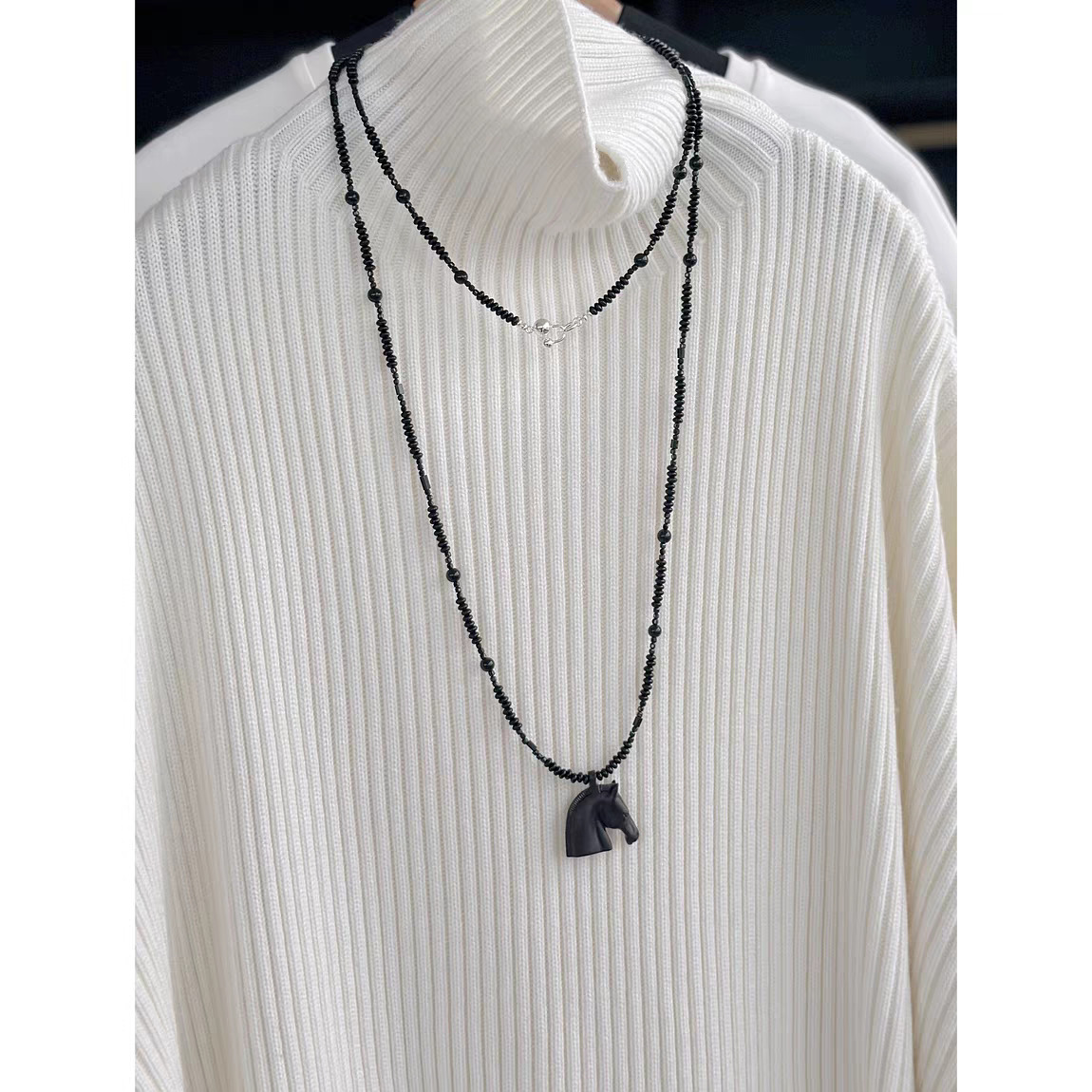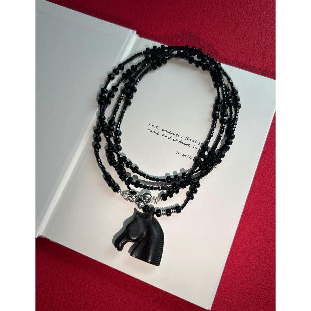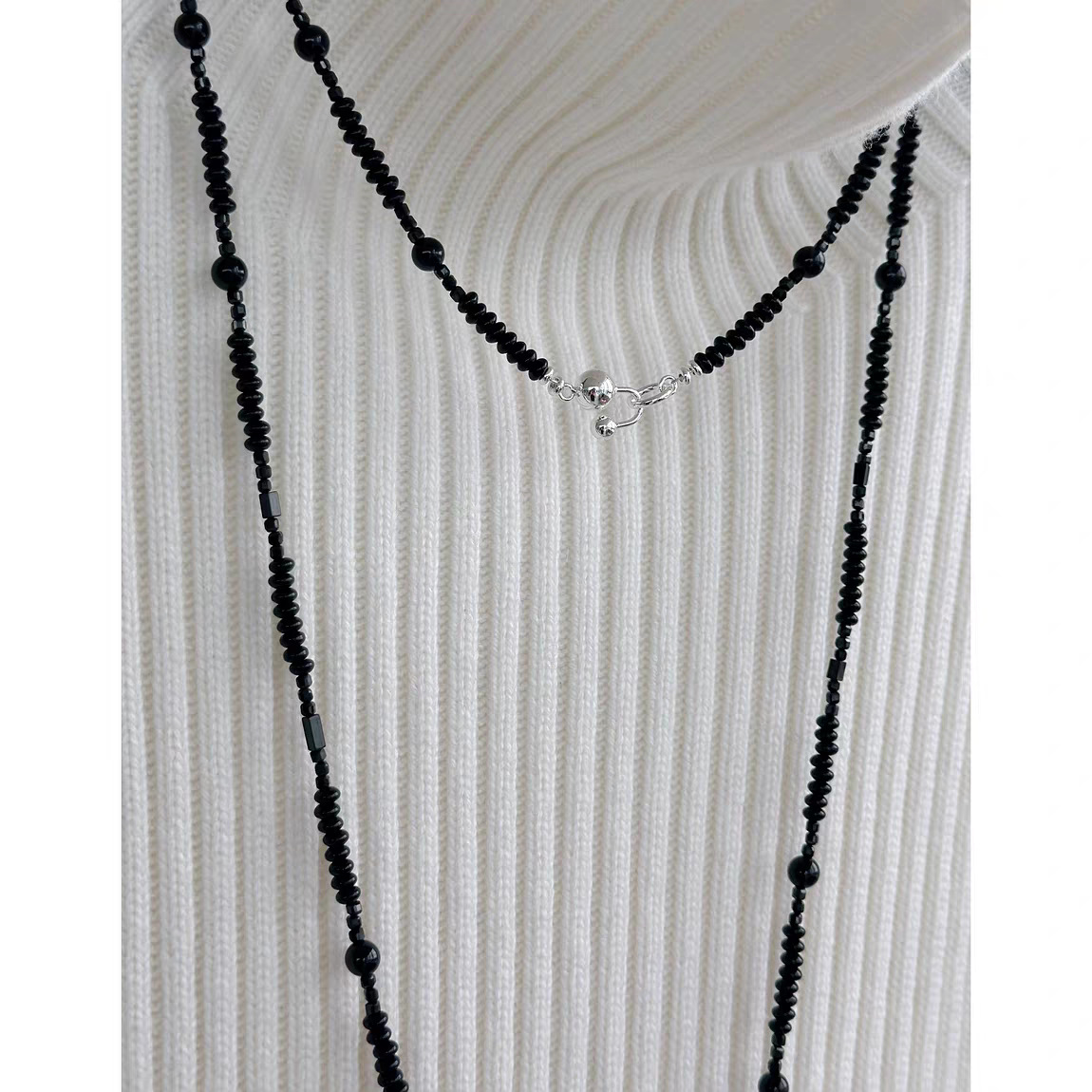 black agate beaded + ebony pendant