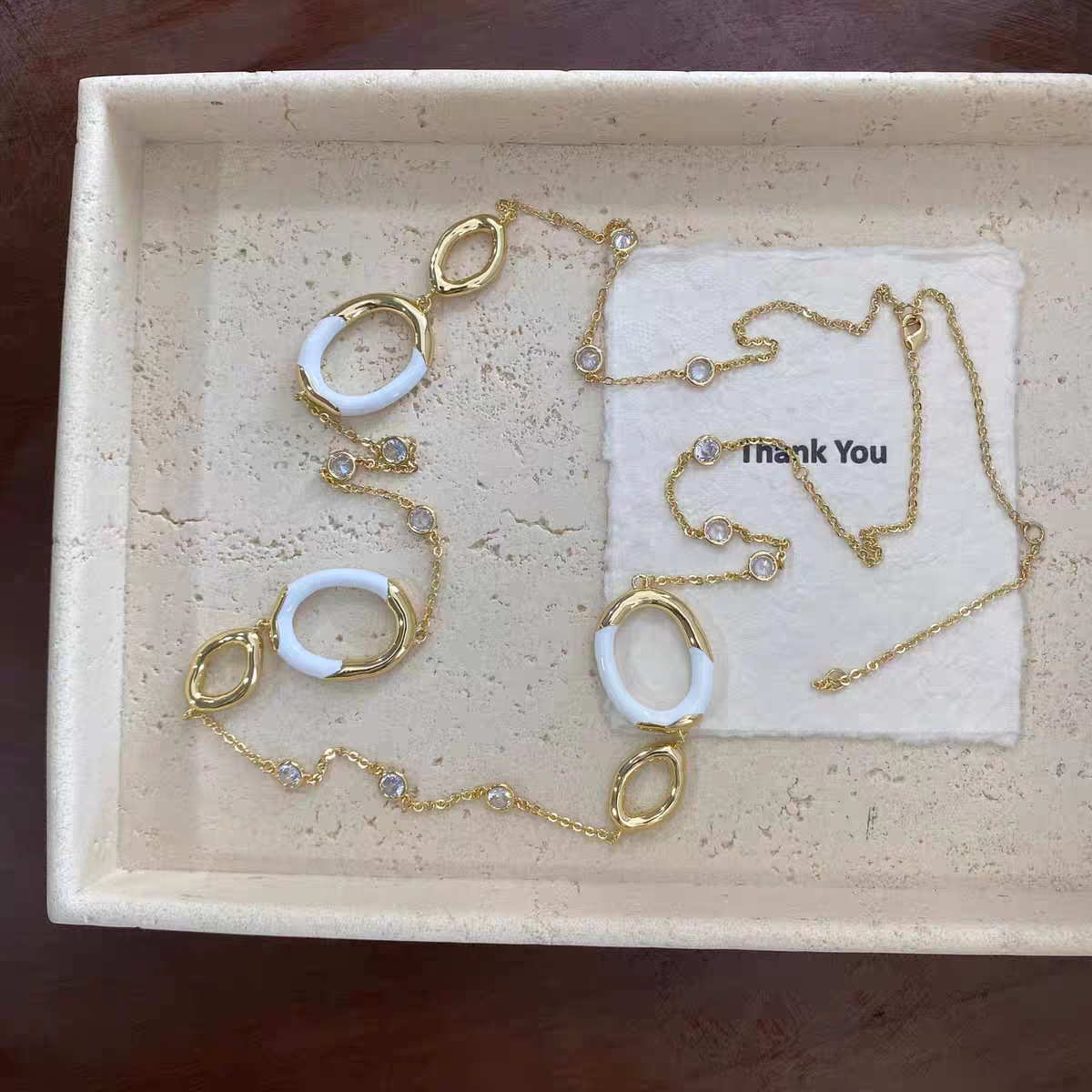 white enamel long necklace