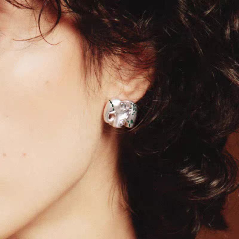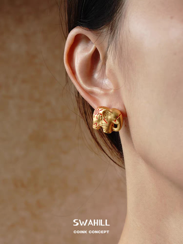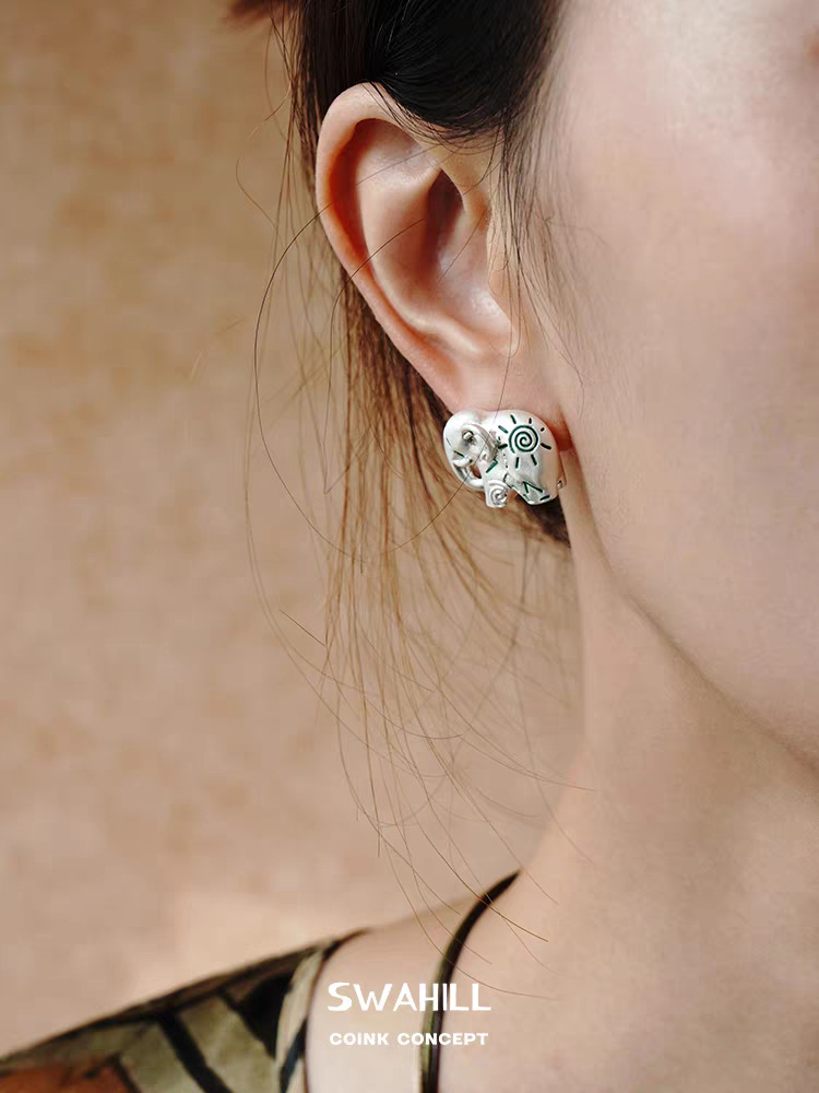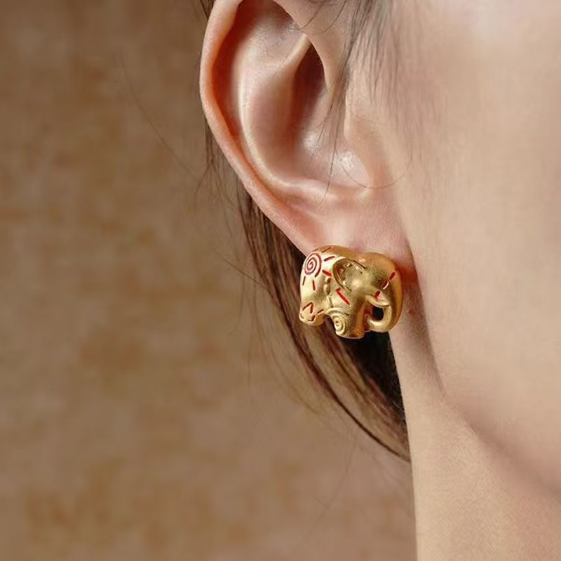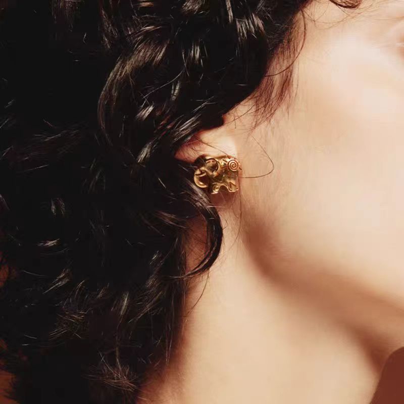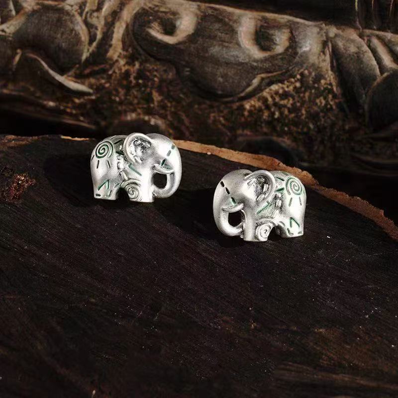 dong jie same style accessories elephant totem stud earrings original design personality small high-grade sense popular retro earrings earrings