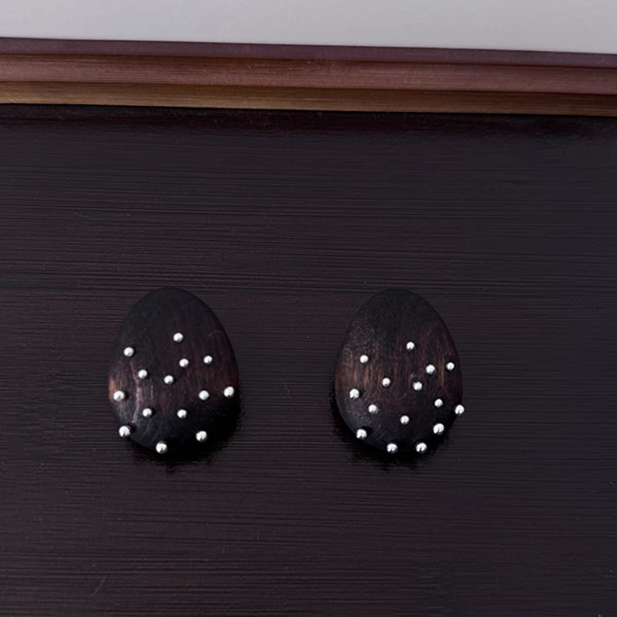 wood carving silver gem earrings
