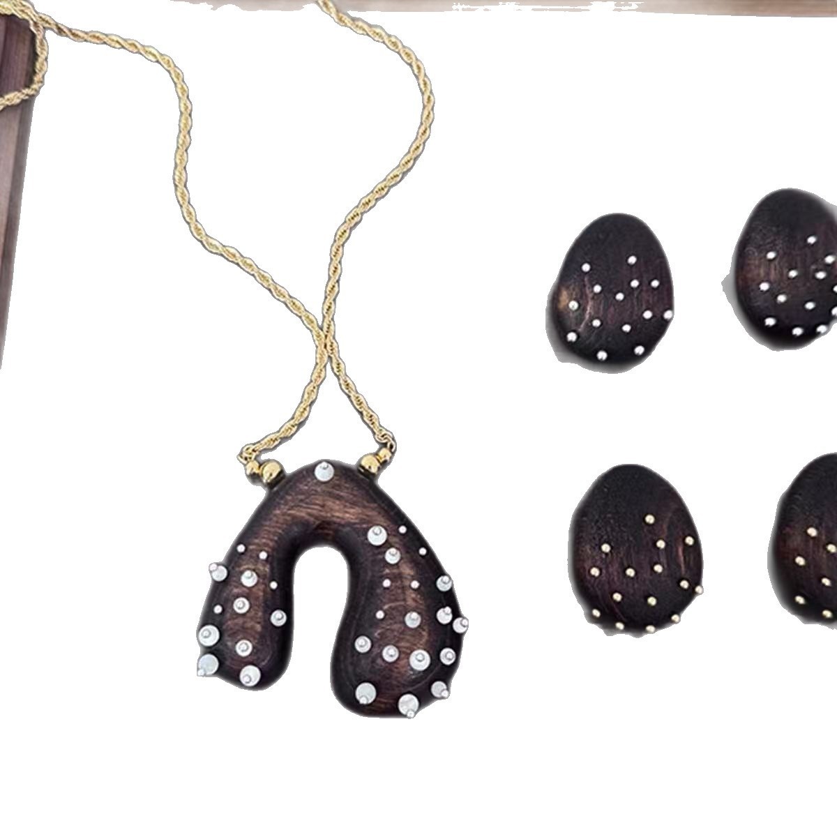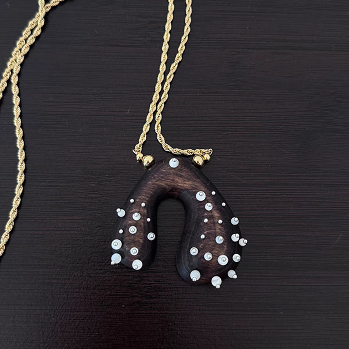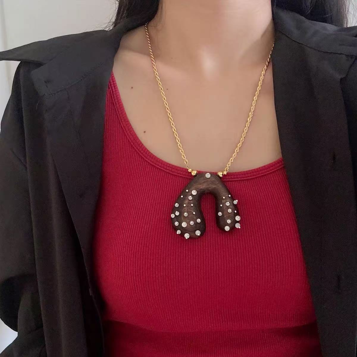 wood carving gem necklace