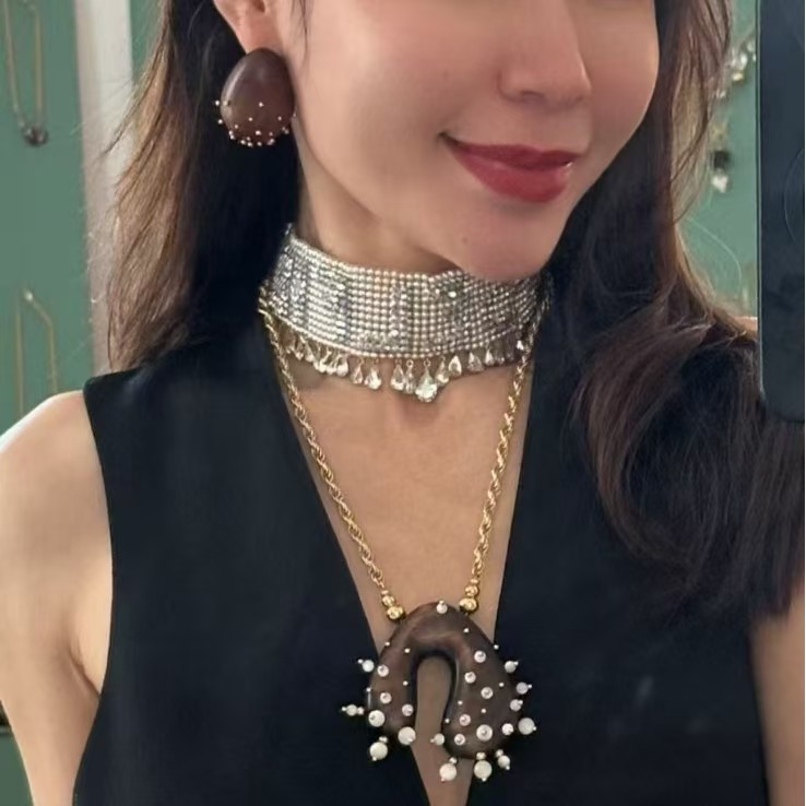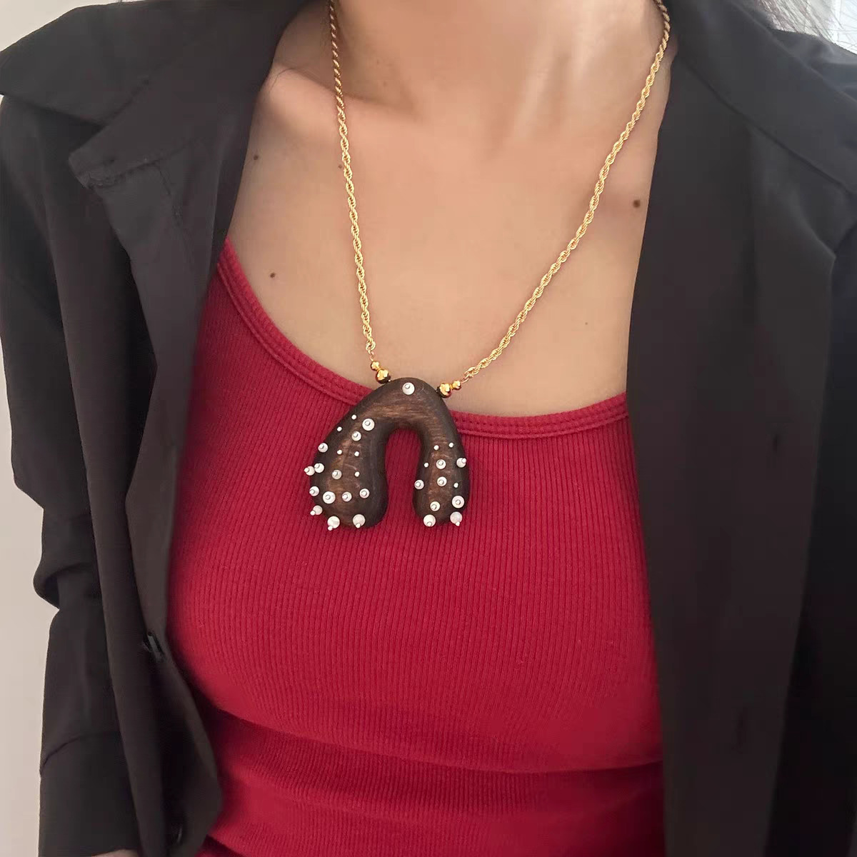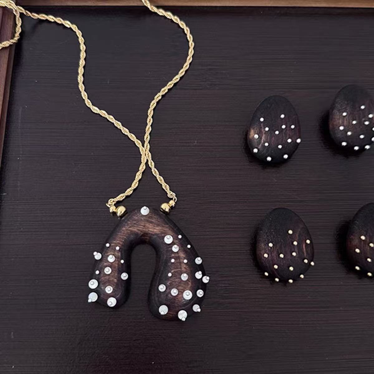wood carving gem necklace