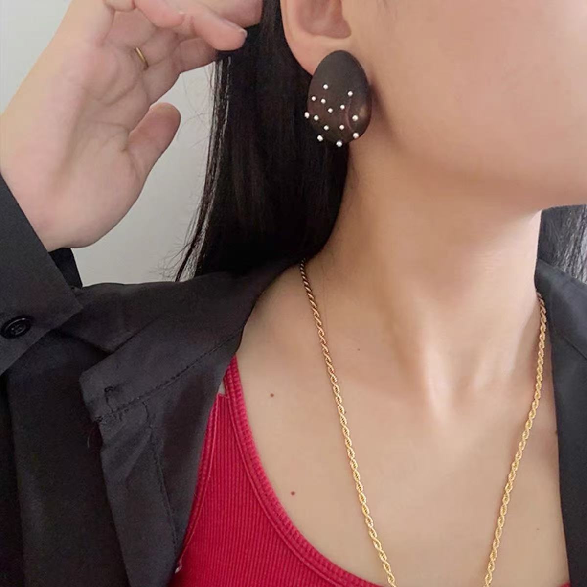 wood carving gold gemstone earrings