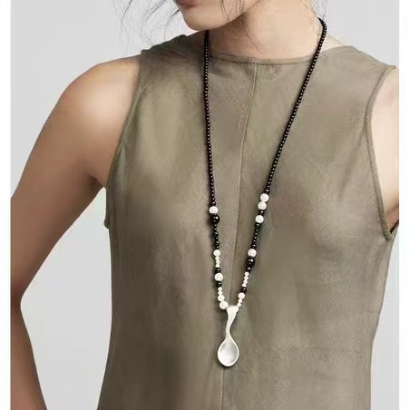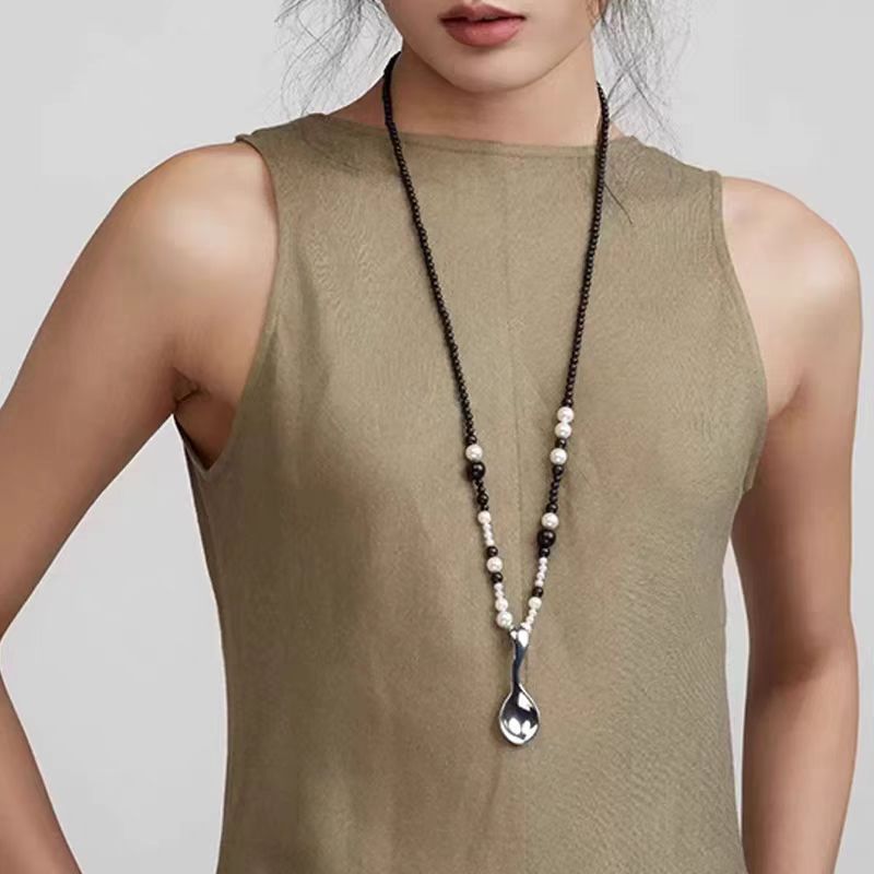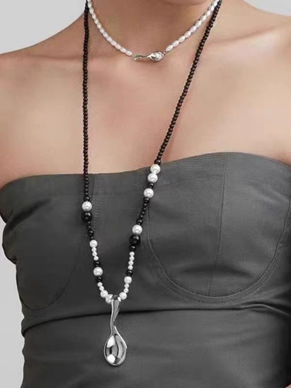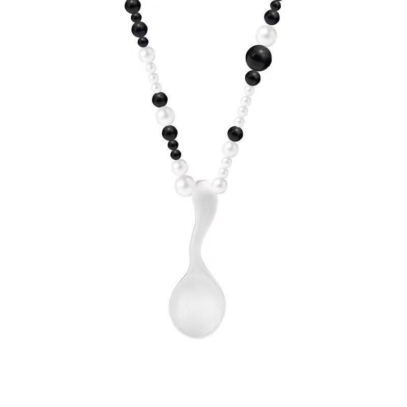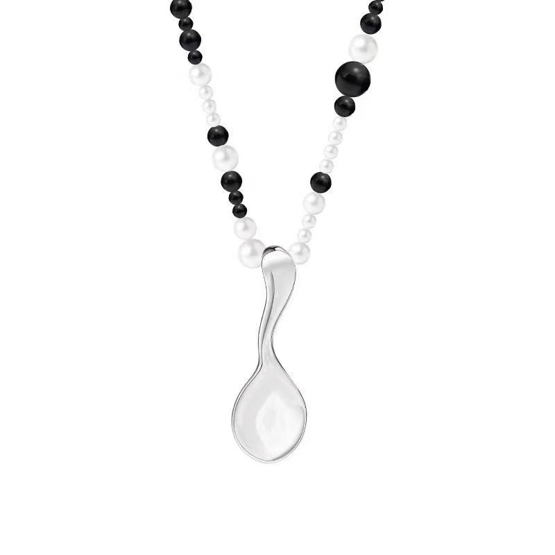 black and white mixed beads + matte silver spoon