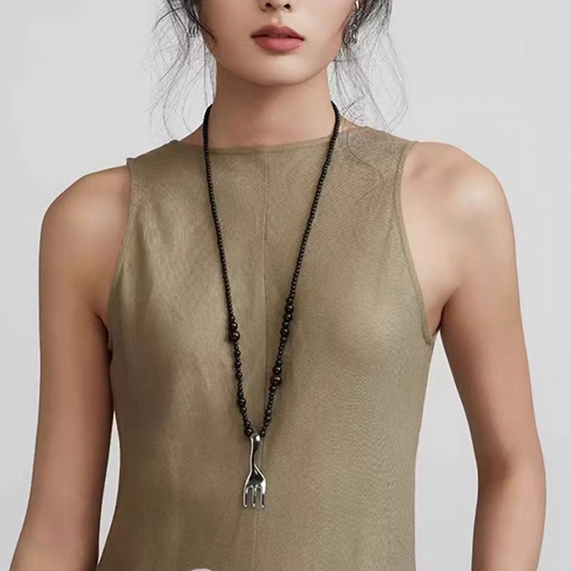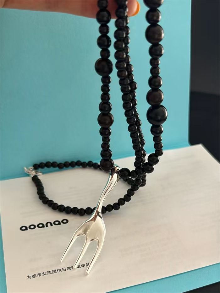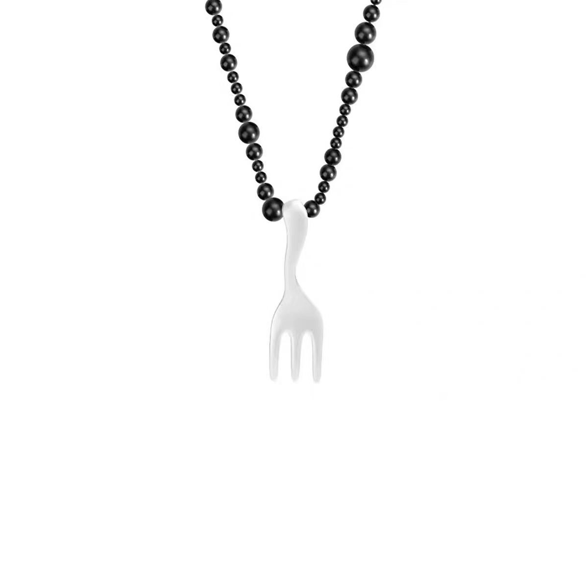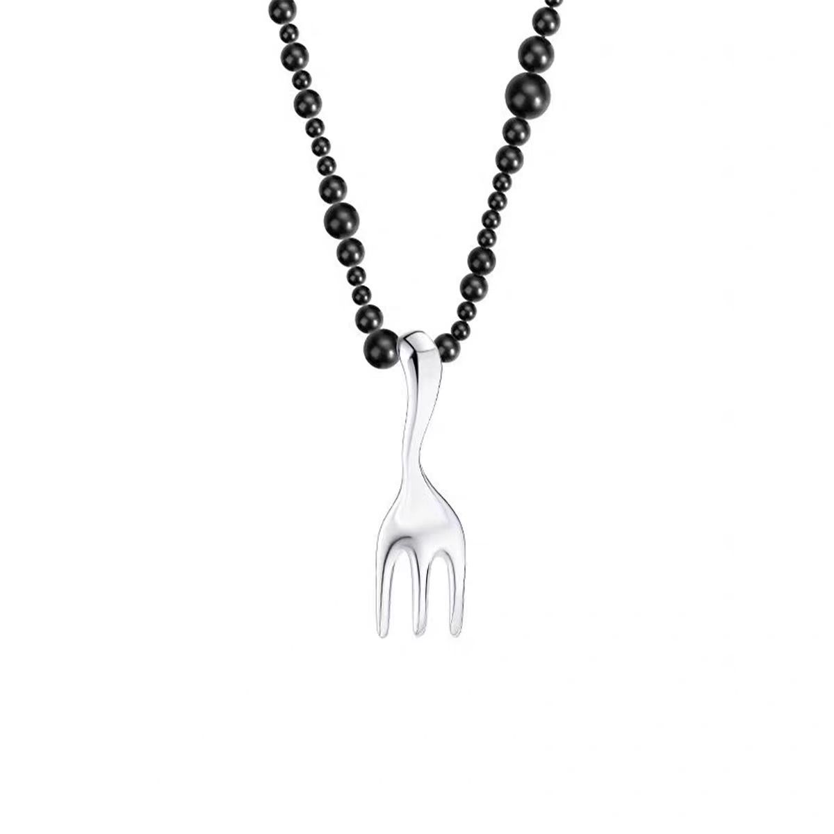 black beaded + matte silver fork