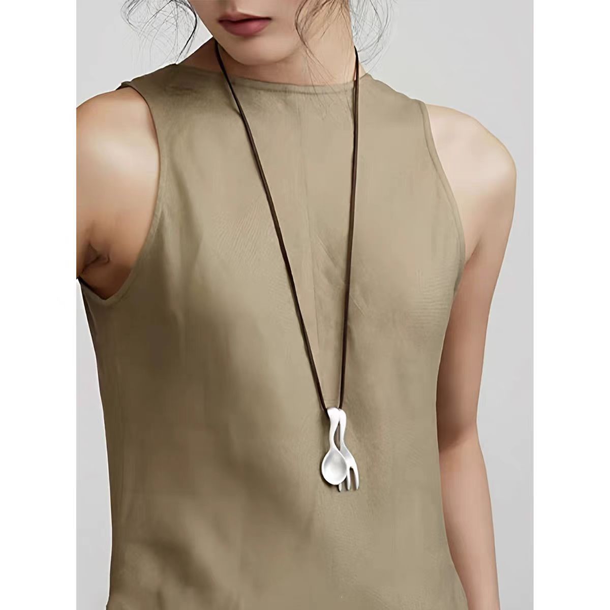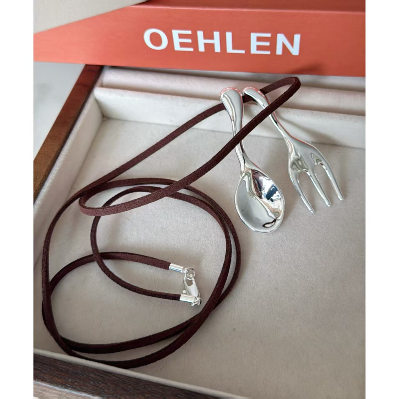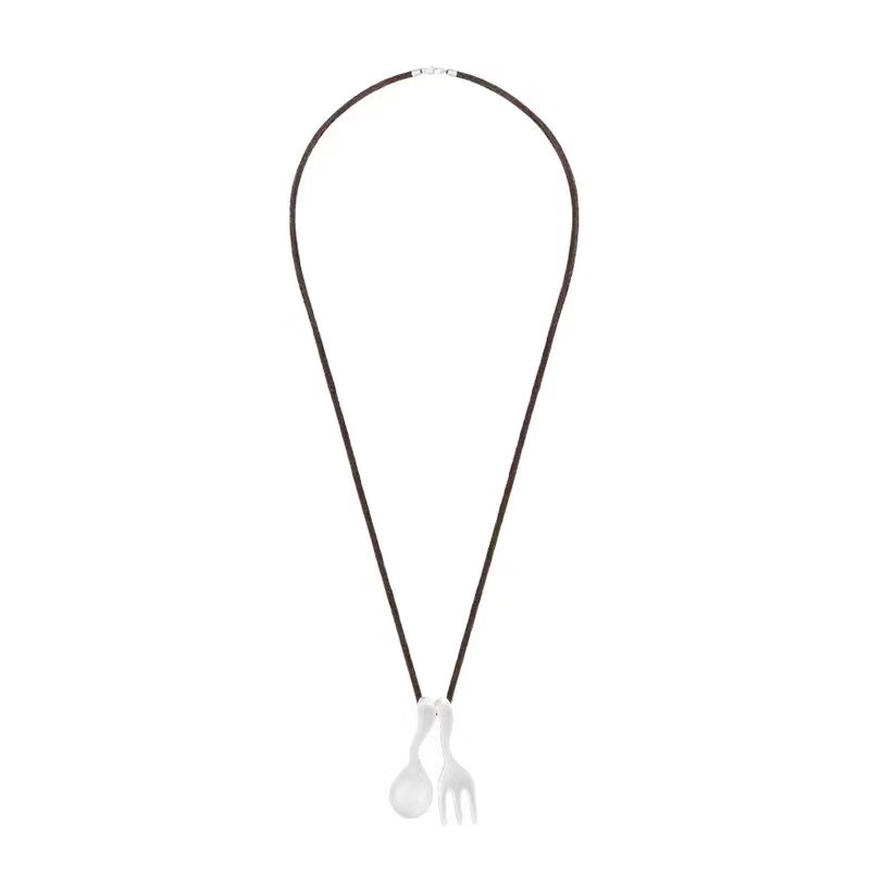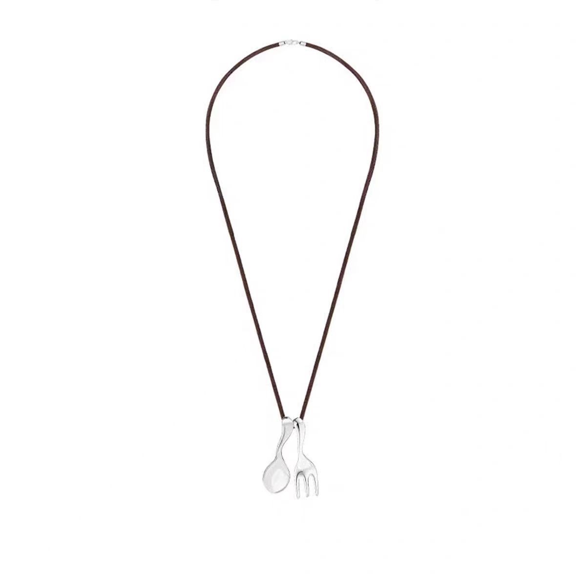 leather rope matte silver spoon + fork