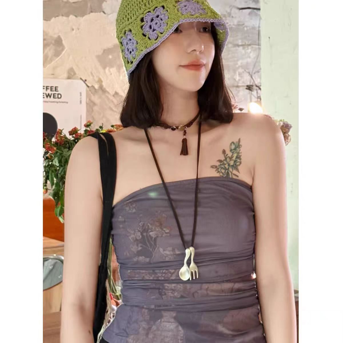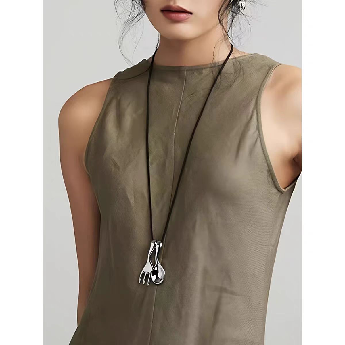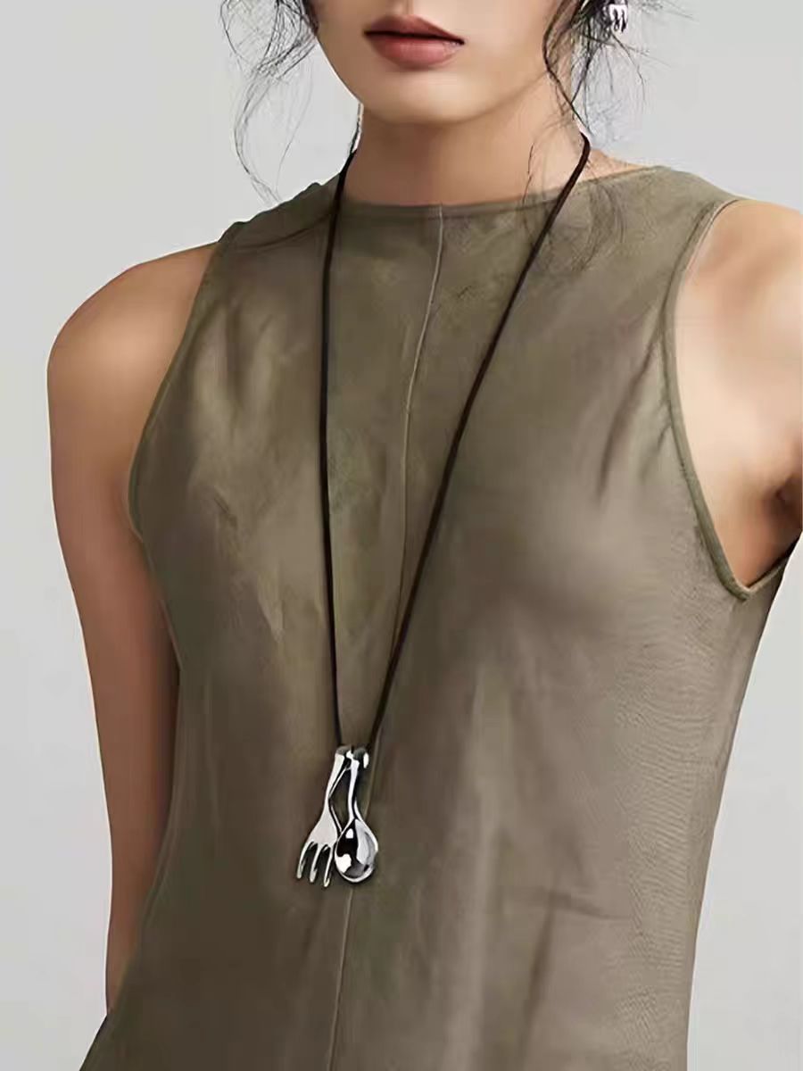 leather rope matte silver spoon + fork