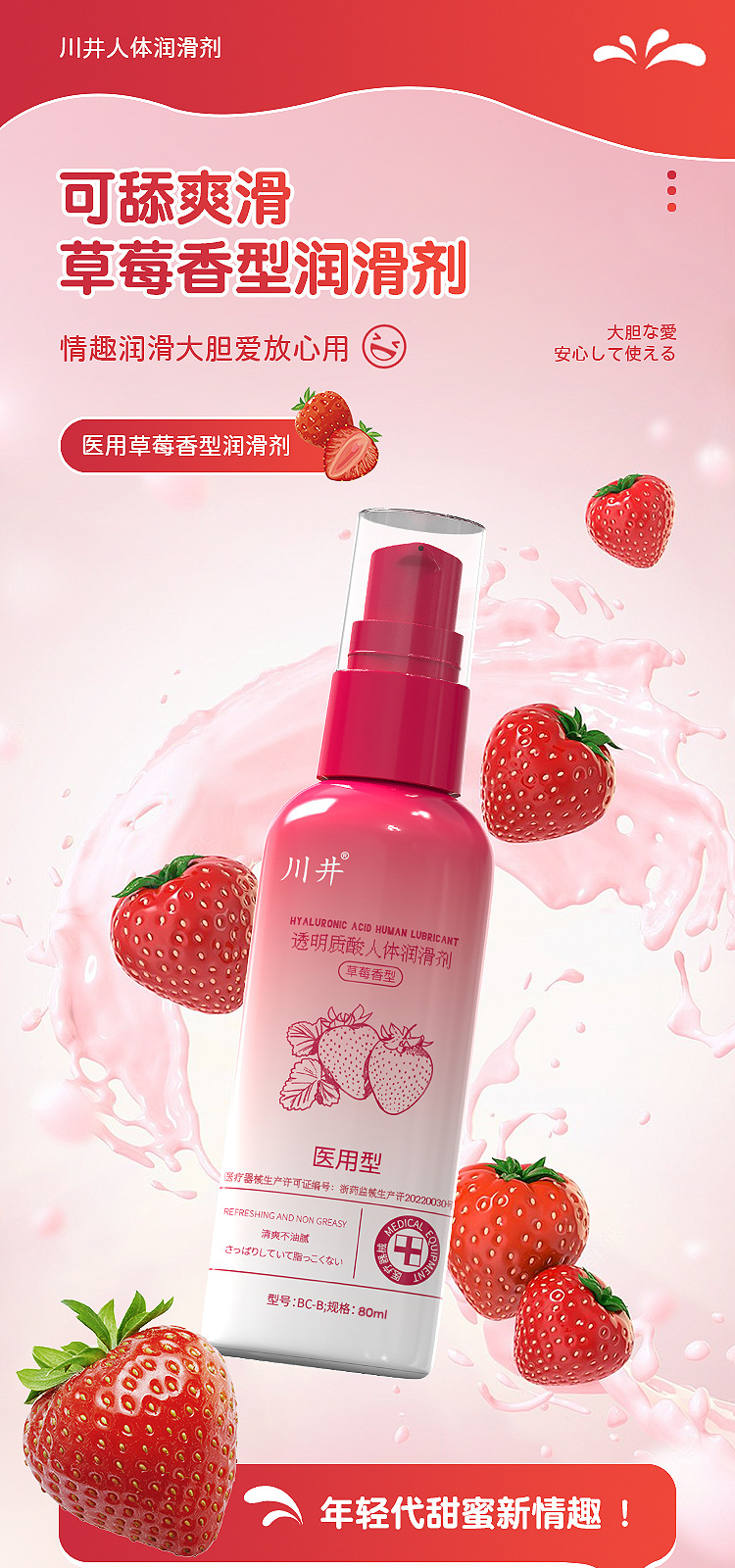 sichuan well medical strawberry flavor body lubricant 80ml
