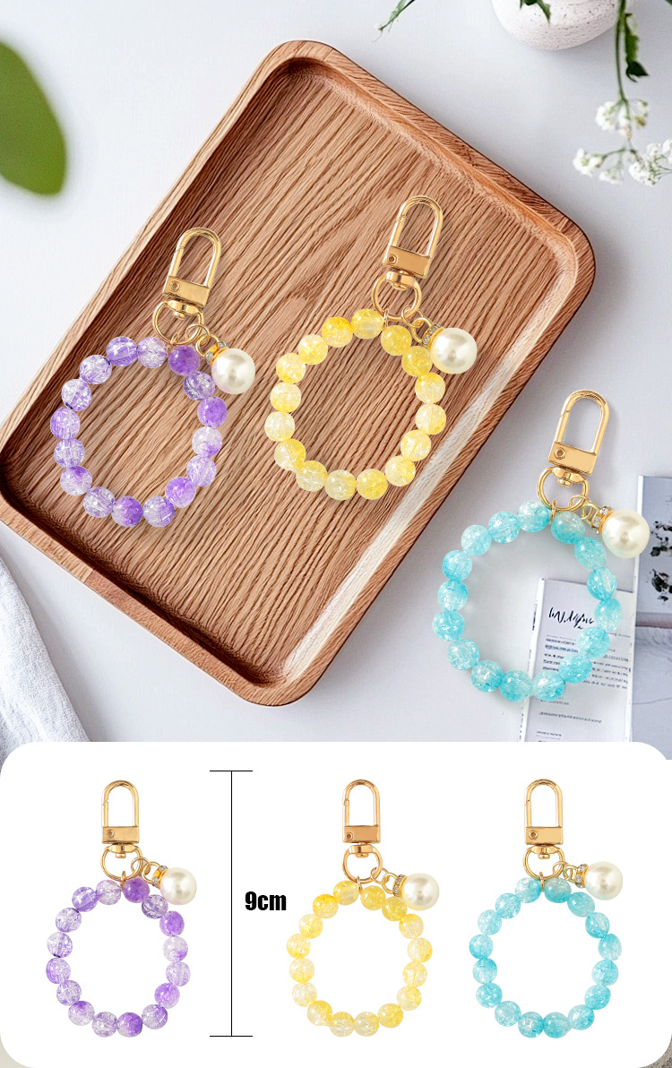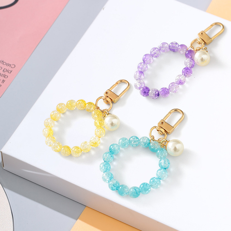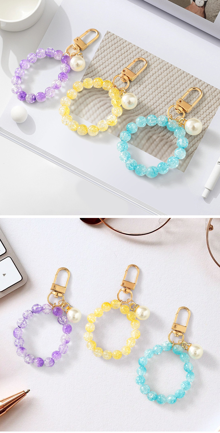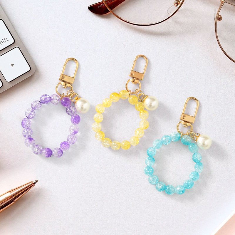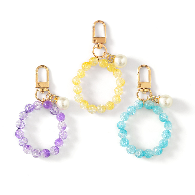 yellow pearl bead necklace keychain