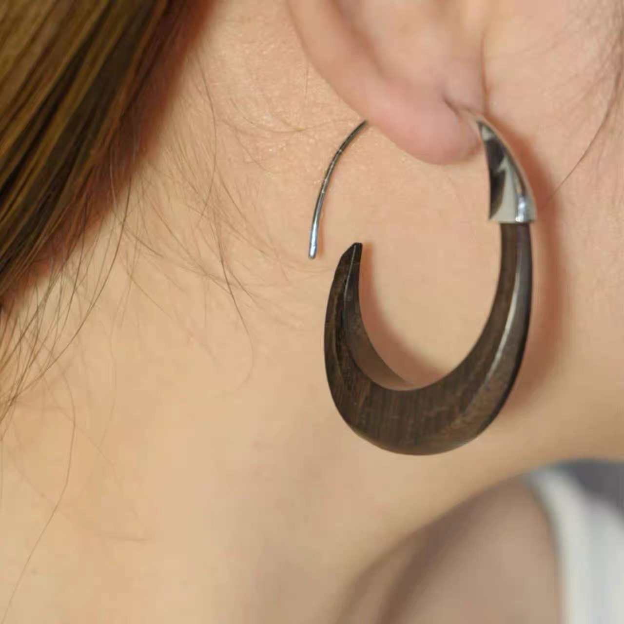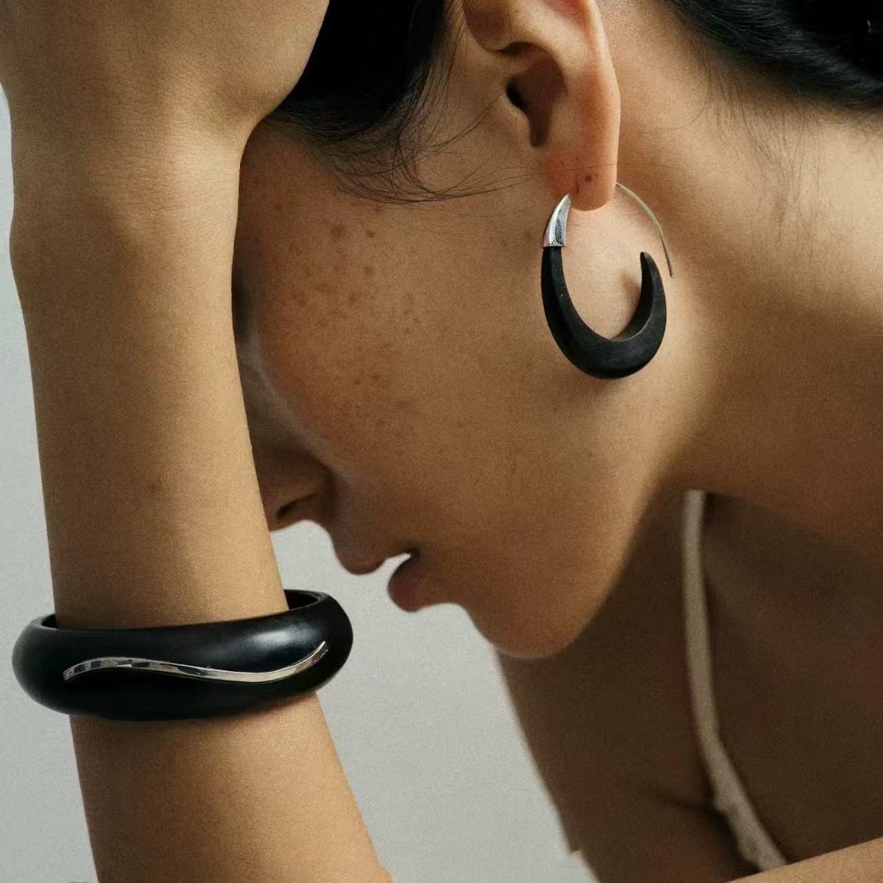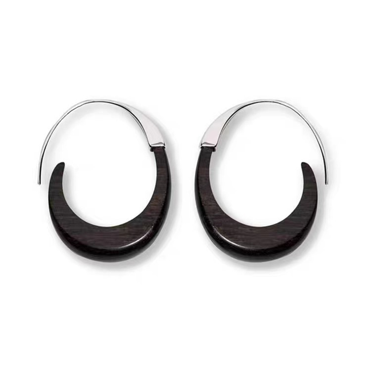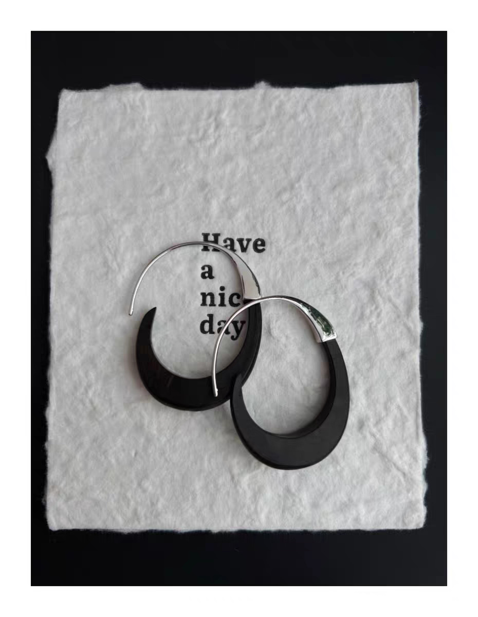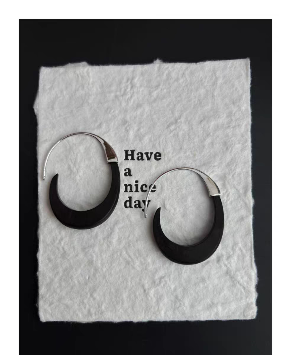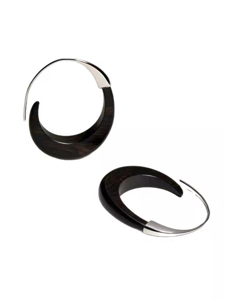 metal blackwood stitching crescent earrings