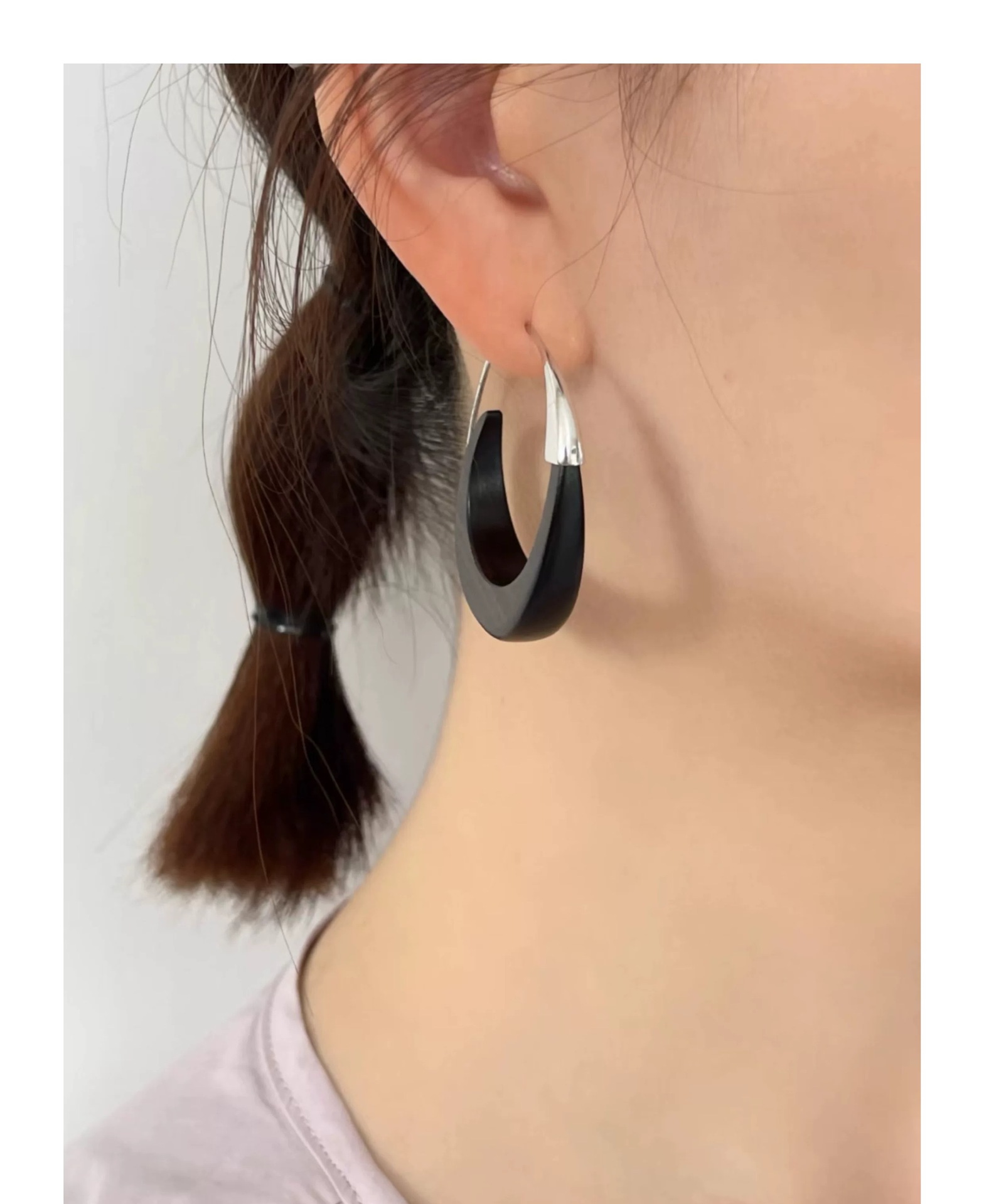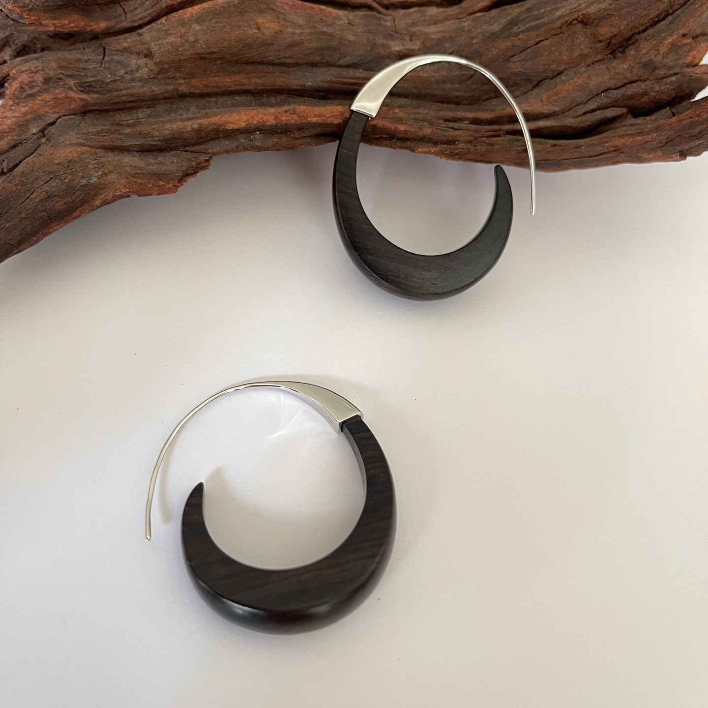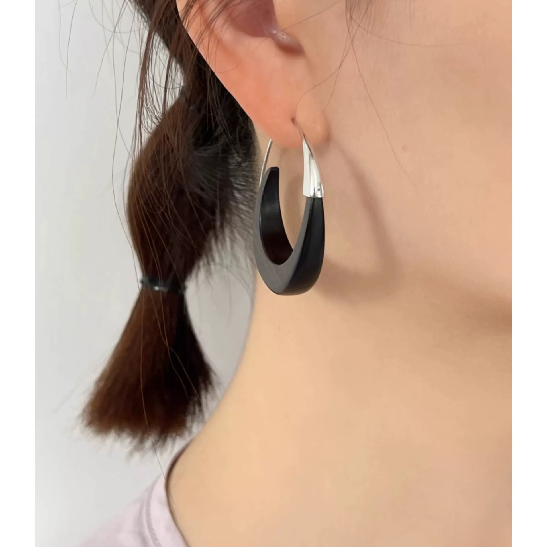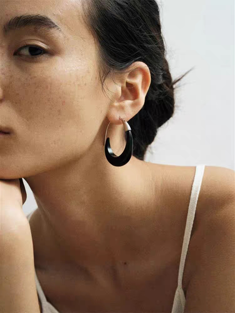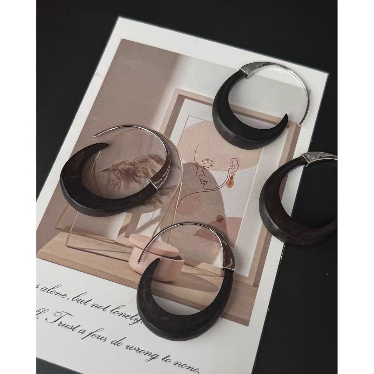 metal blackwood stitching crescent earrings