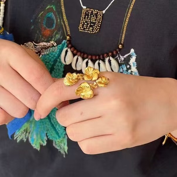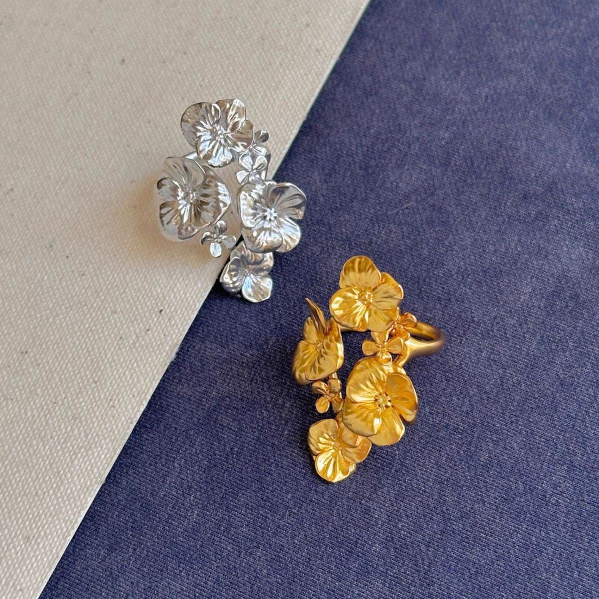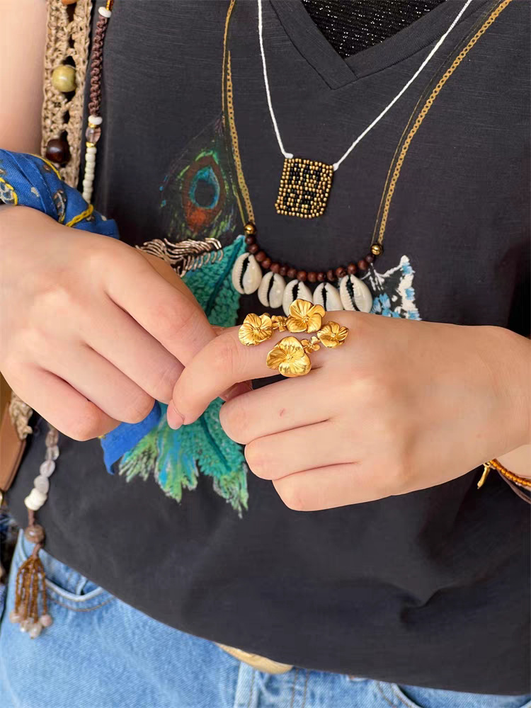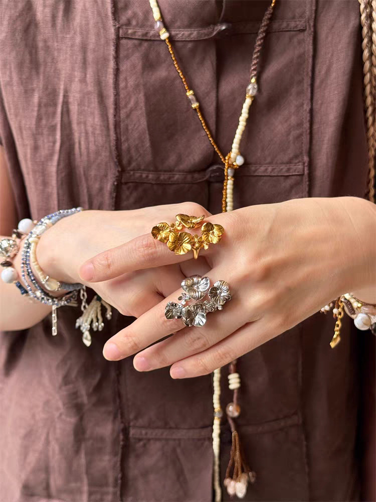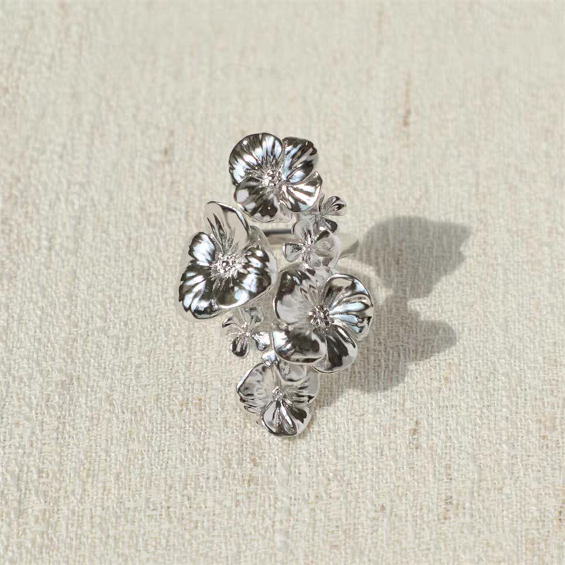 affordable luxury fashion ornament niche high-grade romantic flowers open ring female three-dimensional hollow flower ring accessories