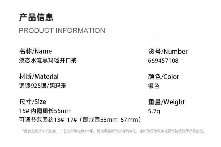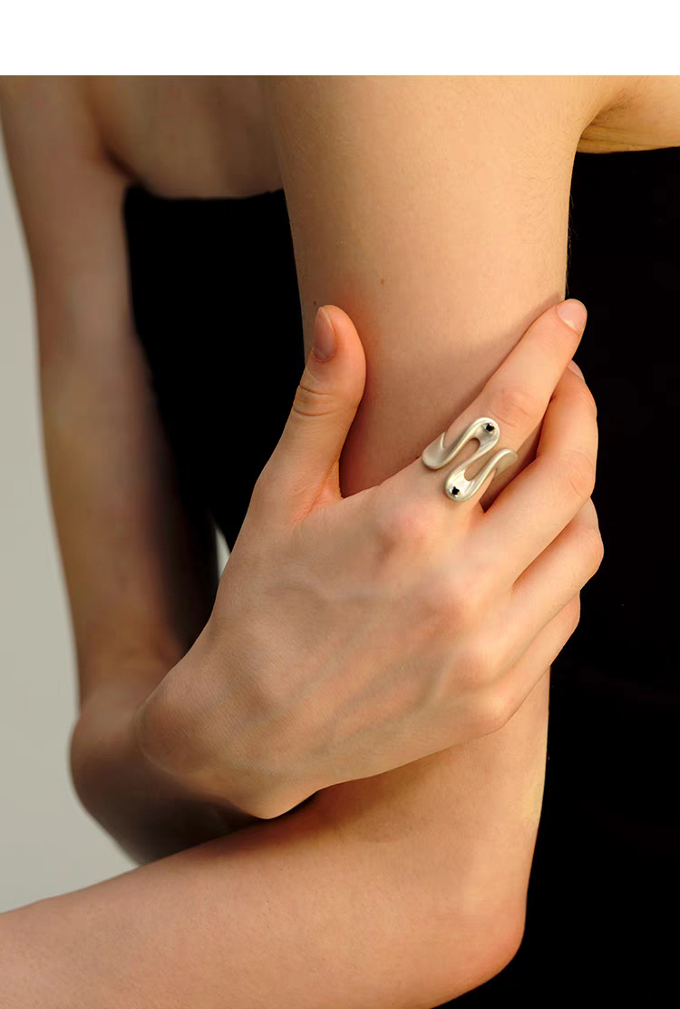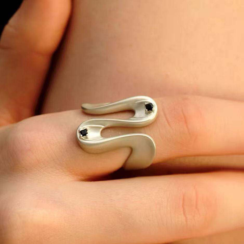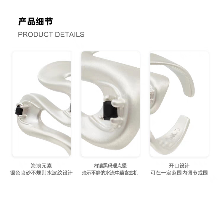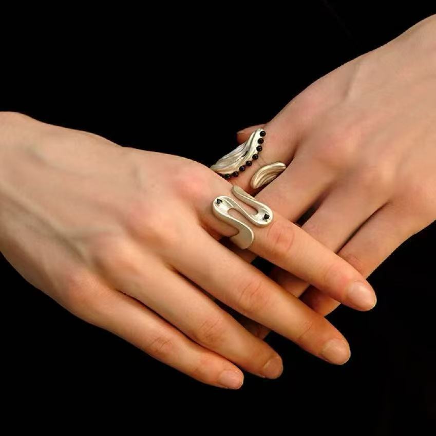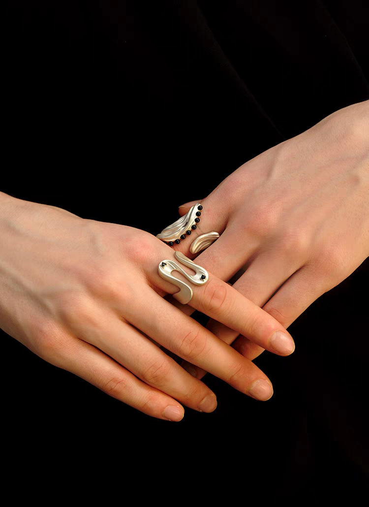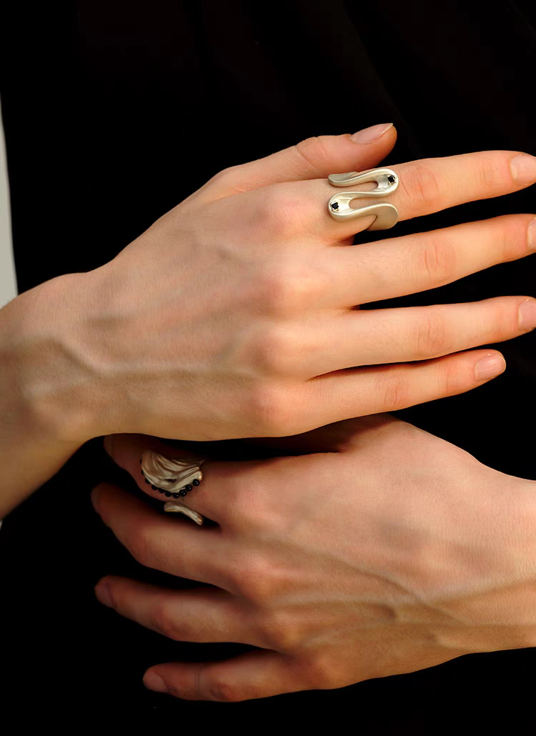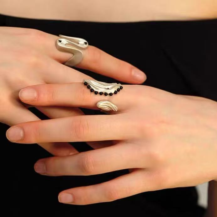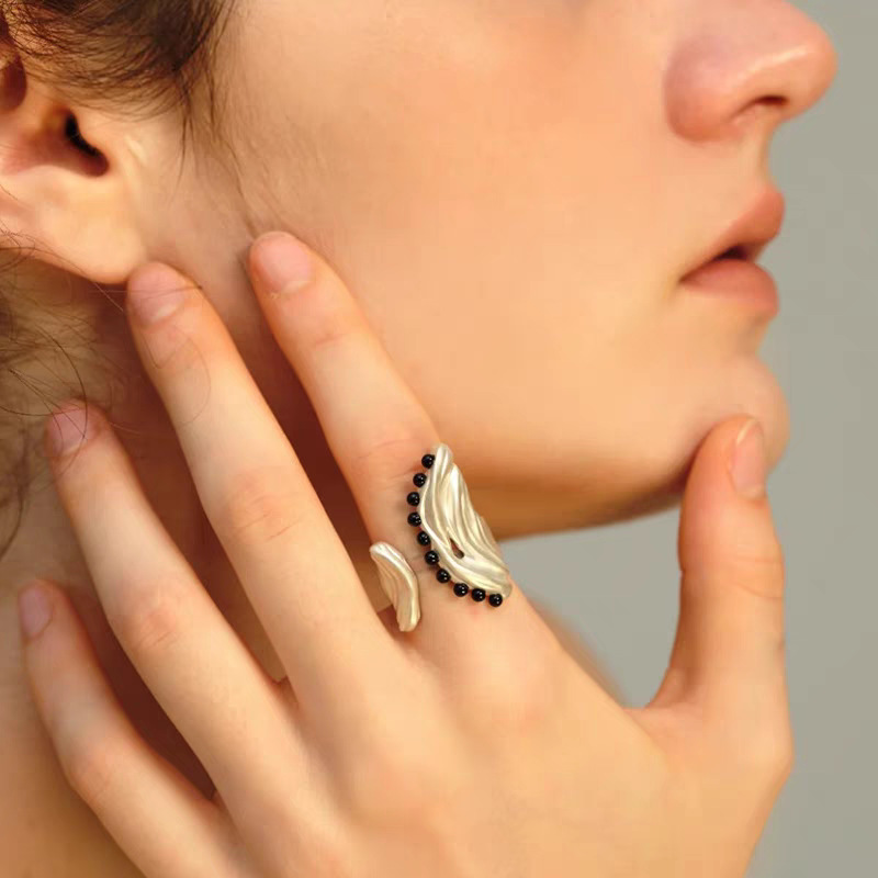 2025 new hailang water ripple design adjustable ring advanced sense inlaid black agate versatile opening ring