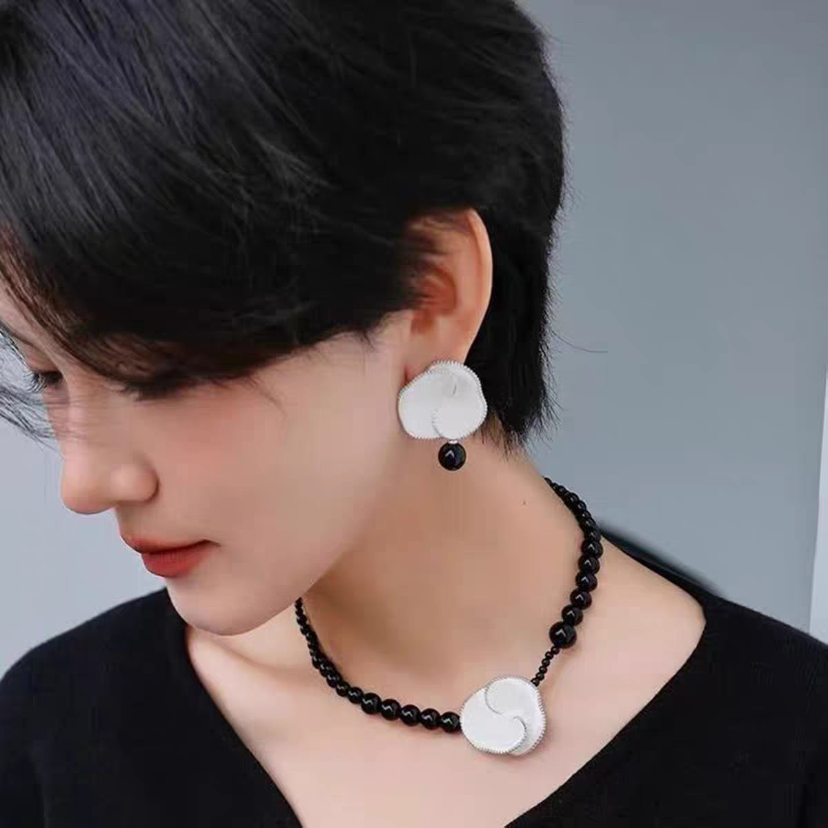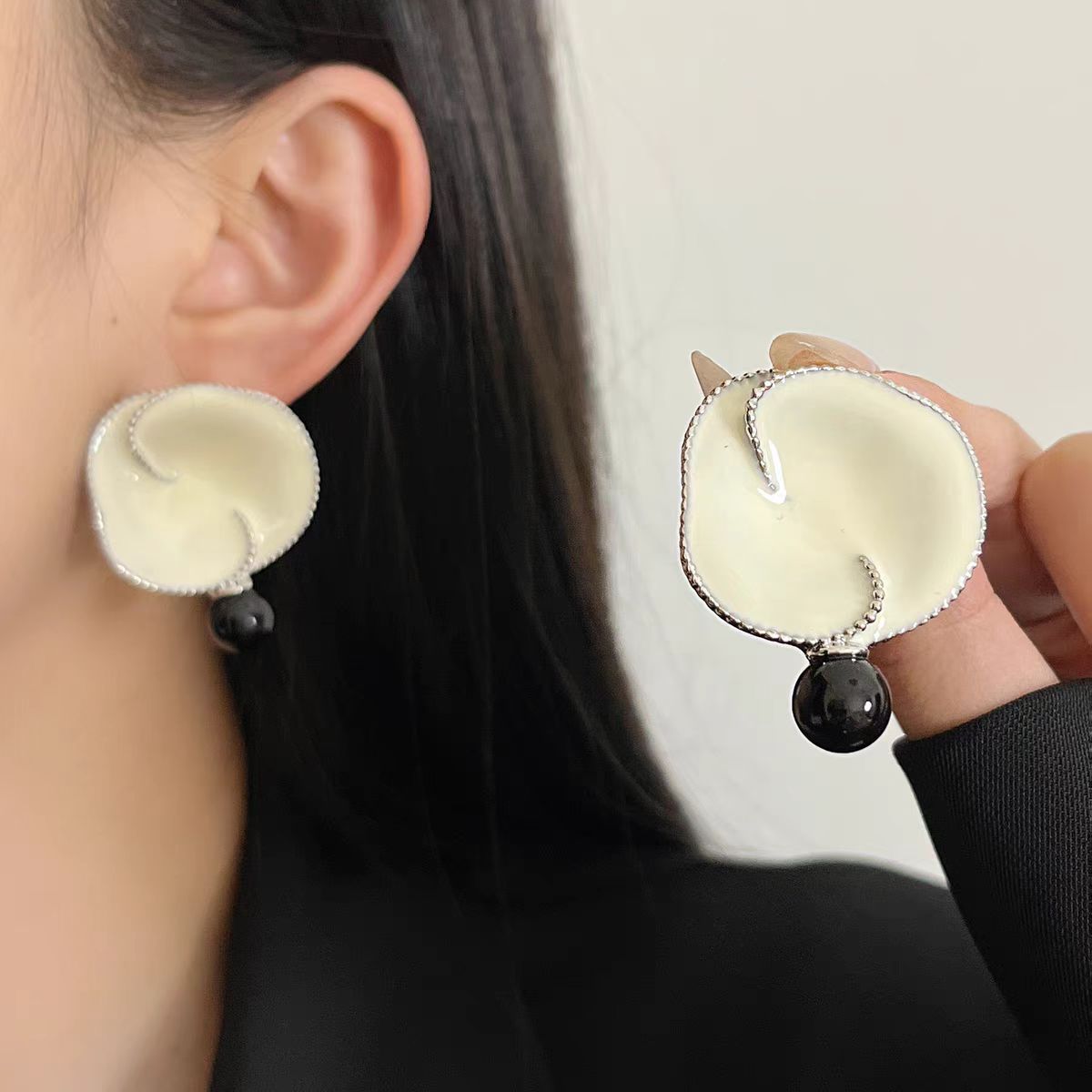 black agate ear studs