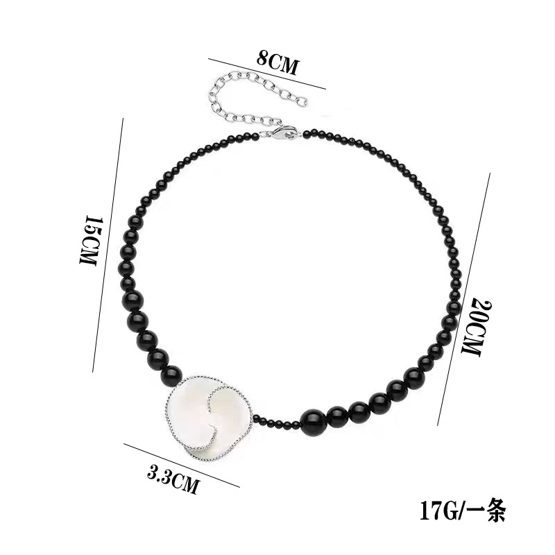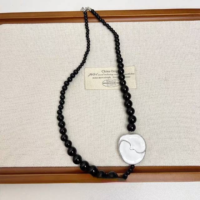 black agate long necklace