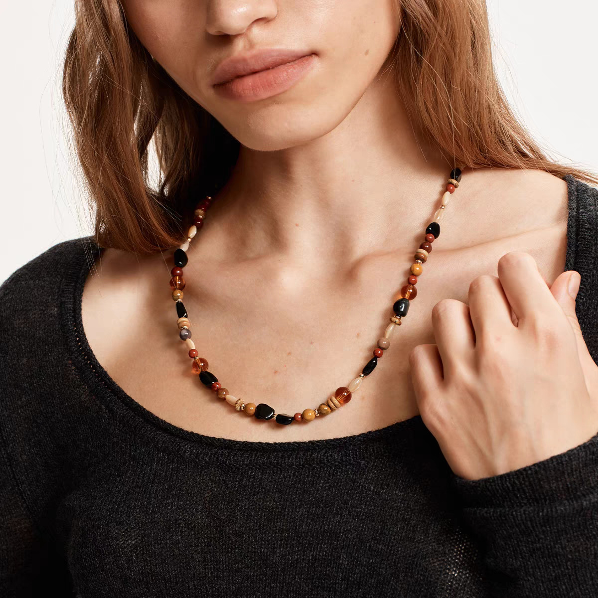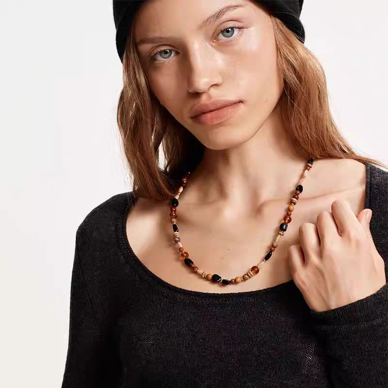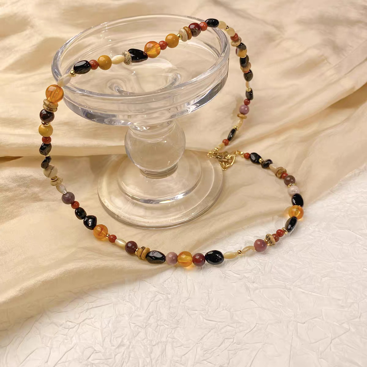 mixed gem beaded necklace