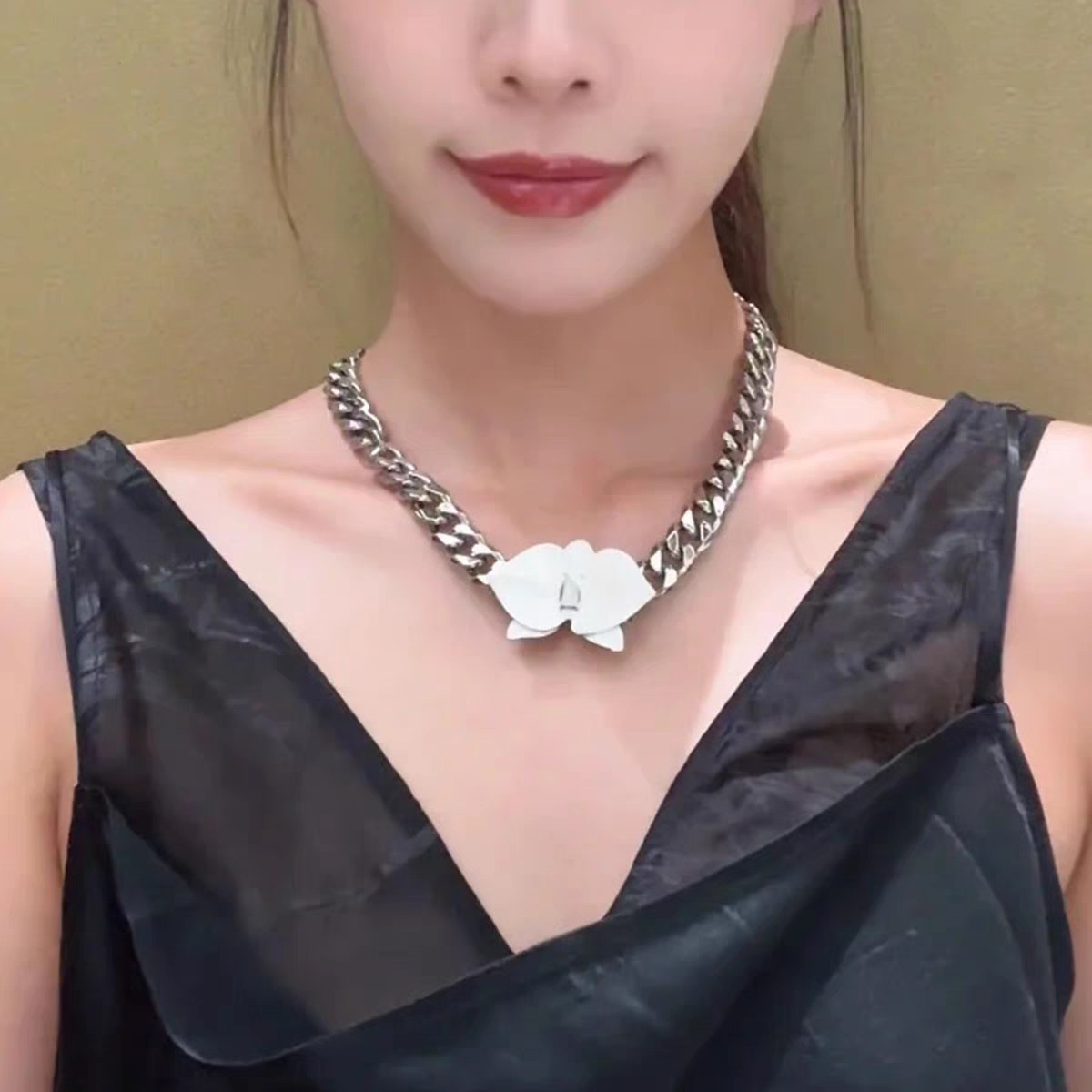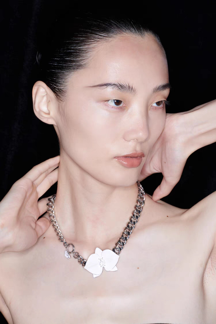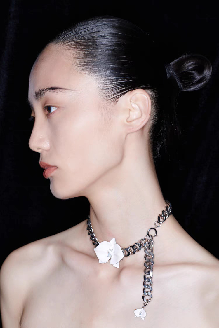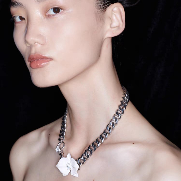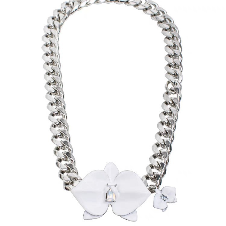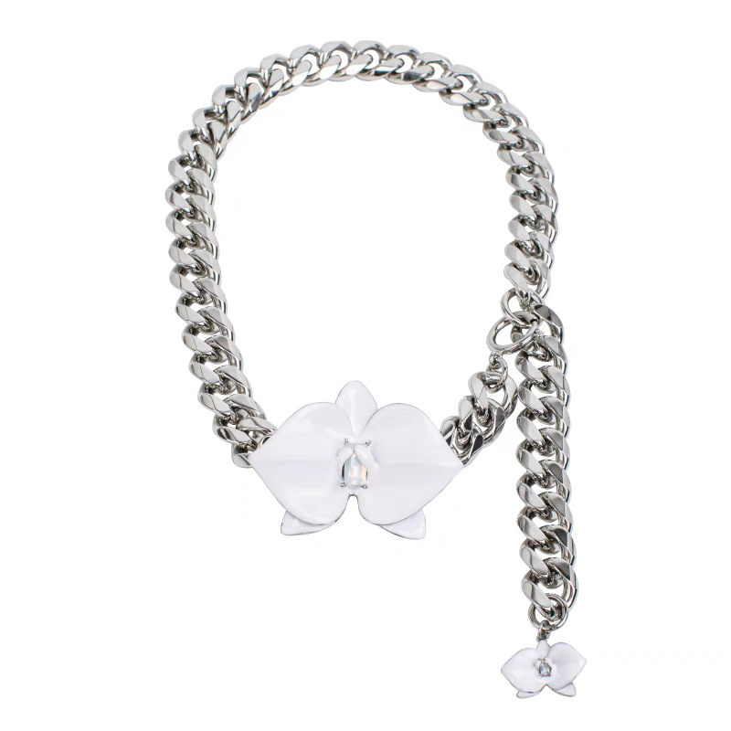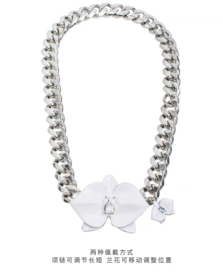 phalaenopsis white enamel necklace