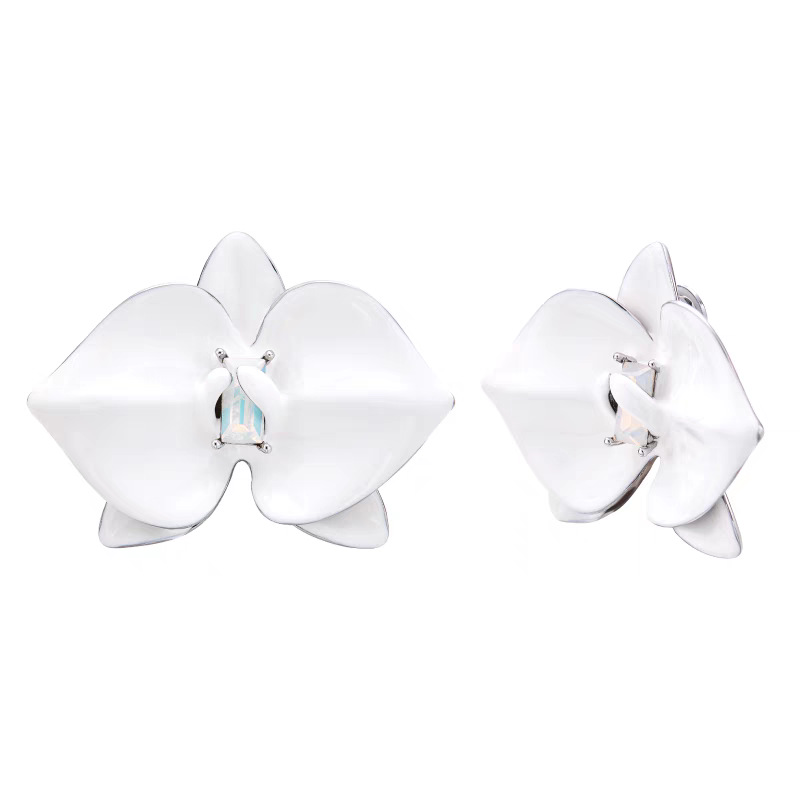 phalaenopsis white enamel stud earrings