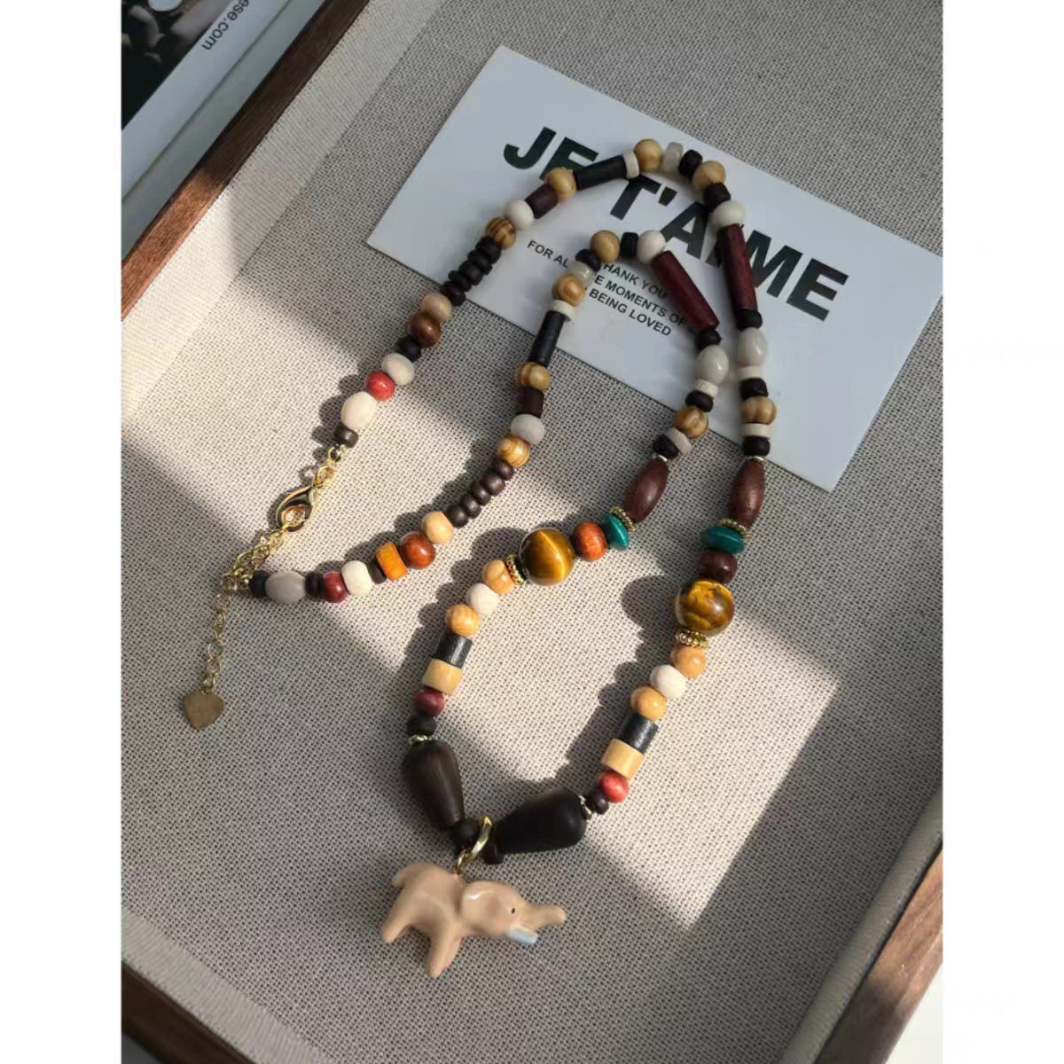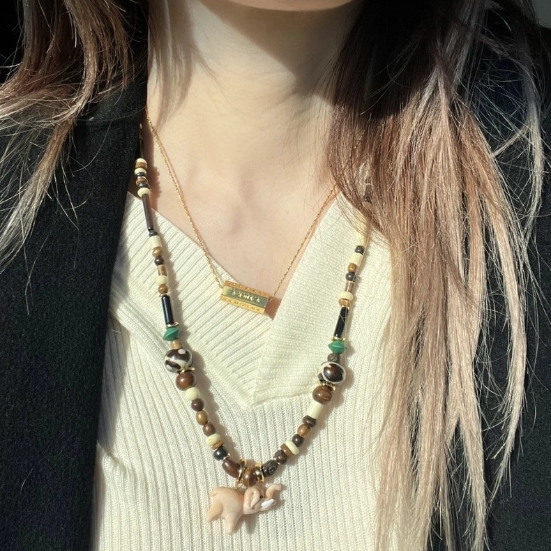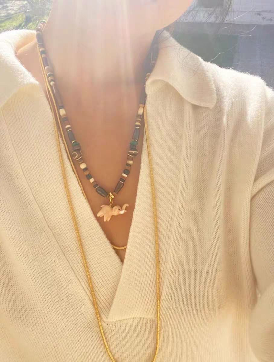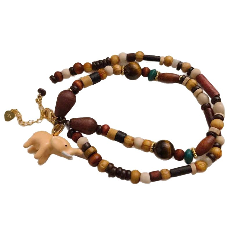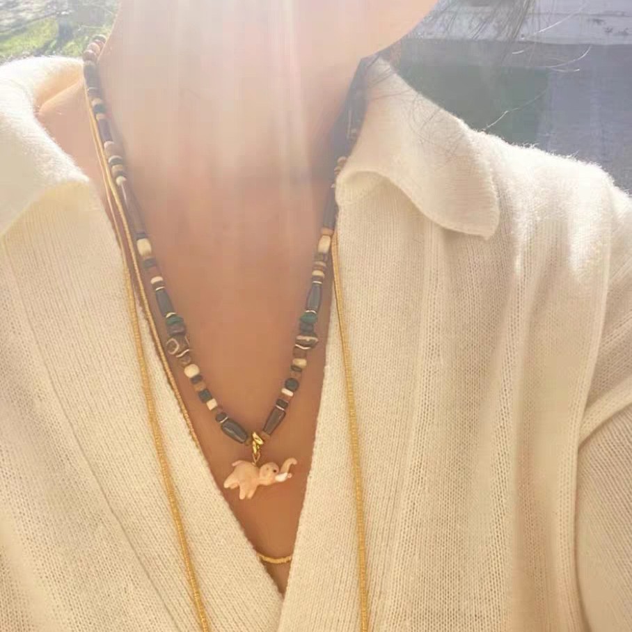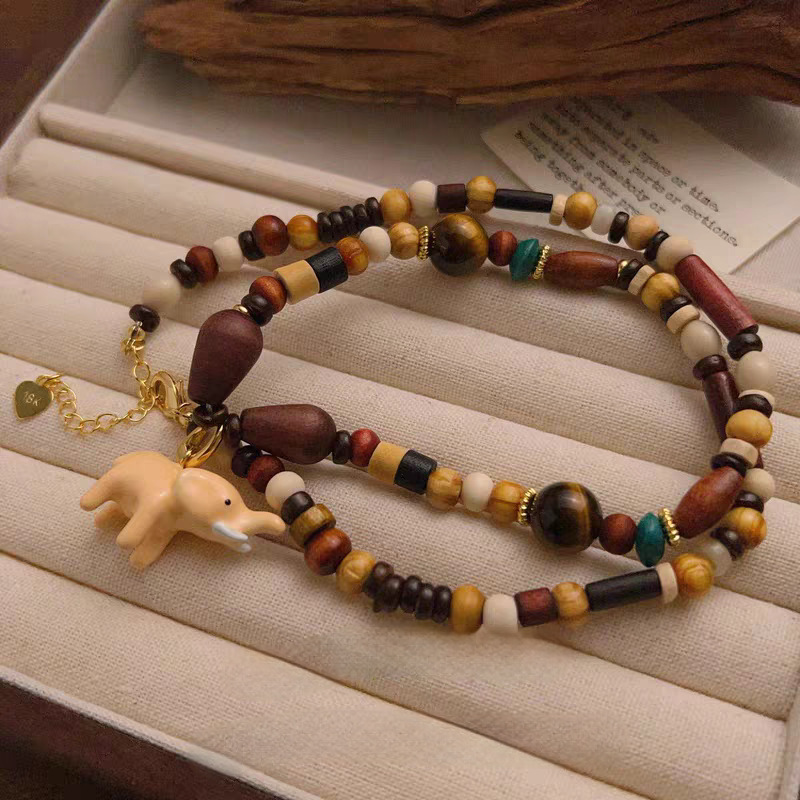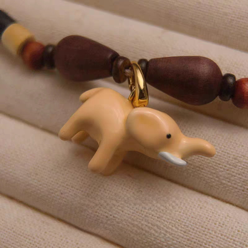 pink elephant + natural stone beads