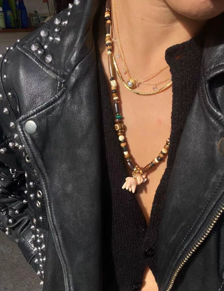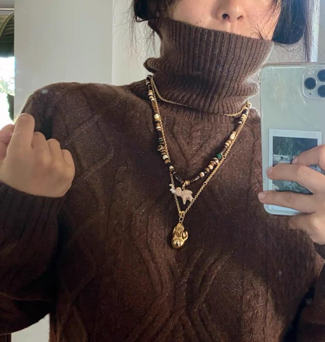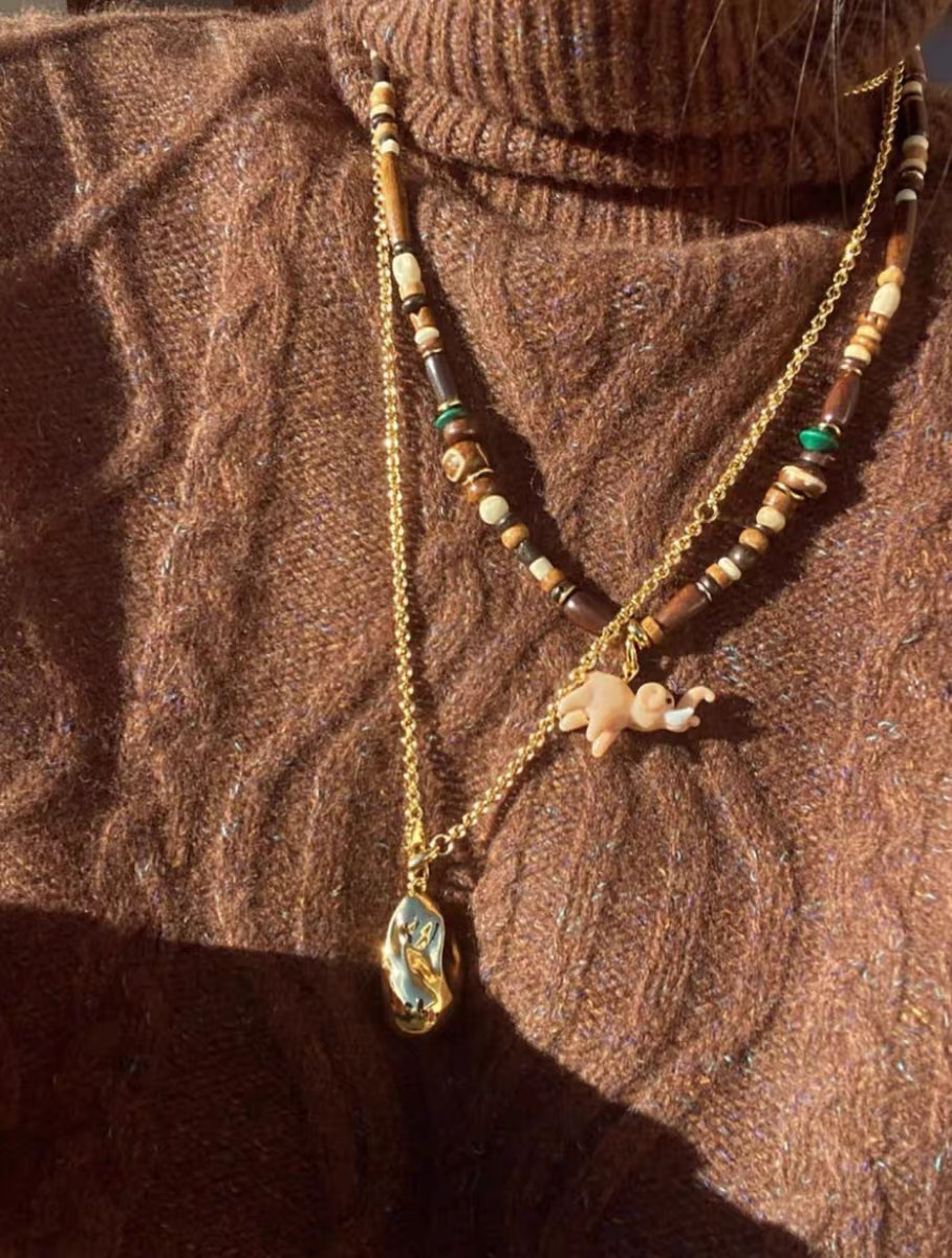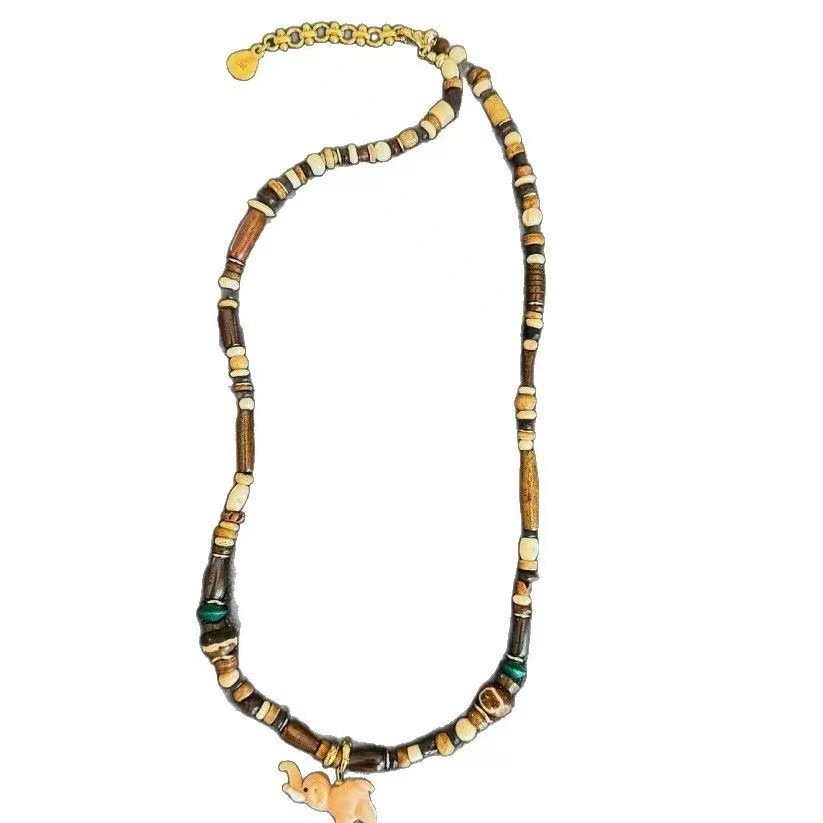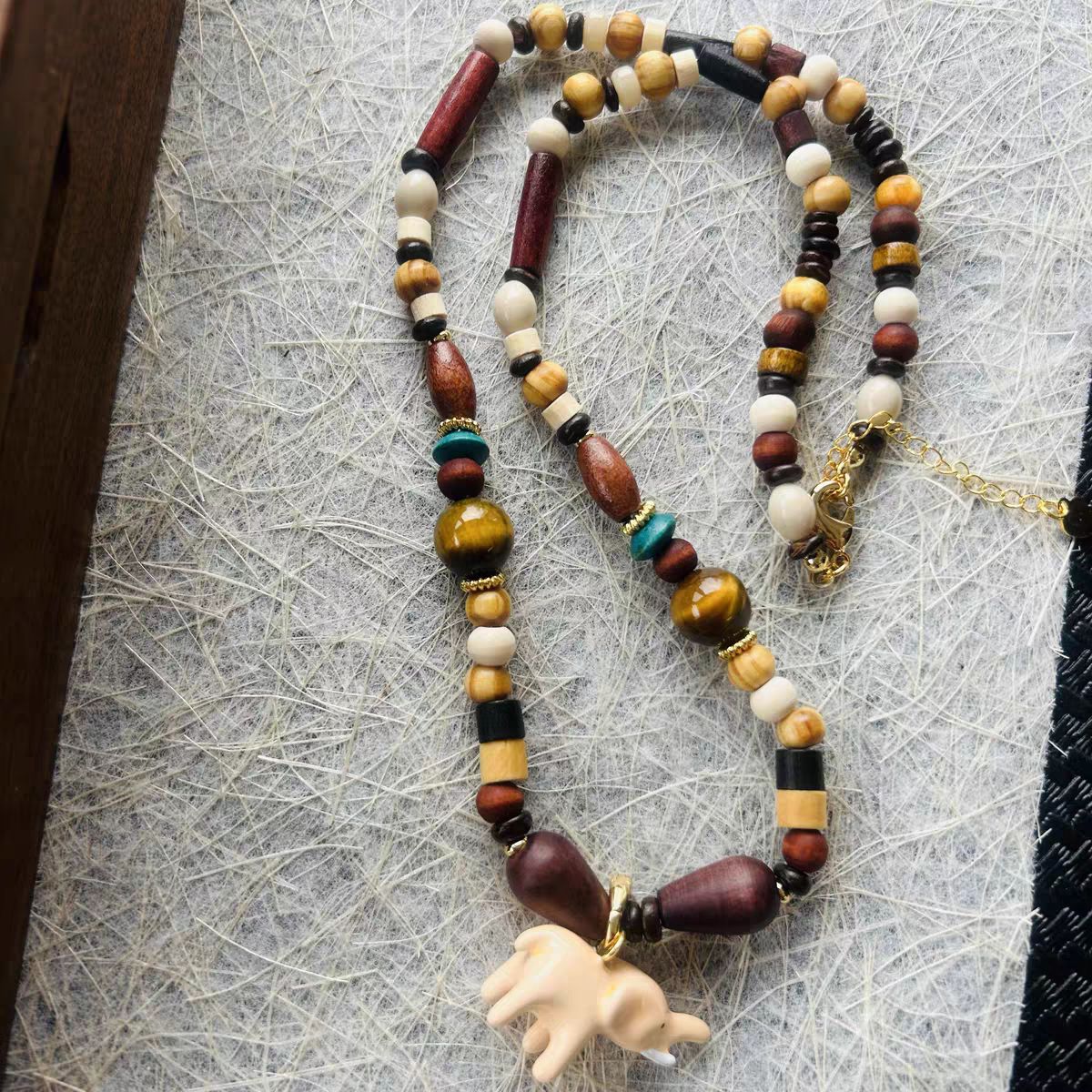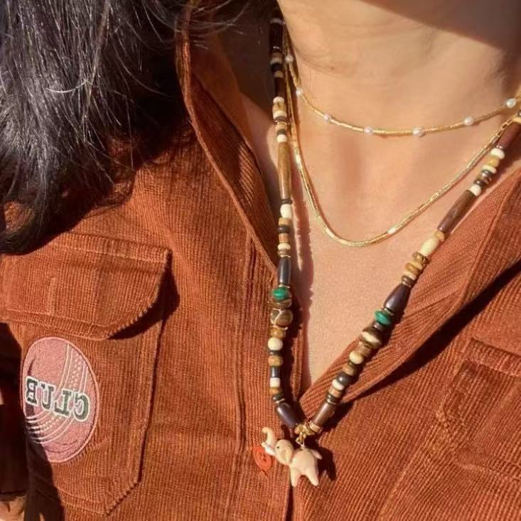 pink elephant + natural stone beads