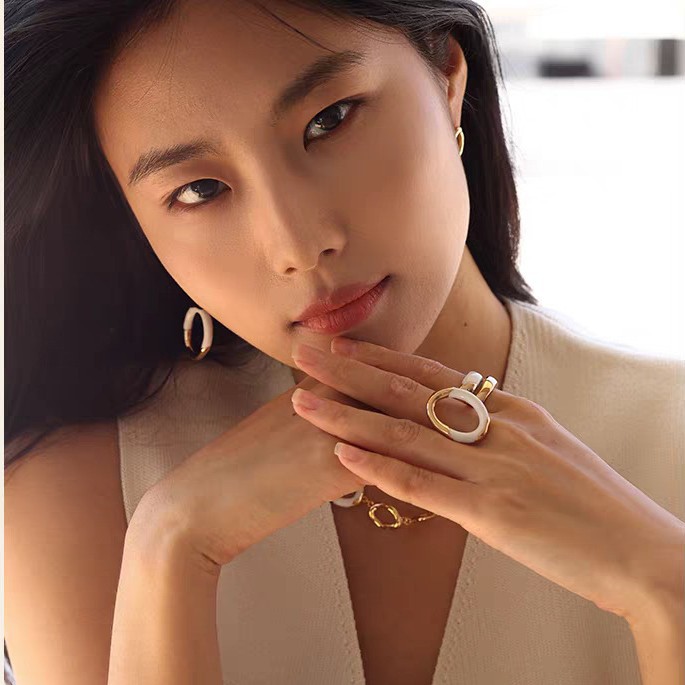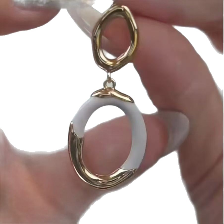 white enamel double ring earrings pair