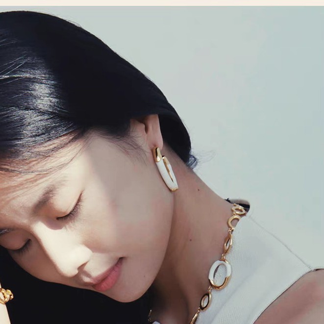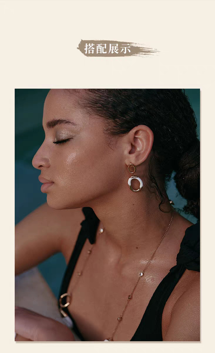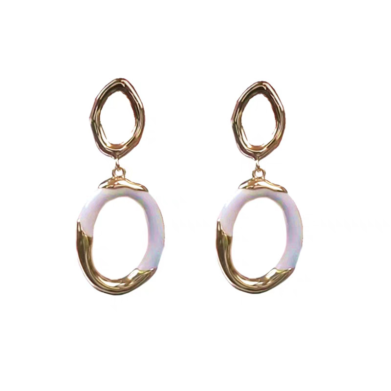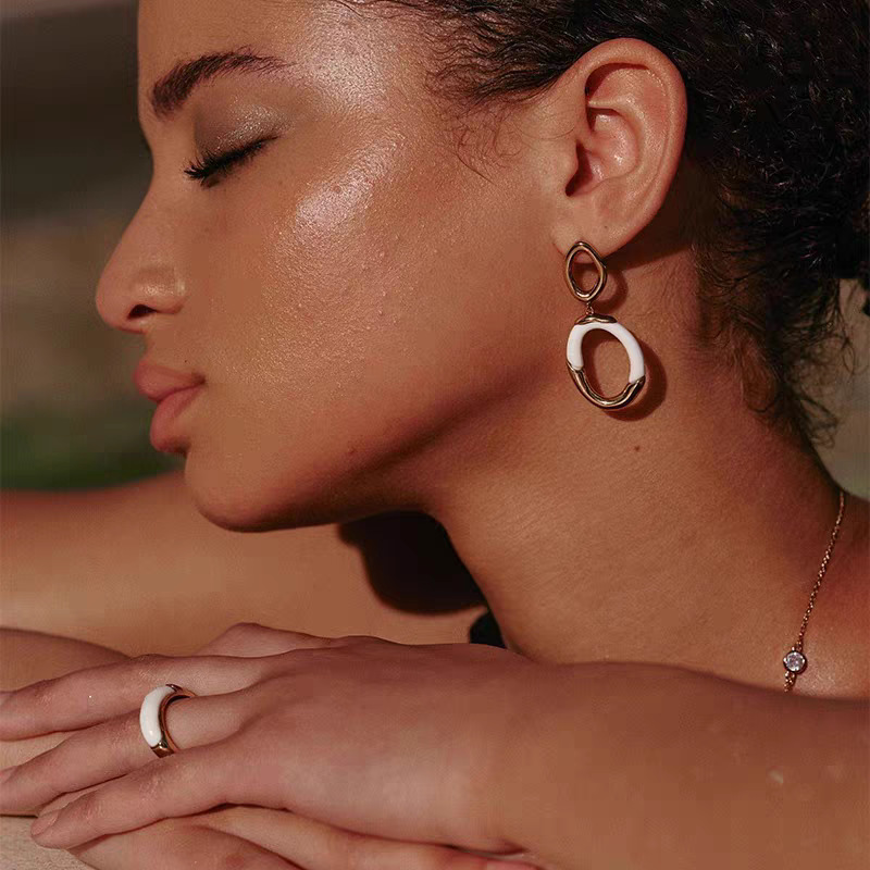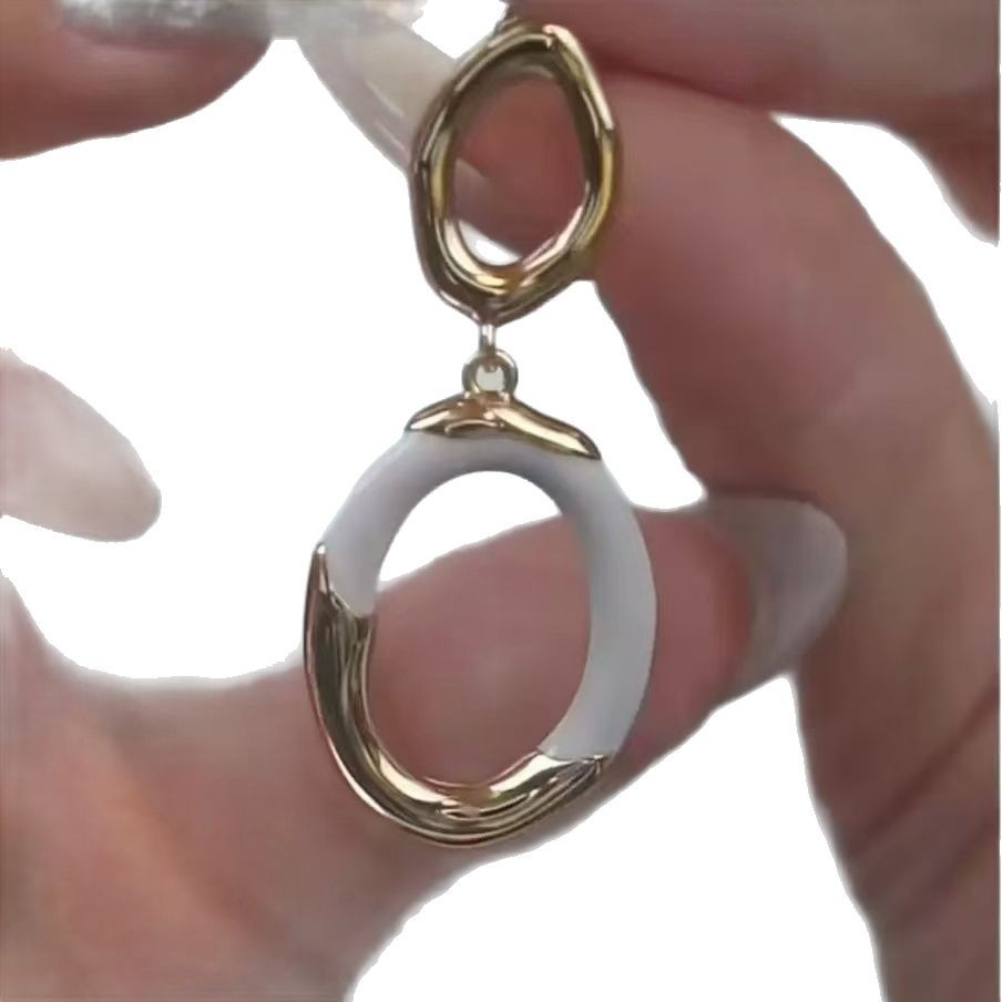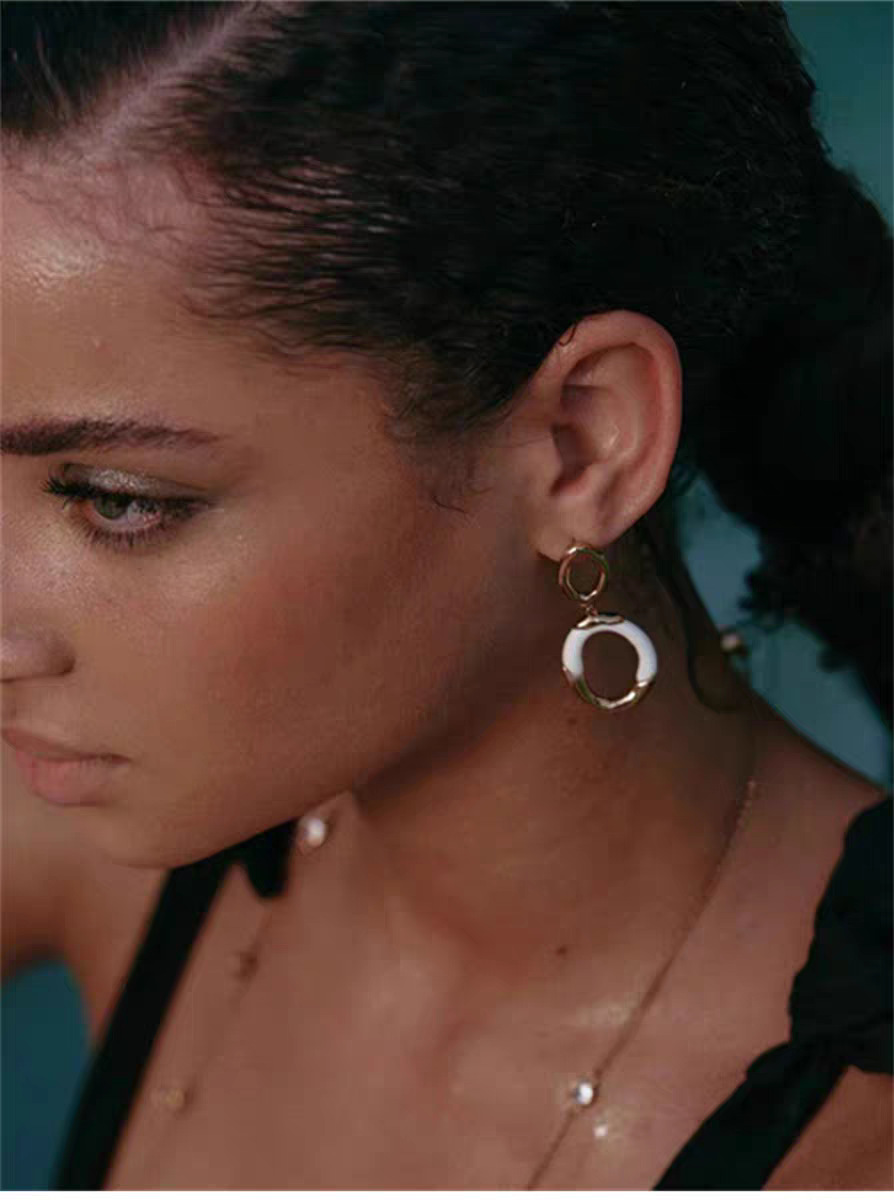 white enamel double ring earrings pair