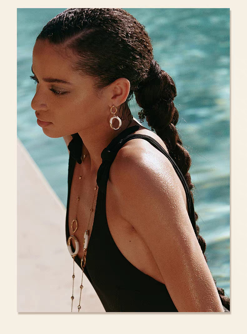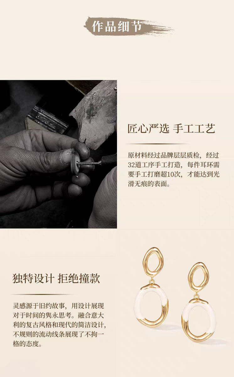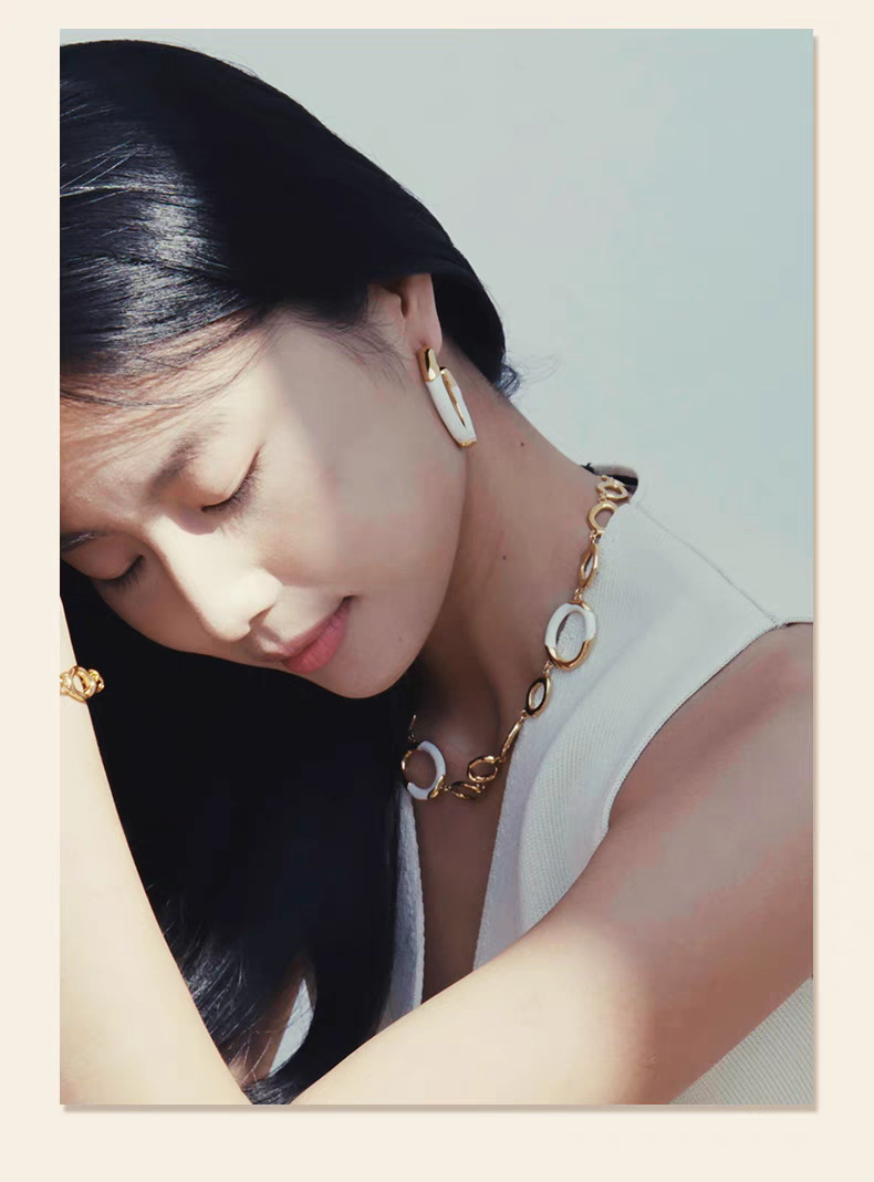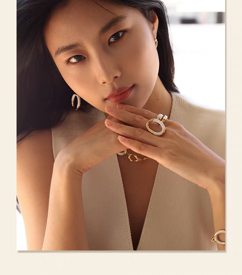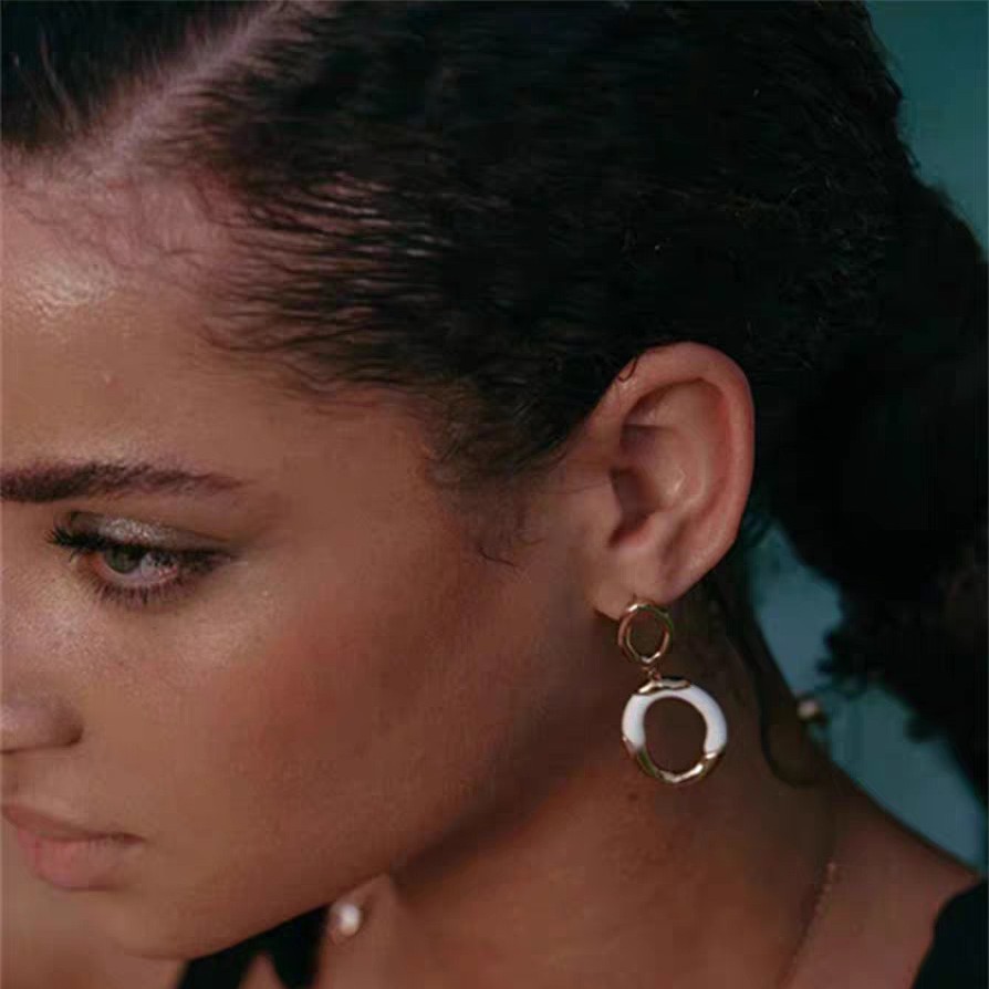 white enamel double ring earrings pair