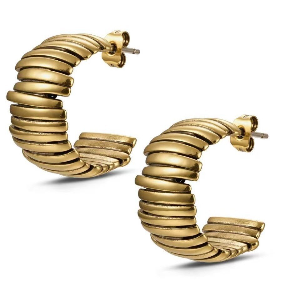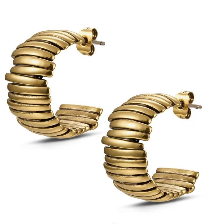 a pair of gold earrings