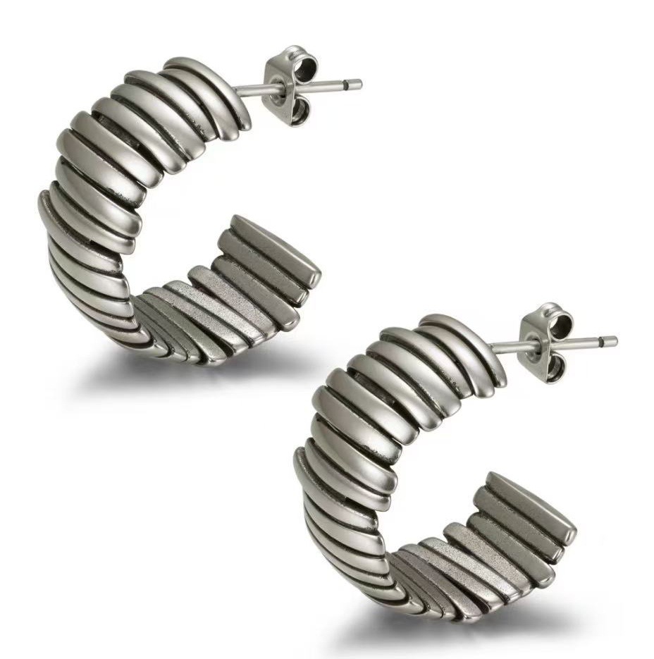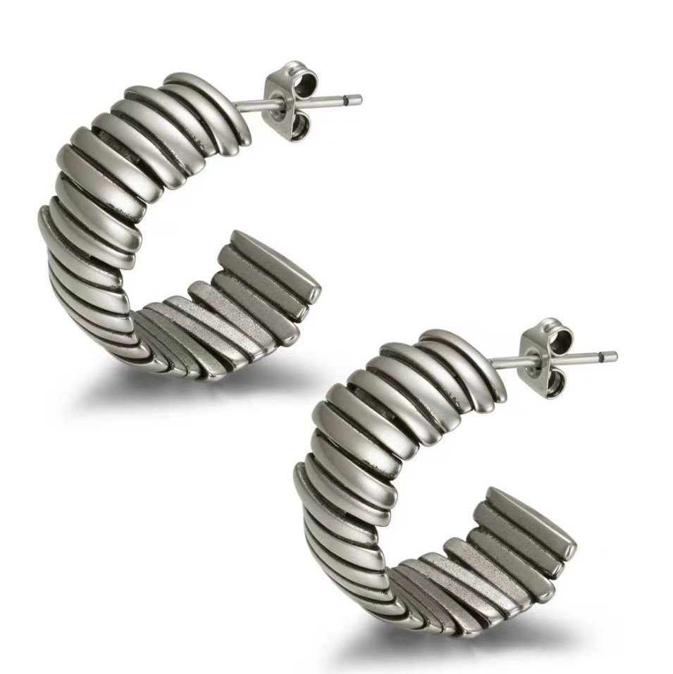 a pair of silver earrings