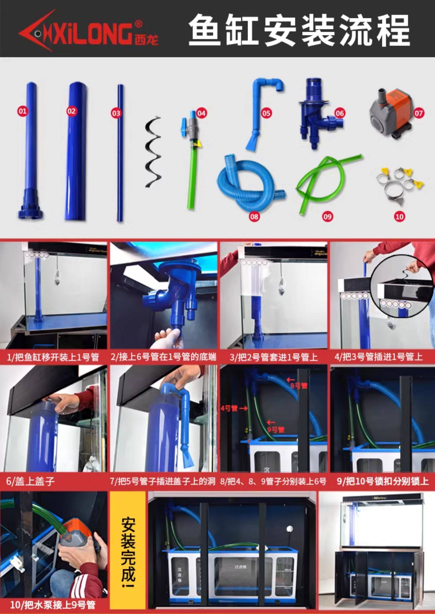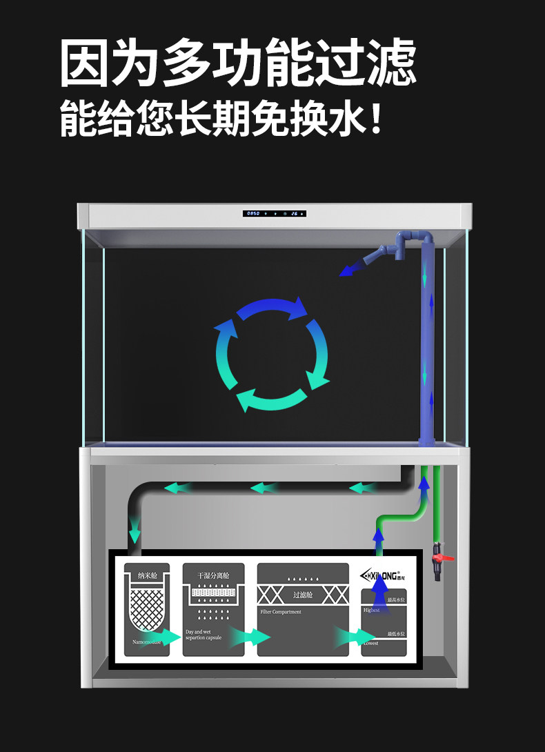 xl-1035t fish tank + floor cabinet (bottom filter) + filter material (100*34.5 * 150cm) white