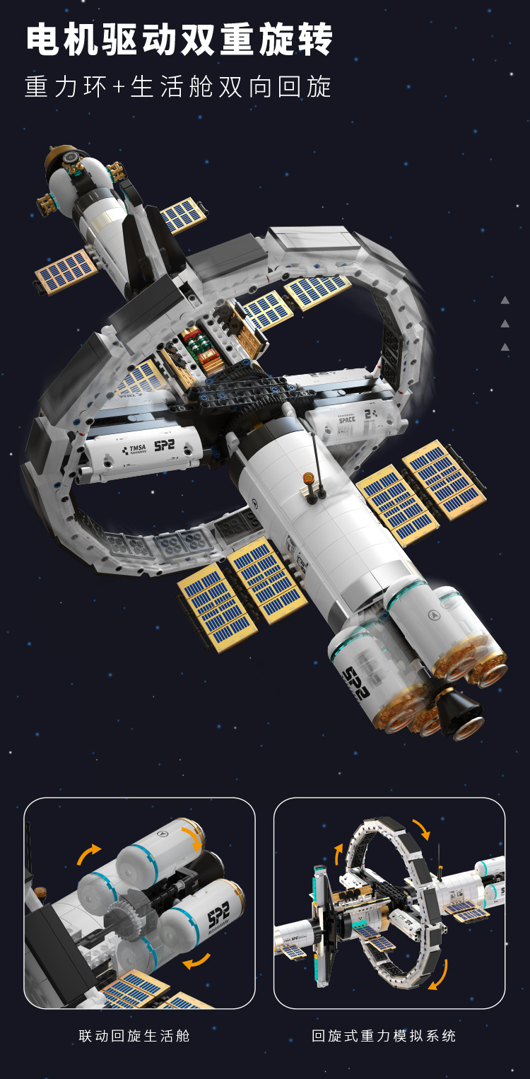 t5006 space exploration building blocks universe tianshu space station gravity life cabin dynamic model assembly big decorations +