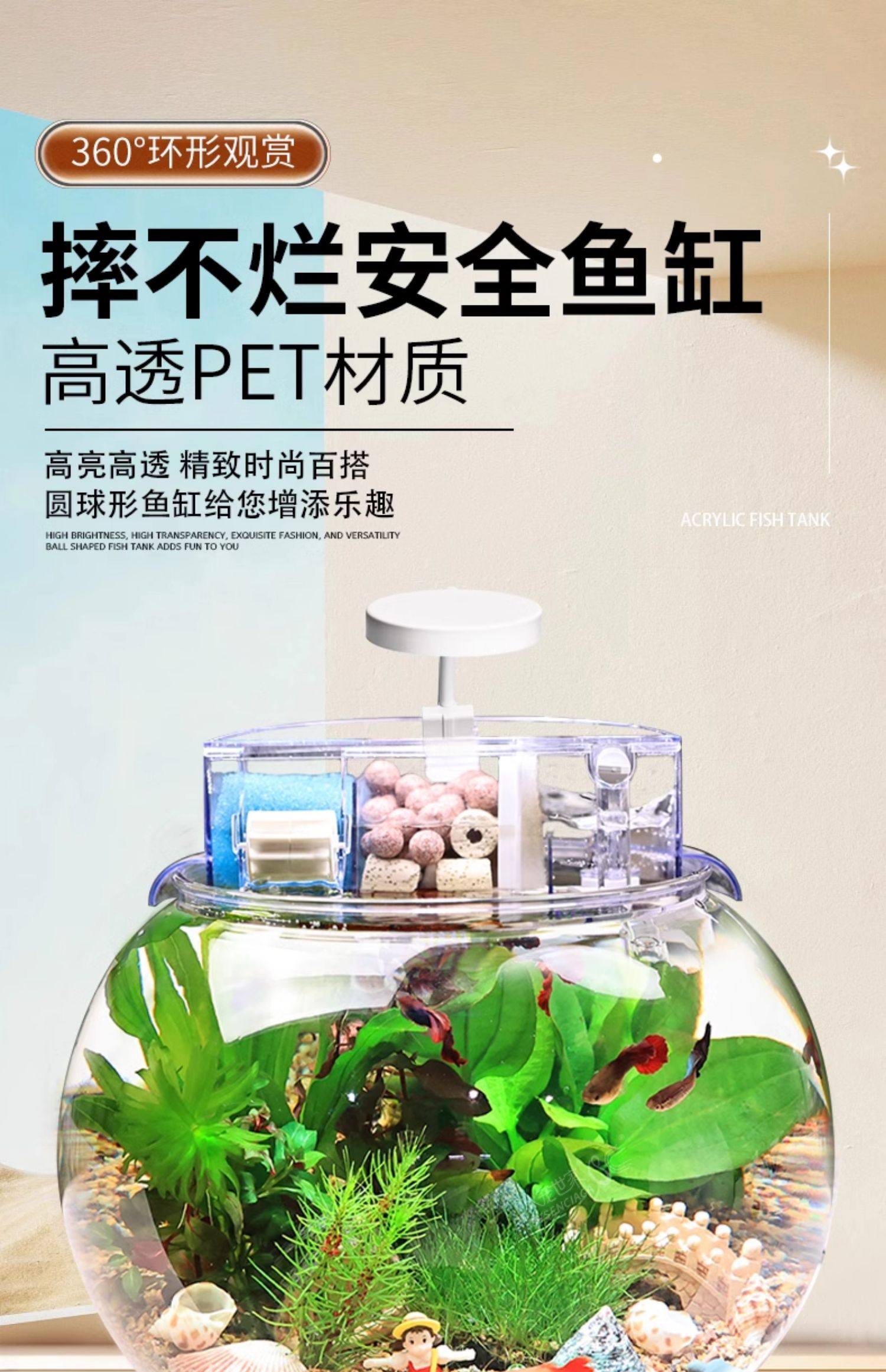 [hd transparent] small round ecological fish tank yg-21