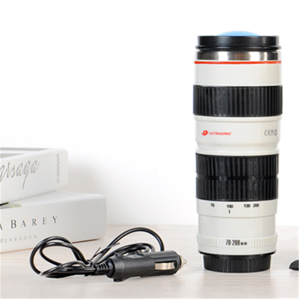 Creative Car Heated Cup Single-lens reflex lens water cup 1:1 scale stainless steel camera cup Xiaobai Generation 70-200mm Car-mounted heating, 12V voltage