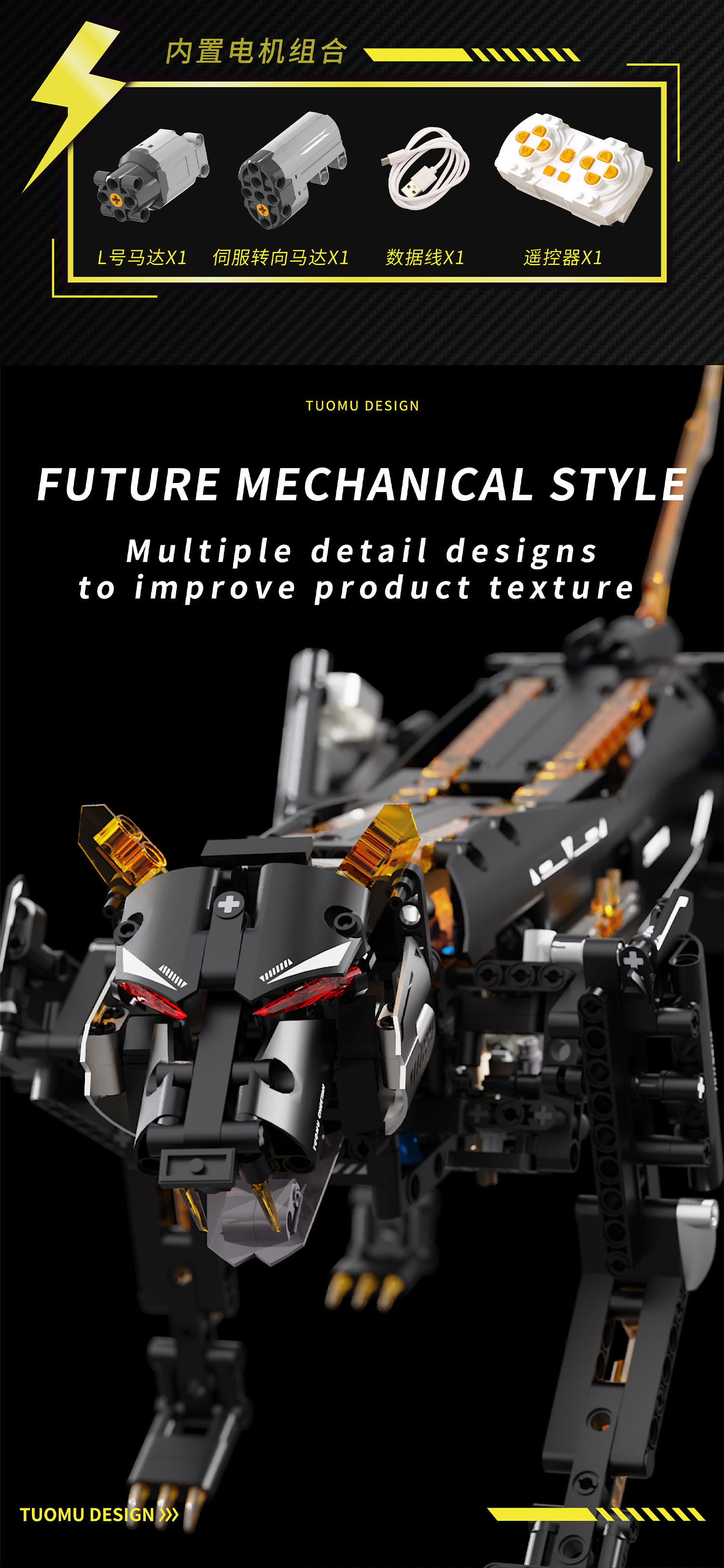 [t1106] dark night mechanical leopard (remote control programming app)-881 pieces CN¥ 258.0 664 piece available