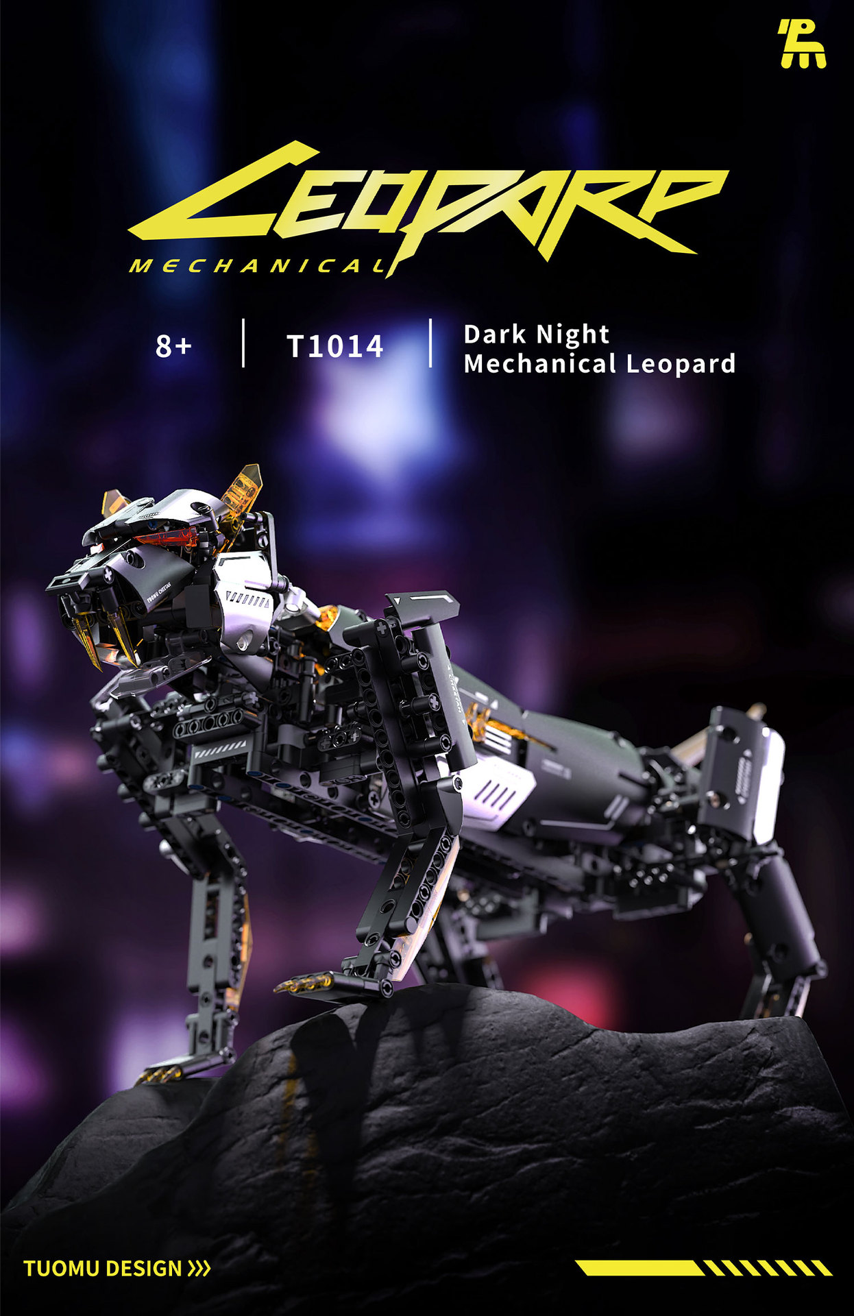 t1106 mechanical dark night leopard building blocks remote control assembled model animal modeling scientific and educational toy boy gift cross-border +
